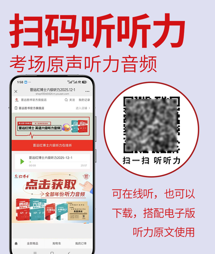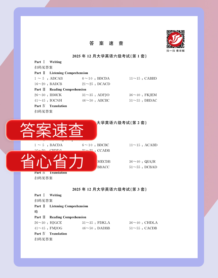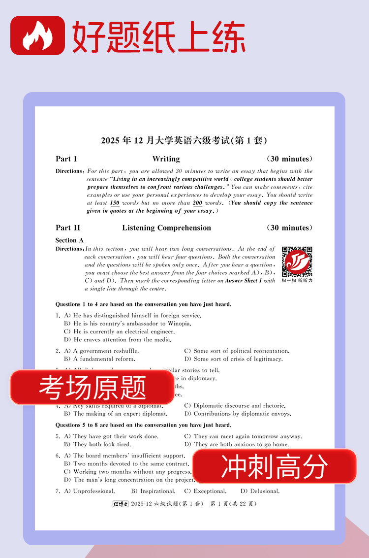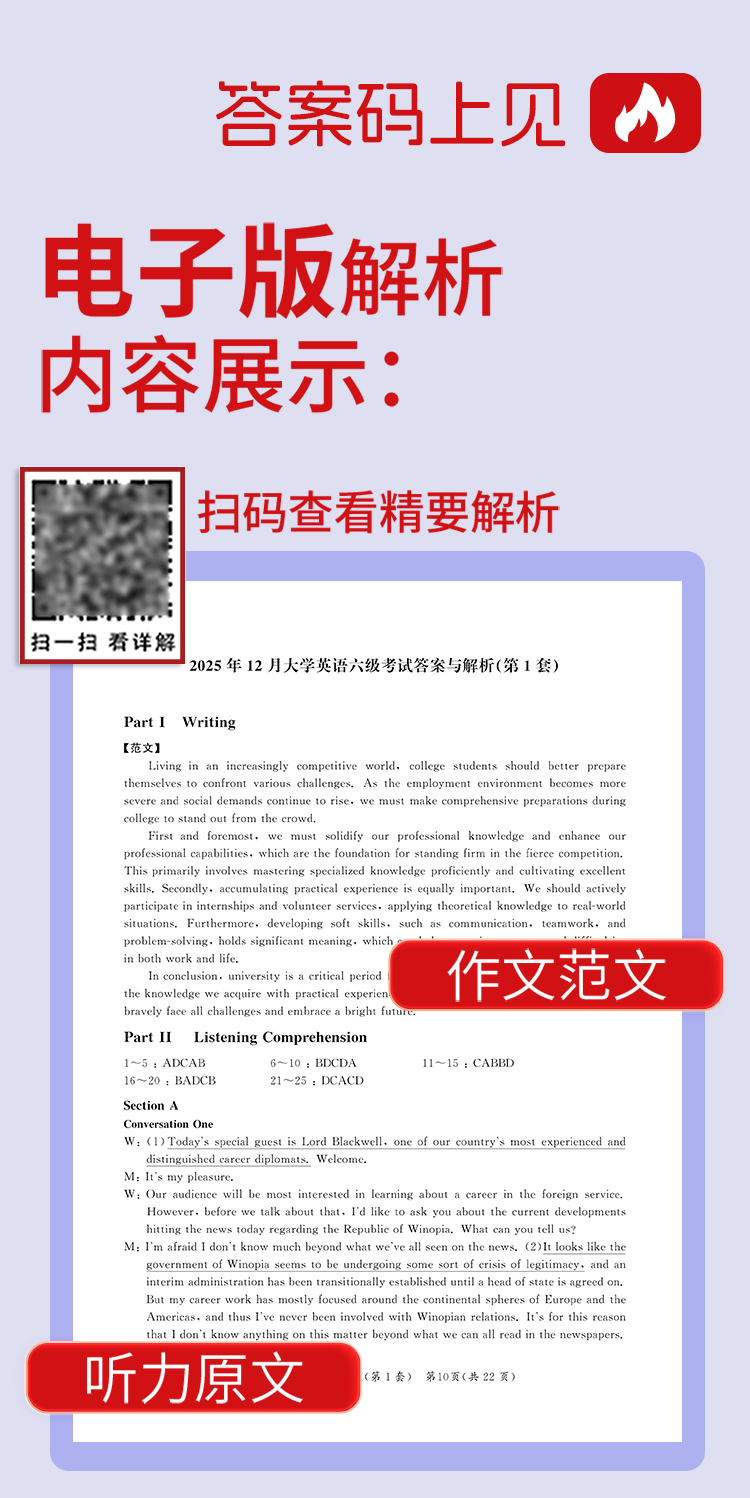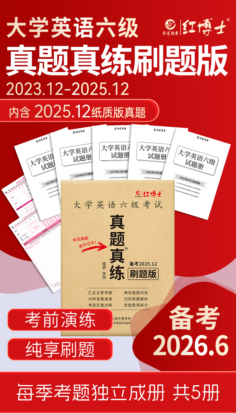 2026.6红博士大学英语六级刷题版本五个季度 扫码看解析听听力