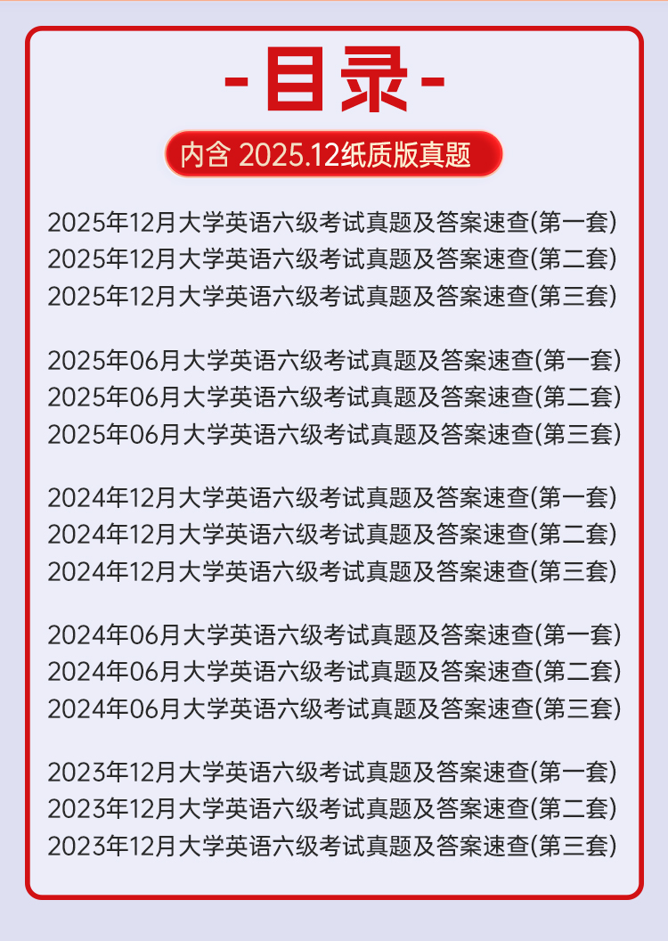 备考2026年6月大学英语四级真题试卷 5季真题刷题版电子版解析 【有纸质版25年12月考题】红博士