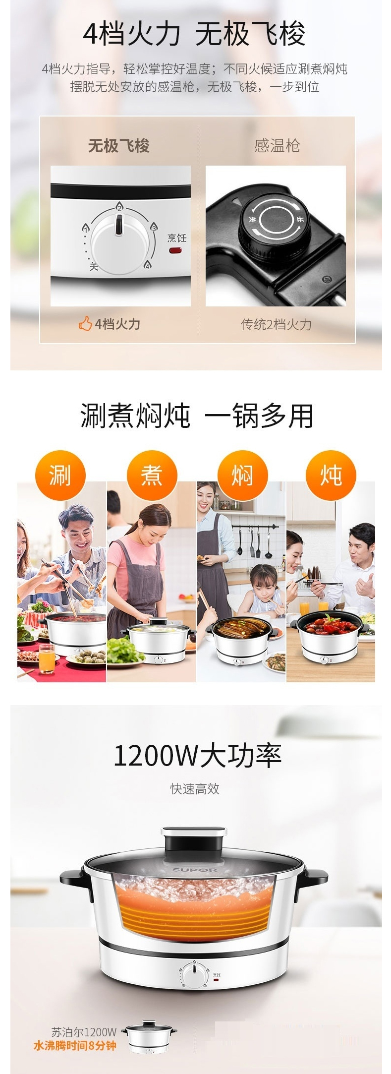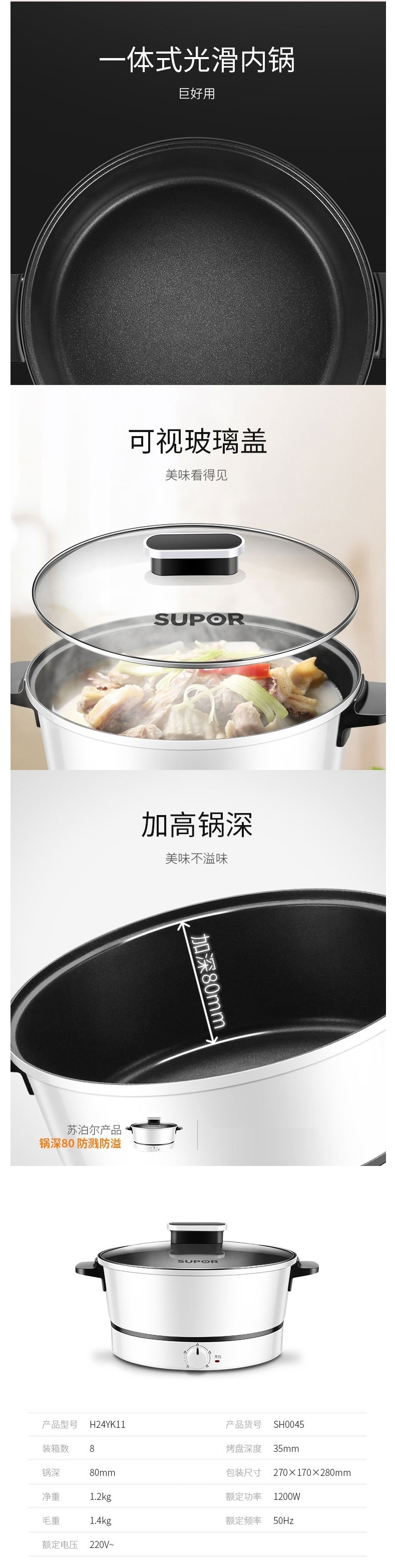 苏泊尔 (509732 )SUPOR 电火锅 多功能不粘锅 3L容量电热锅电煮锅 H24YK11