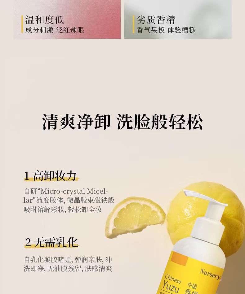 日本Nursery娜斯丽卸妆啫喱脸部清洁无刺激洁面乳柚子卸妆500ml