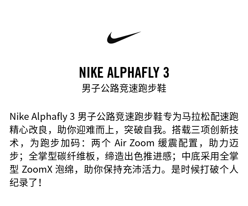 【授权链齐全】Nike Alphafiy 3 公路竞速专业跑步鞋-奥莱仓直发