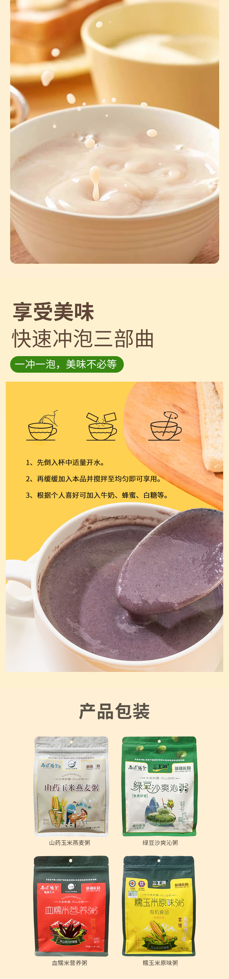三工滩血糯米营养粥丨绿豆沙爽沁粥丨糯玉米原味粥丨山药玉米燕麦粥313g