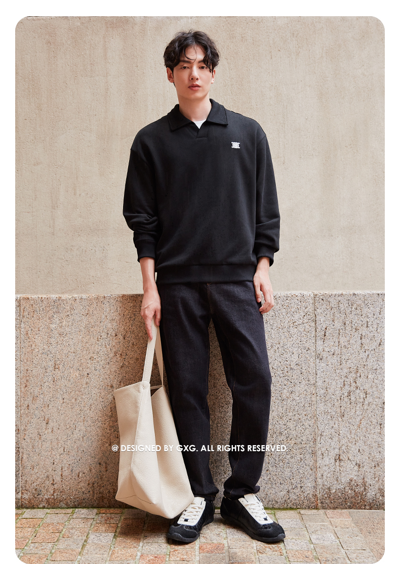 GXG男装 翻领套头卫衣双色假两件上衣长袖卫衣 25冬热卖