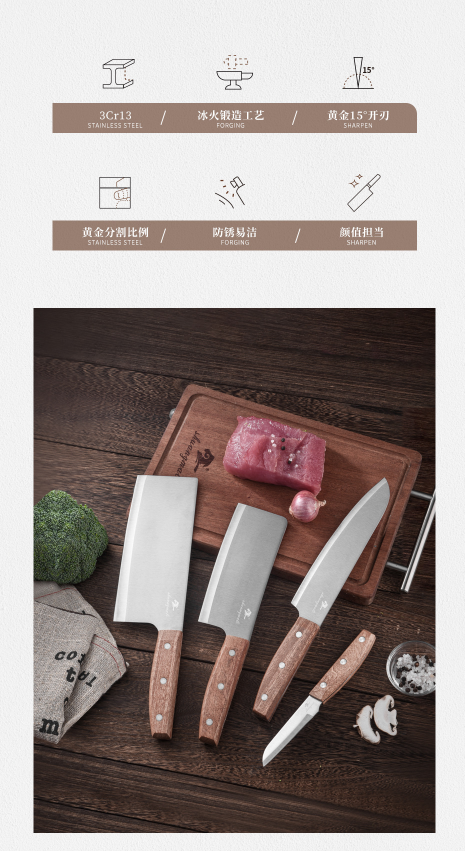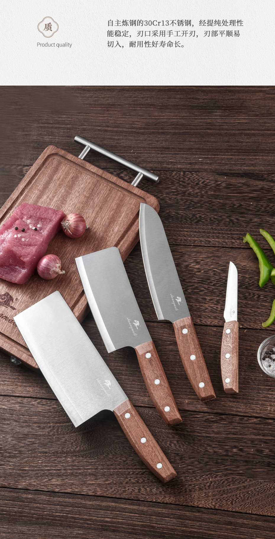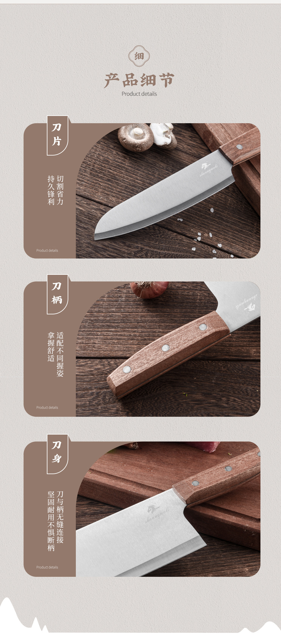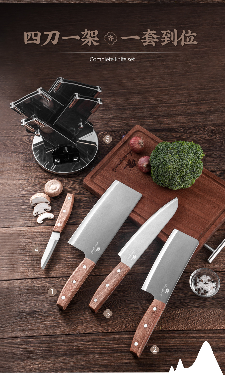 「五件套!一套到位」厨房刀具套装组合菜刀家用水果刀切菜斩骨原木手柄礼品刀具用品 商品图4
