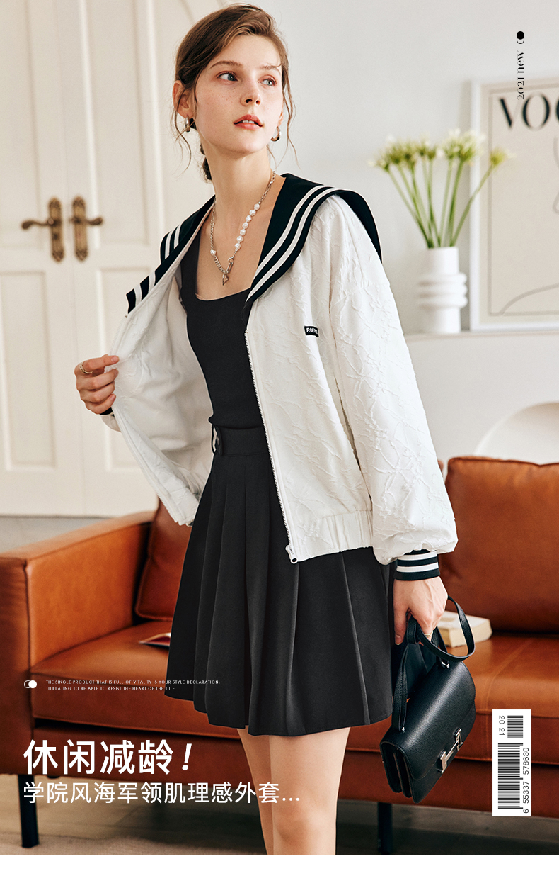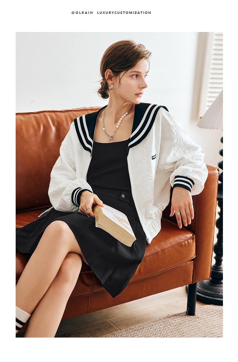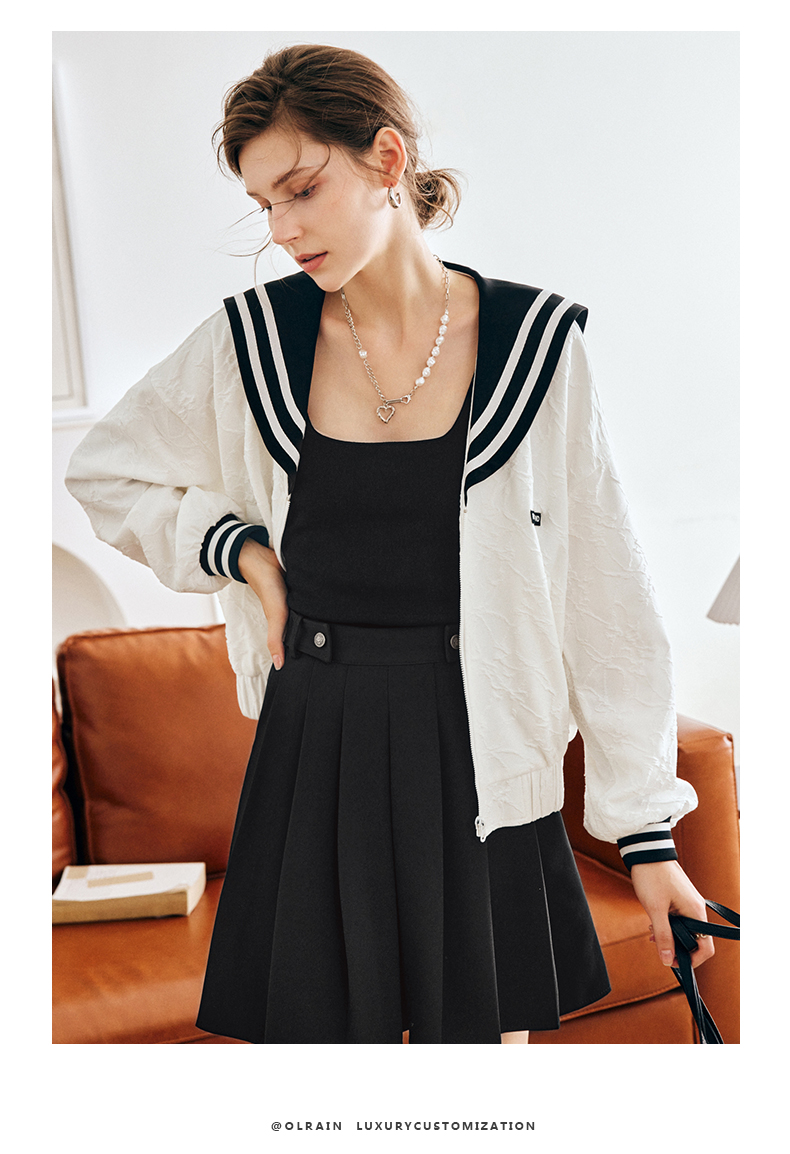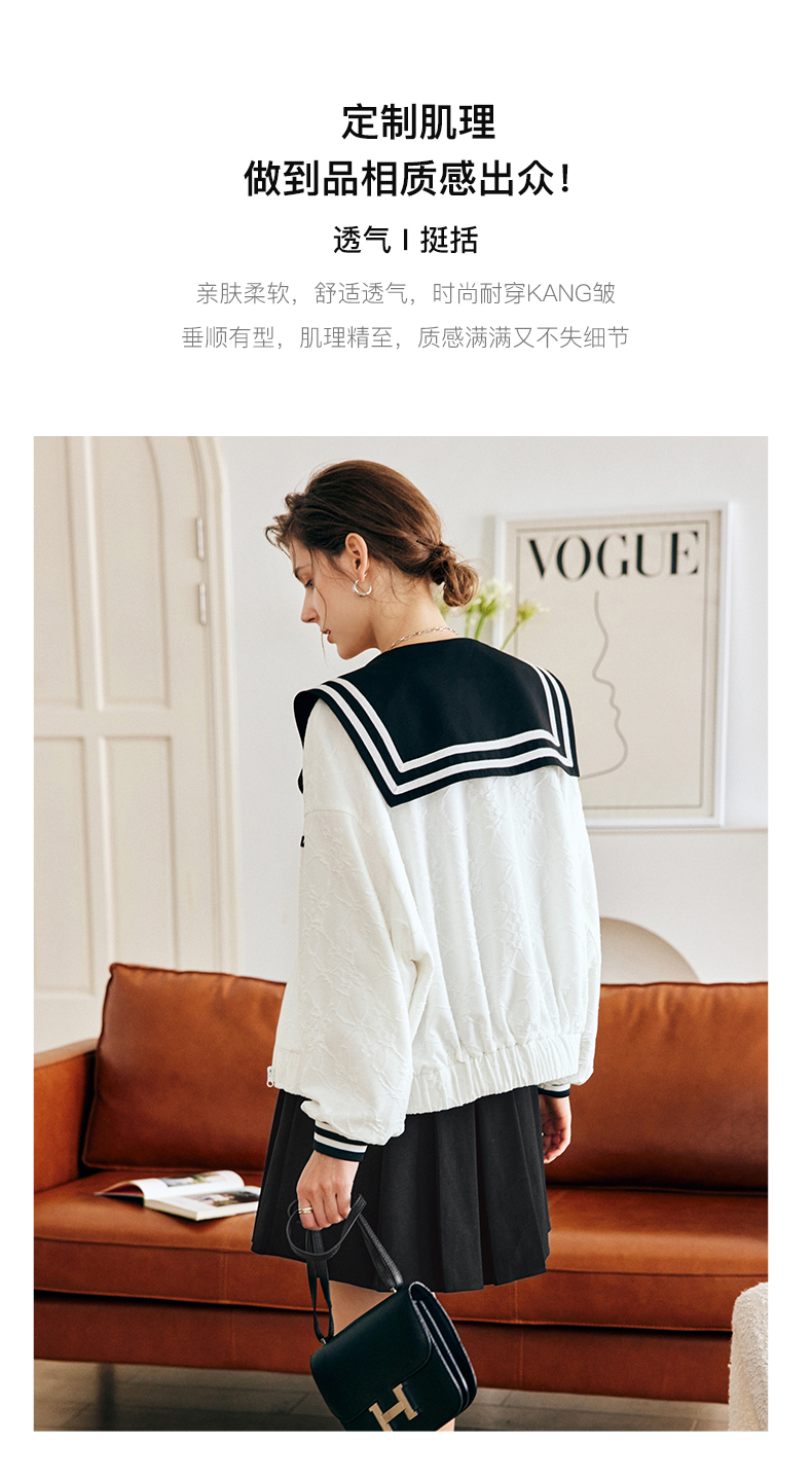 OLrain欧芮儿法式米白色外套女早秋2022新款学院风宽松海军领上衣