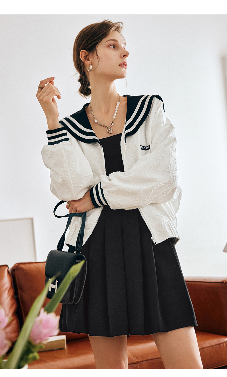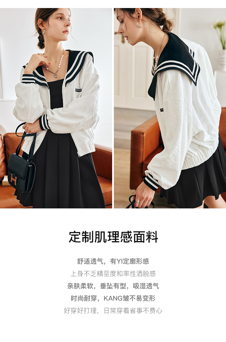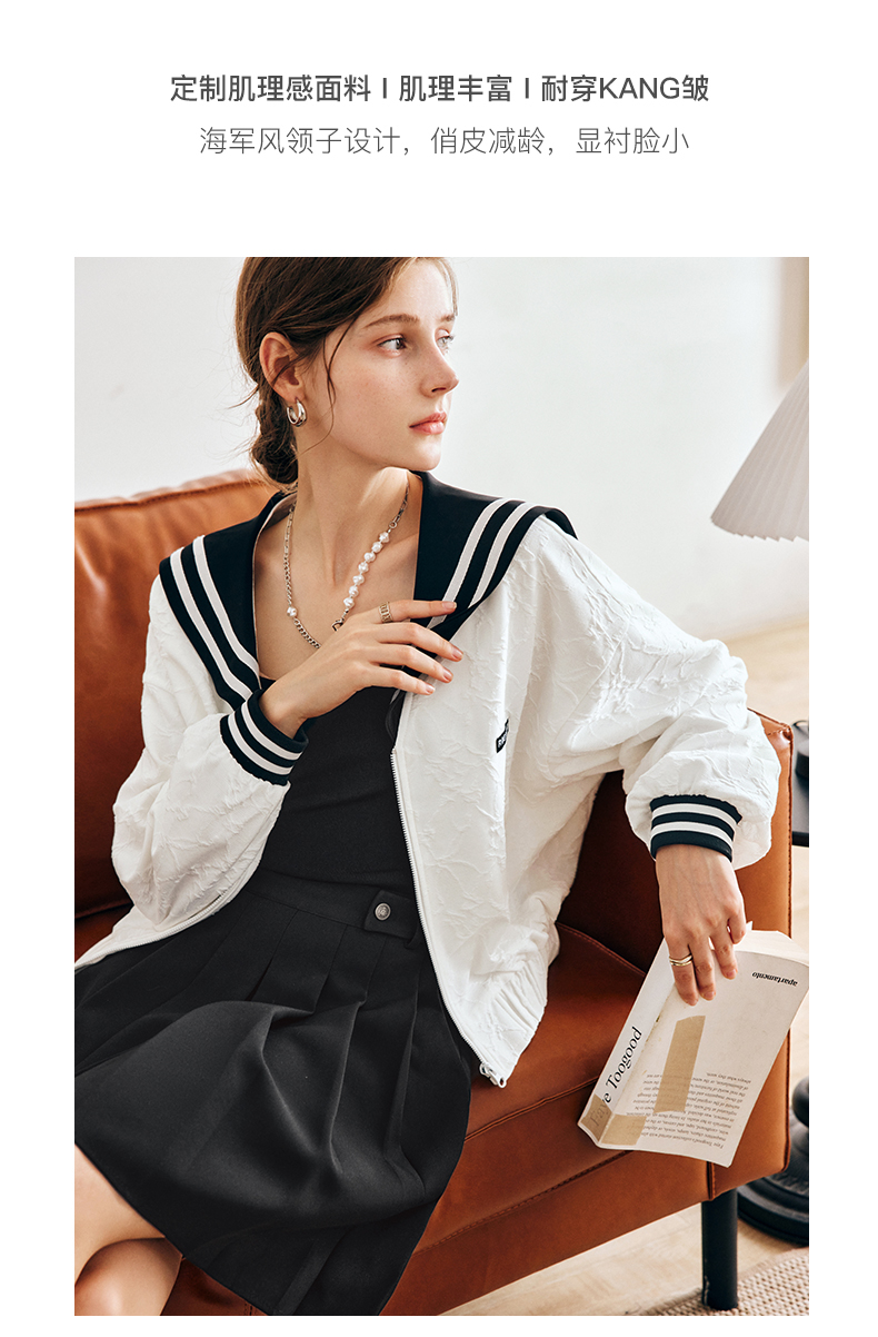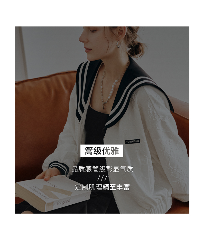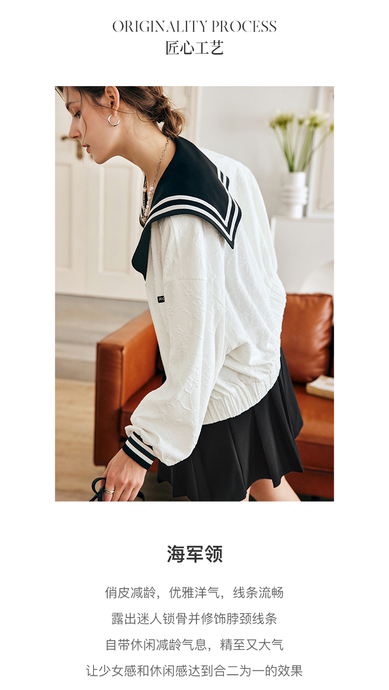 OLrain欧芮儿法式米白色外套女早秋2022新款学院风宽松海军领上衣