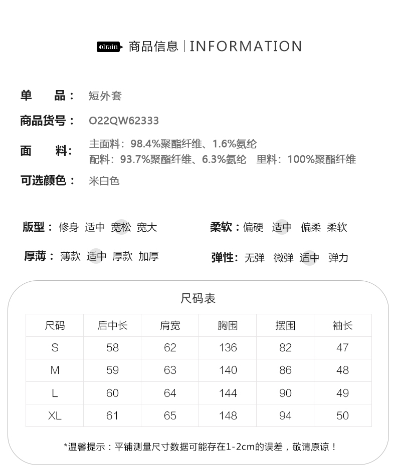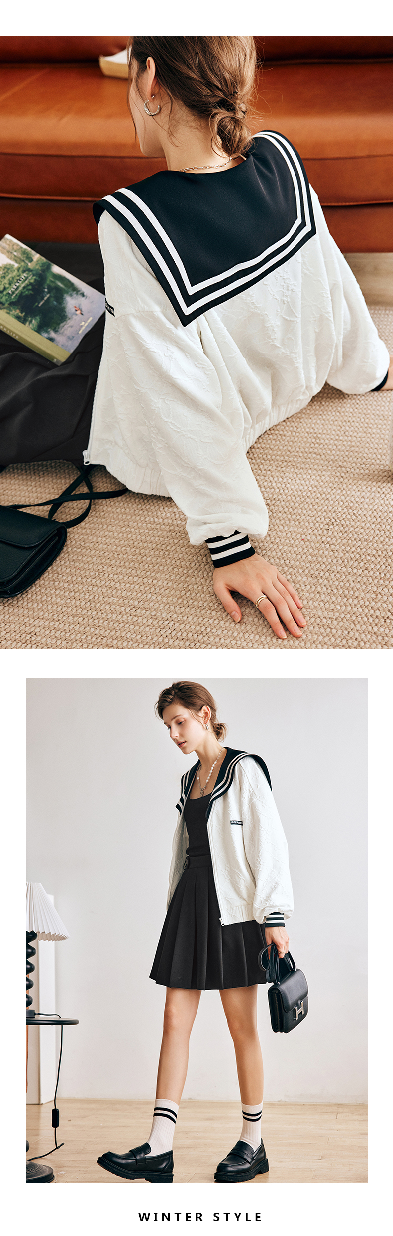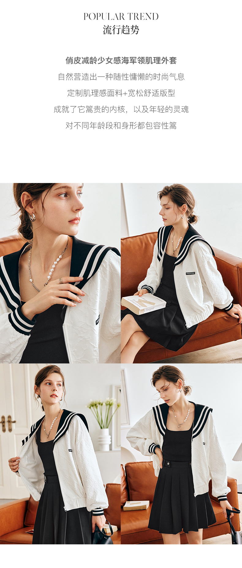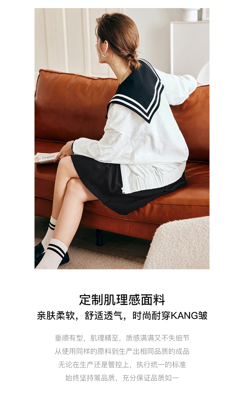 OLrain欧芮儿法式米白色外套女早秋2022新款学院风宽松海军领上衣