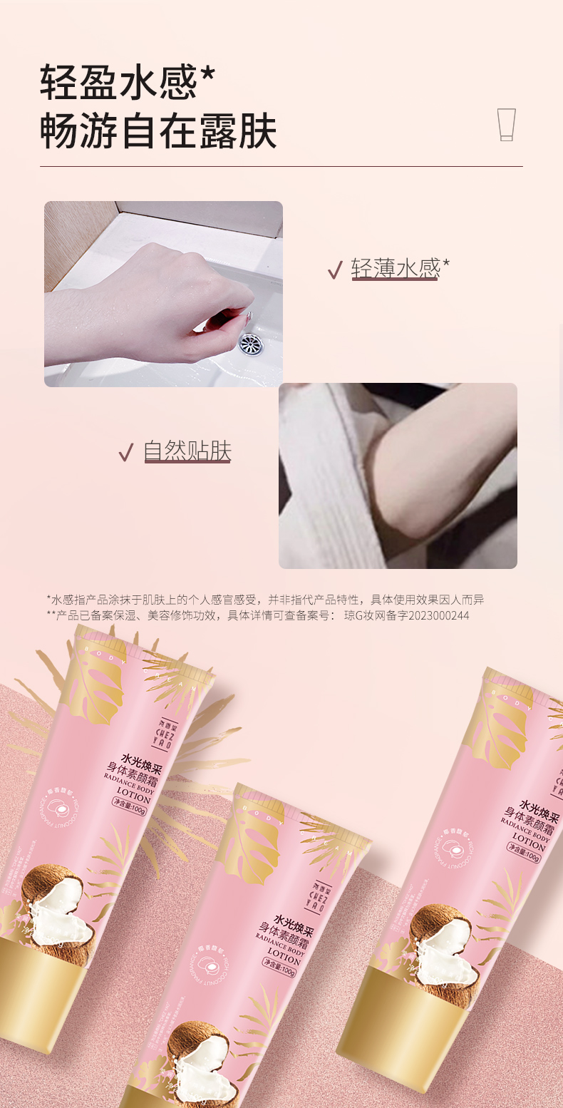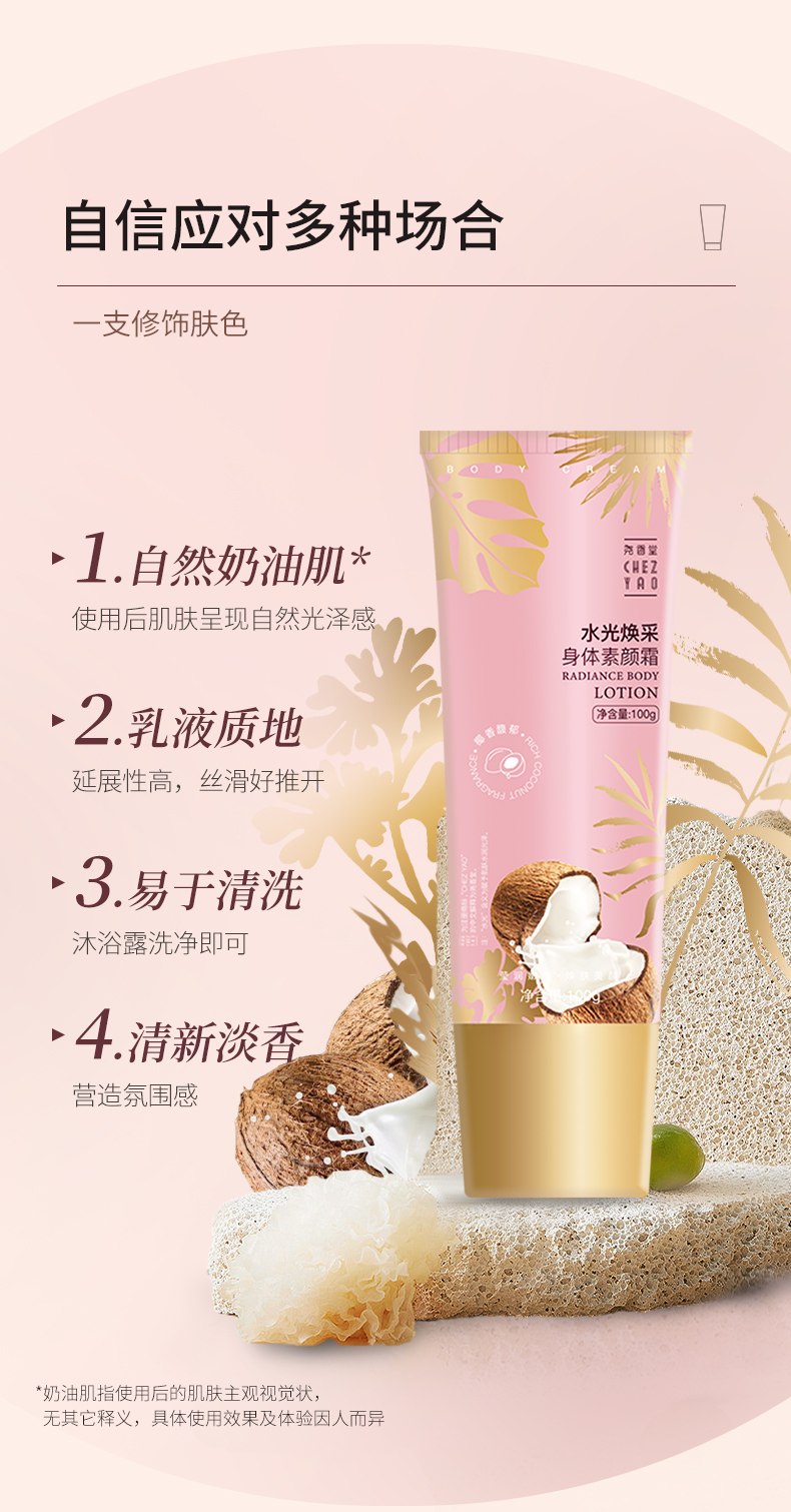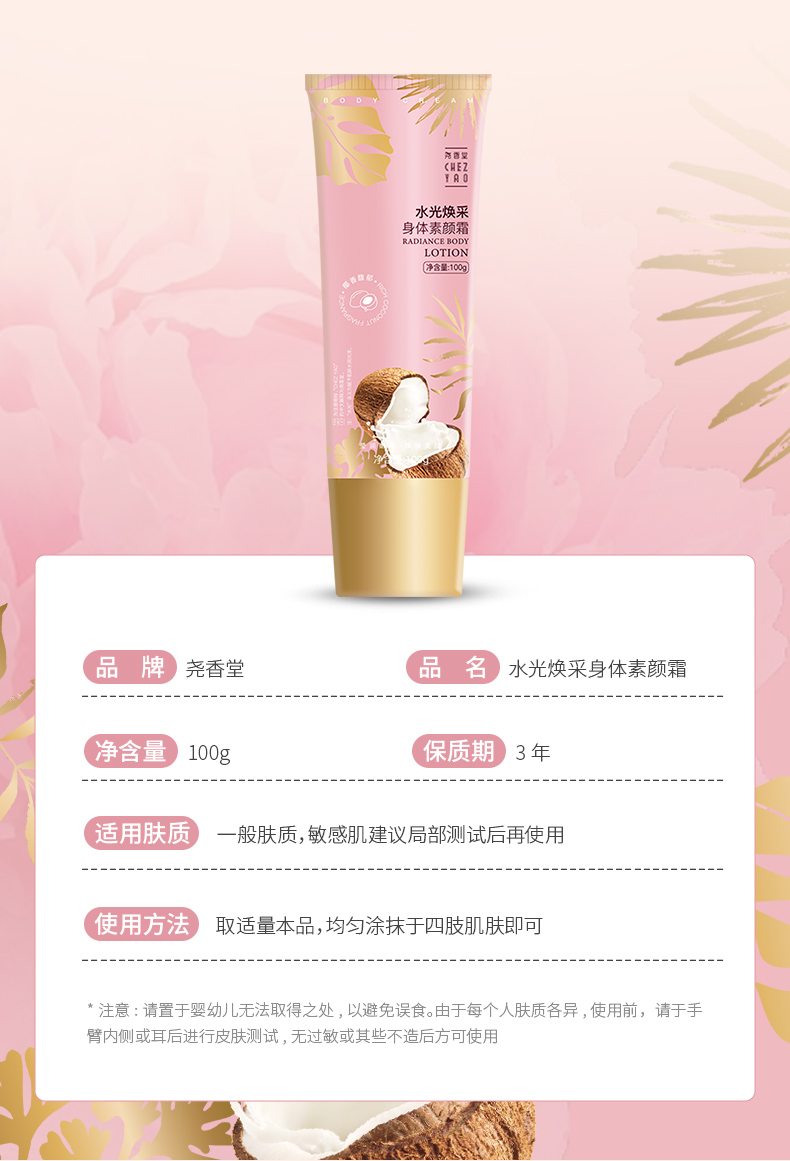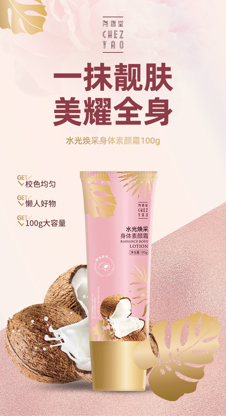 【买2送1,数量拍3】尧香堂水光焕彩身体素颜霜裸妆身体乳脖子润肤全身保湿补水100g