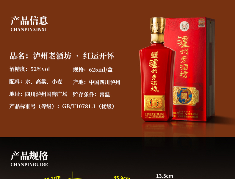 下架 【泸州老窖】99品鉴 52泸州老酒坊红运开怀酒625ml+52度老窖醇香酒潮代500ml