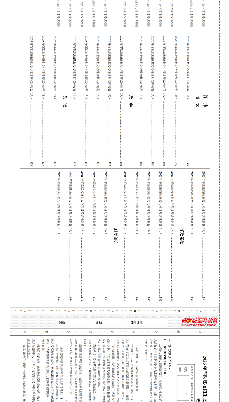 战士考军校考前冲刺卷军考试卷复习资料(全套)