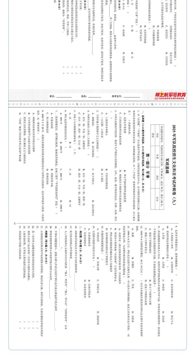 军考2026年军考摸底卷考军官考士官专升本本科提干自测卷仿真试卷2026备考军考试卷