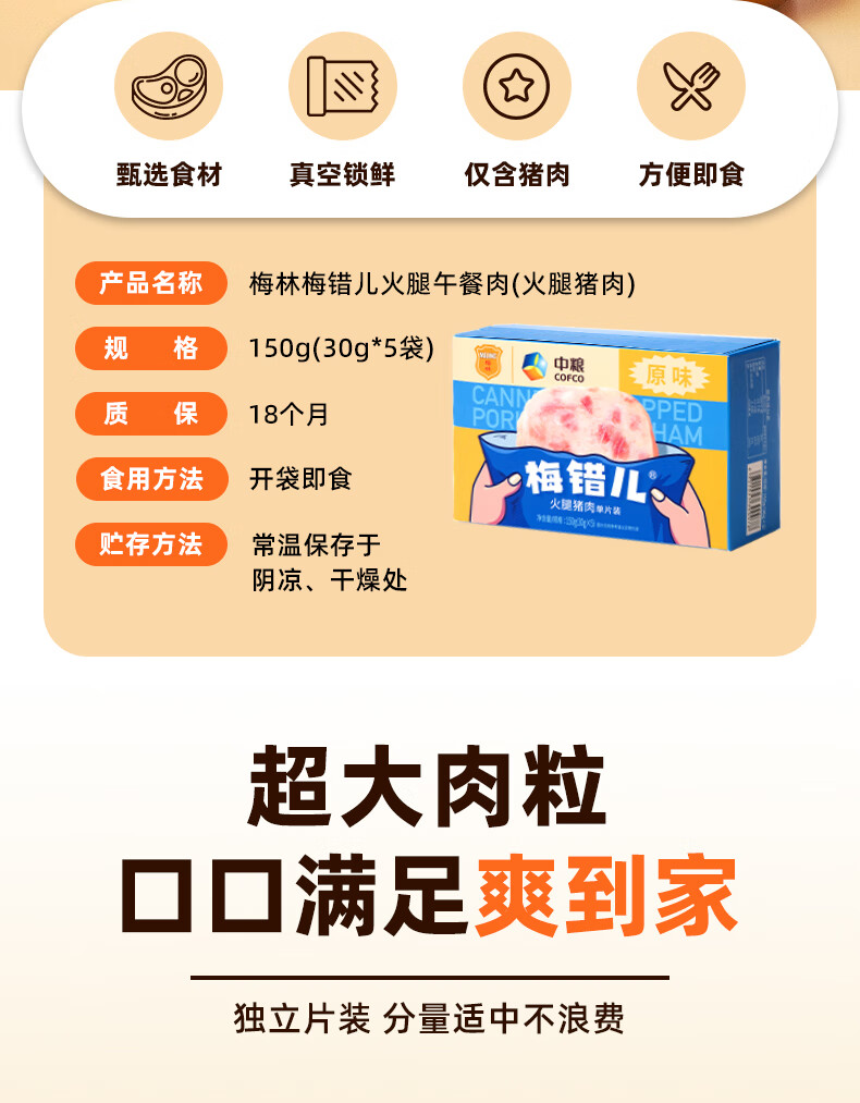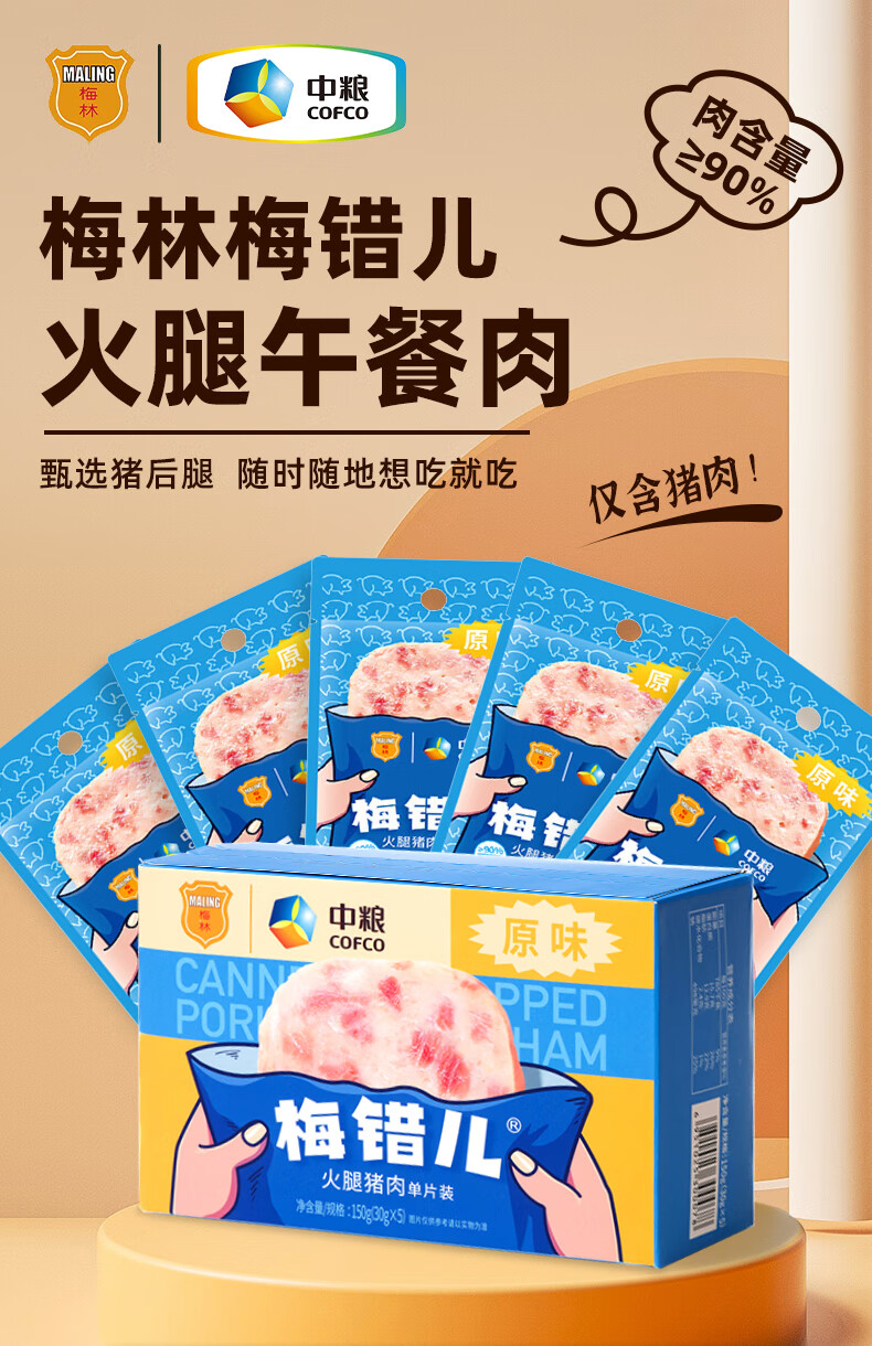 【特惠】梅林“梅错儿”盒装火腿猪肉150g/罐