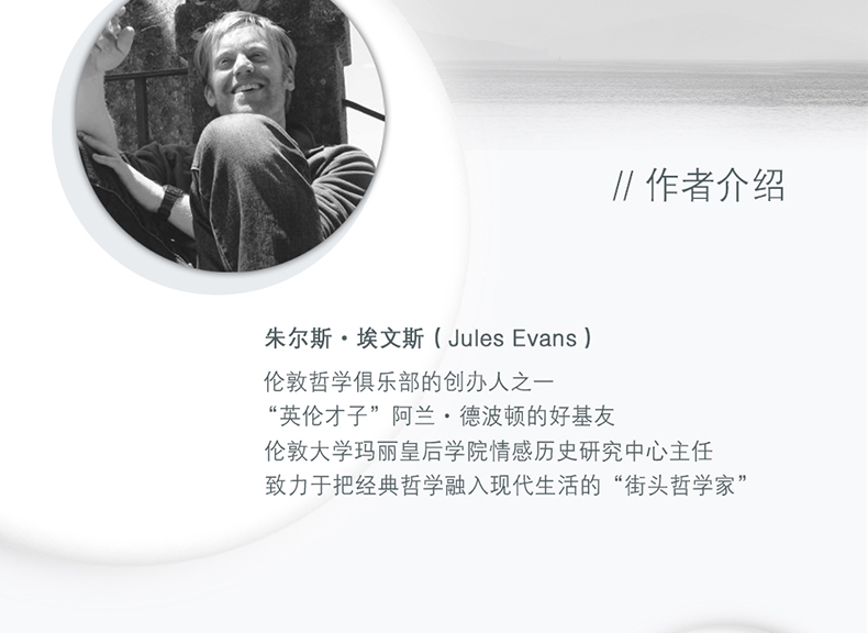 这里没有艰深的哲学理论,朱尔斯•埃文斯将12位历史上伟大的智者聚在一起,像介绍老朋友一样,让他们和你聊一聊生活。同时也看看那些被哲学改变了的平凡的人,从他们的经历中汲取信心和力量。