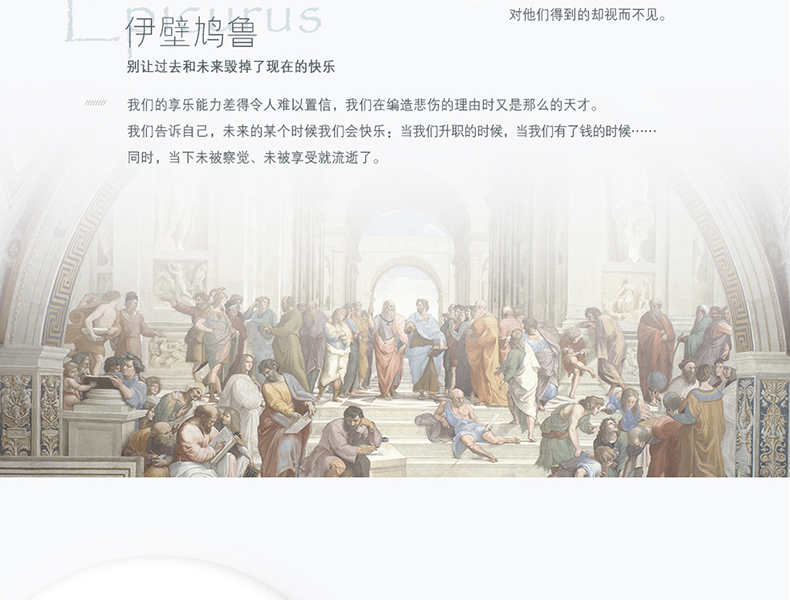 或者我们会因为对未来感到焦虑而毁掉我们的快乐。“如果我失败了怎么办?如果我妻子离开我怎么办?如果我生病了怎么办?如果我死掉了怎么办?”伊壁鸠鲁主义者看着这些“如果”,无奈地耸耸肩。那么你该怎么办?为什么要因为担心可能的未来而毁掉现在?伊壁鸠鲁派诗人贺拉斯说得很好:“让享受当下的灵魂学会不喜欢去担心未来。”如果将来发生什么倒霉事,哲学给了我们应对它的手段,如果我们死了,我们就再也不存在了,所以它并不是问题。“但是如果我死了,我就会失去所有未来快乐的可能。”怎么说呢,人生中并非全是好事。也许死掉比衰老、重病更可取。“但是我在来世因为享乐太多而受到惩罚怎么办?”