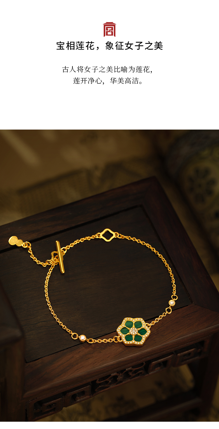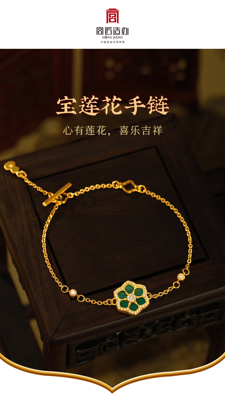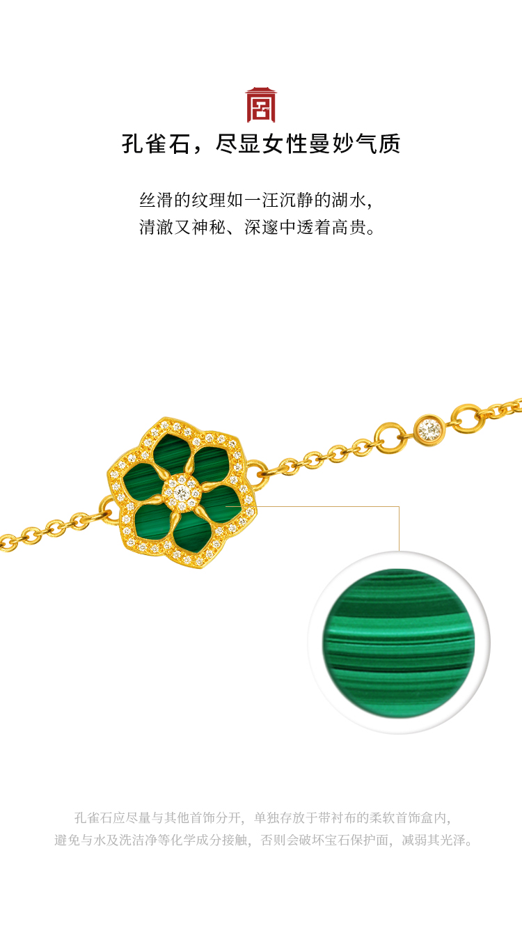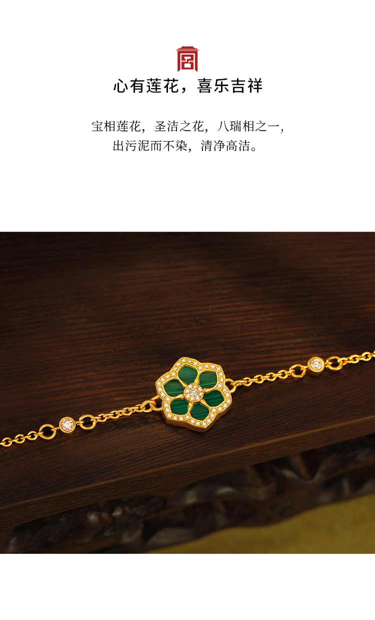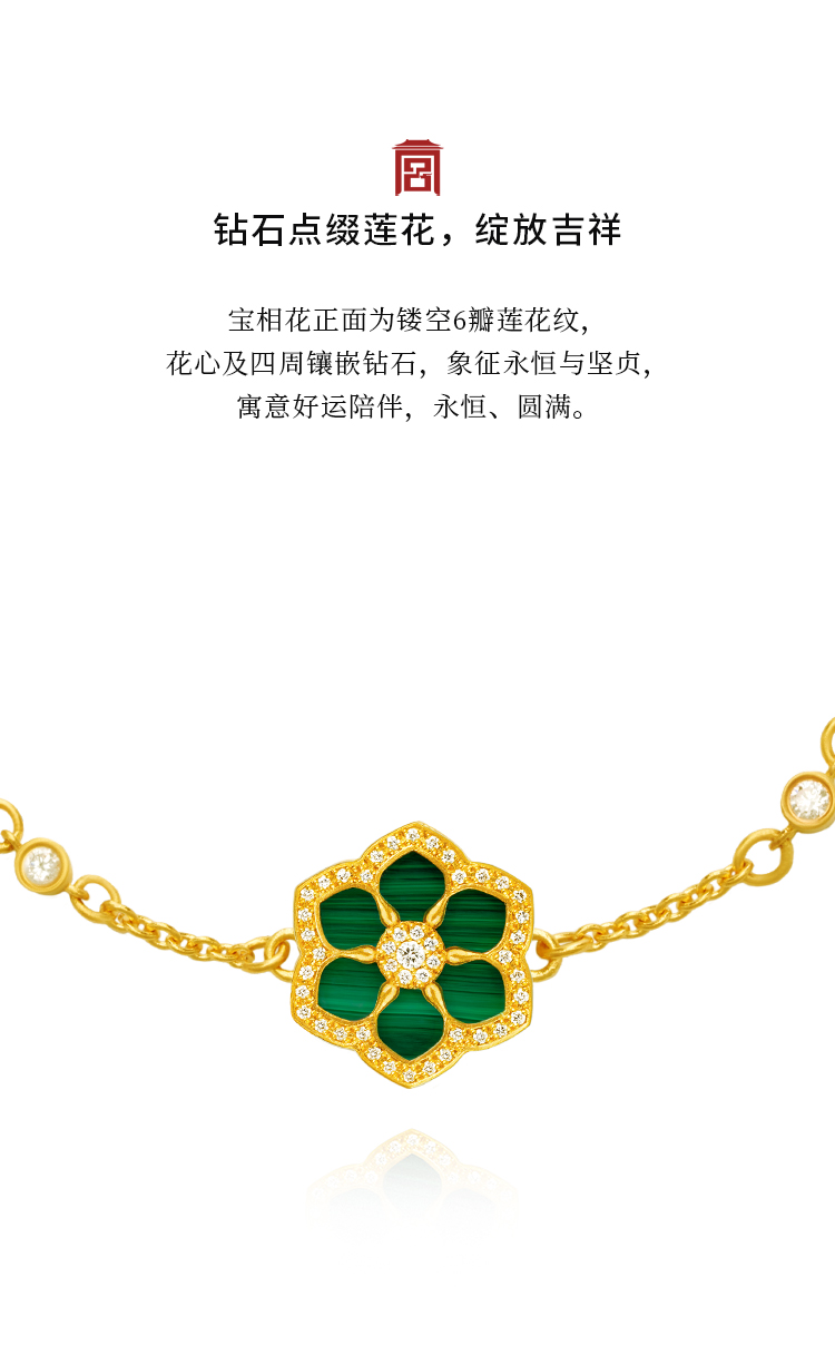 宫匠造办 宝莲花手链 黄金镶钻孔雀石