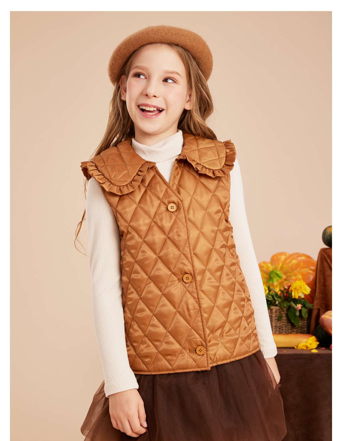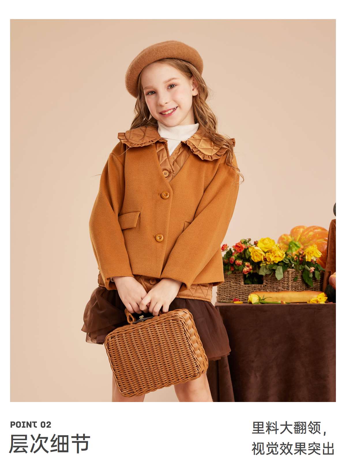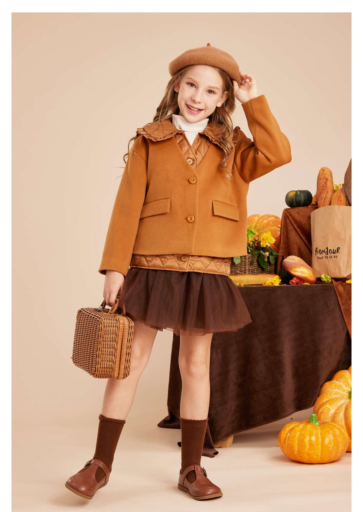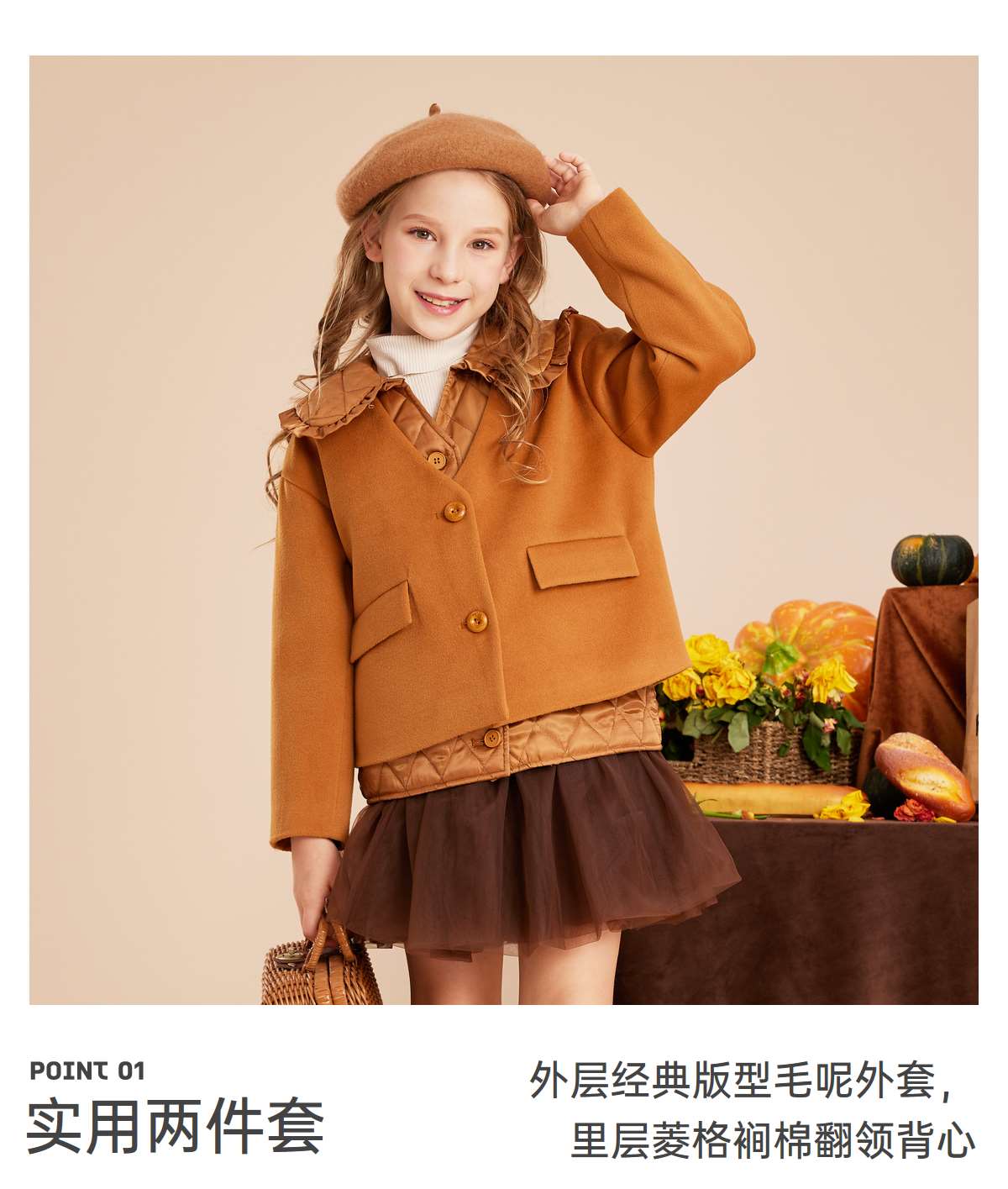 littletime女童小香风马甲外套两件套仿毛呢2022秋冬新款洋气套装