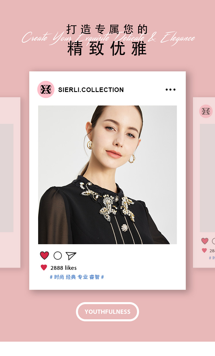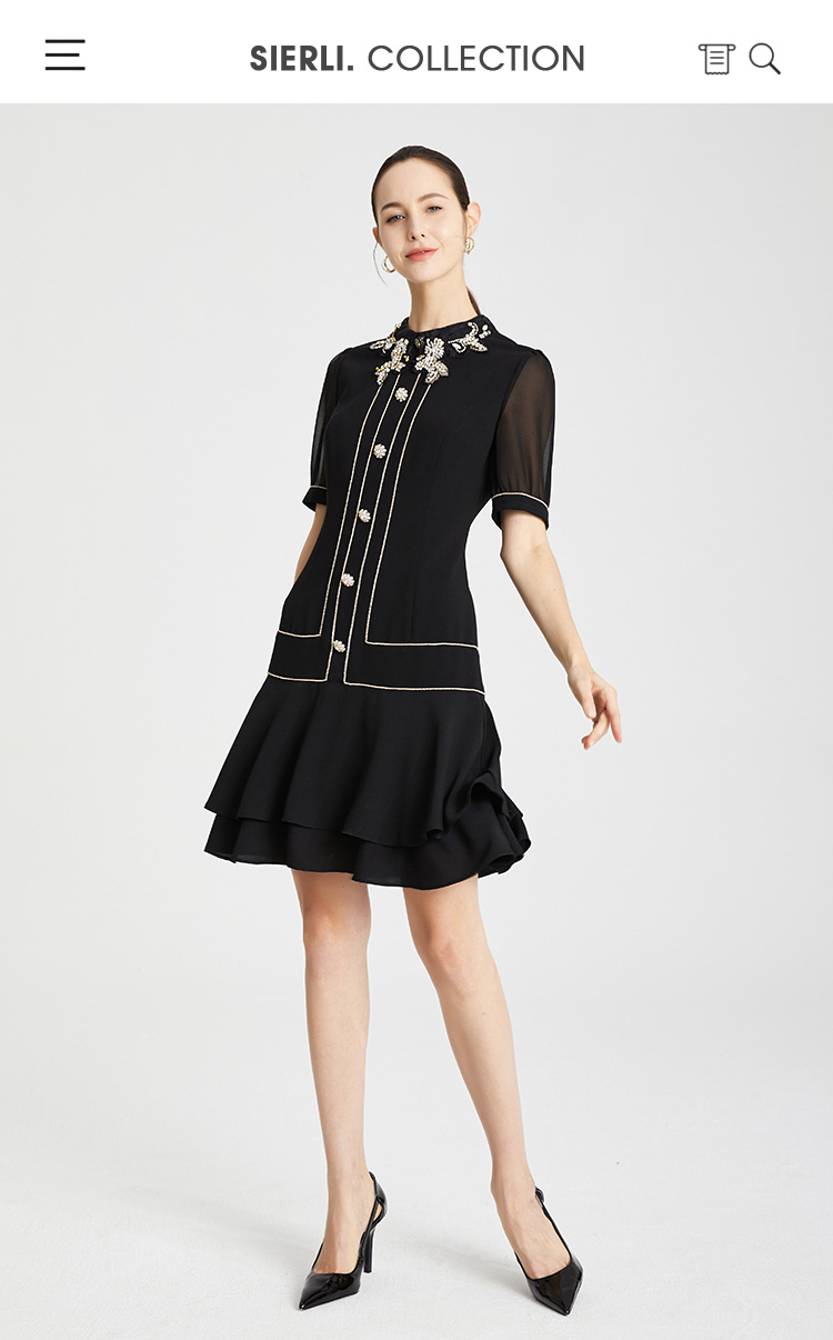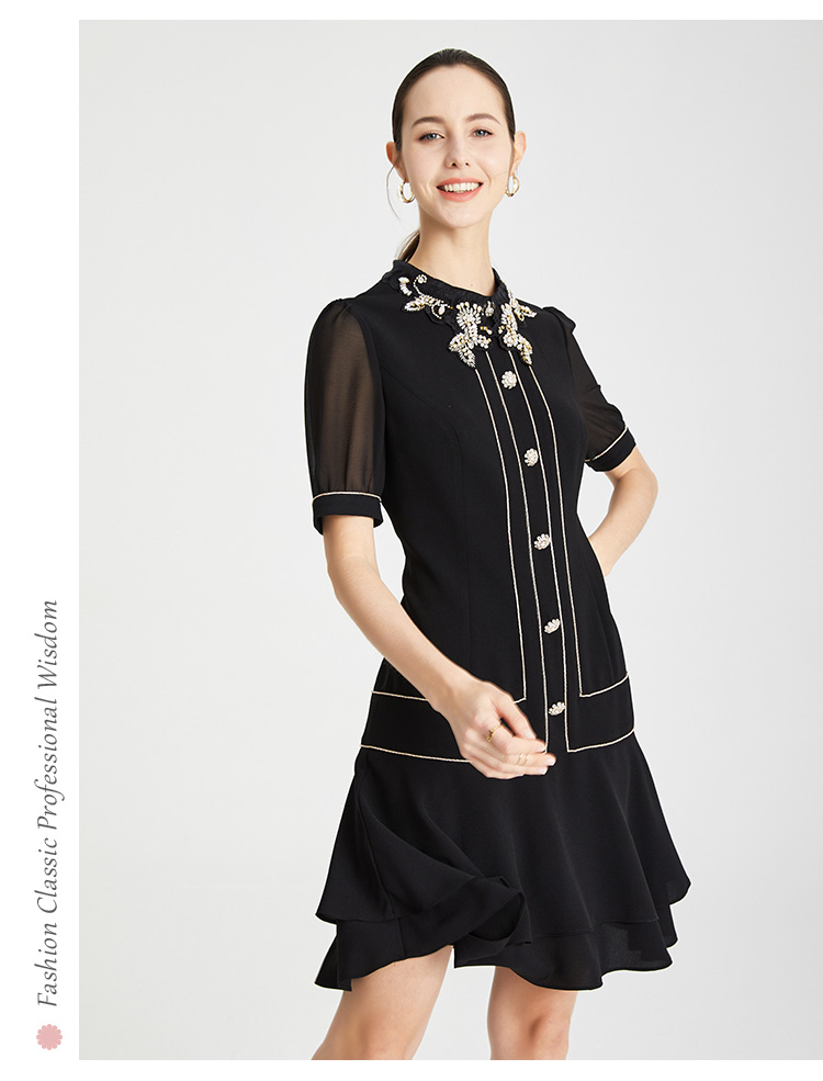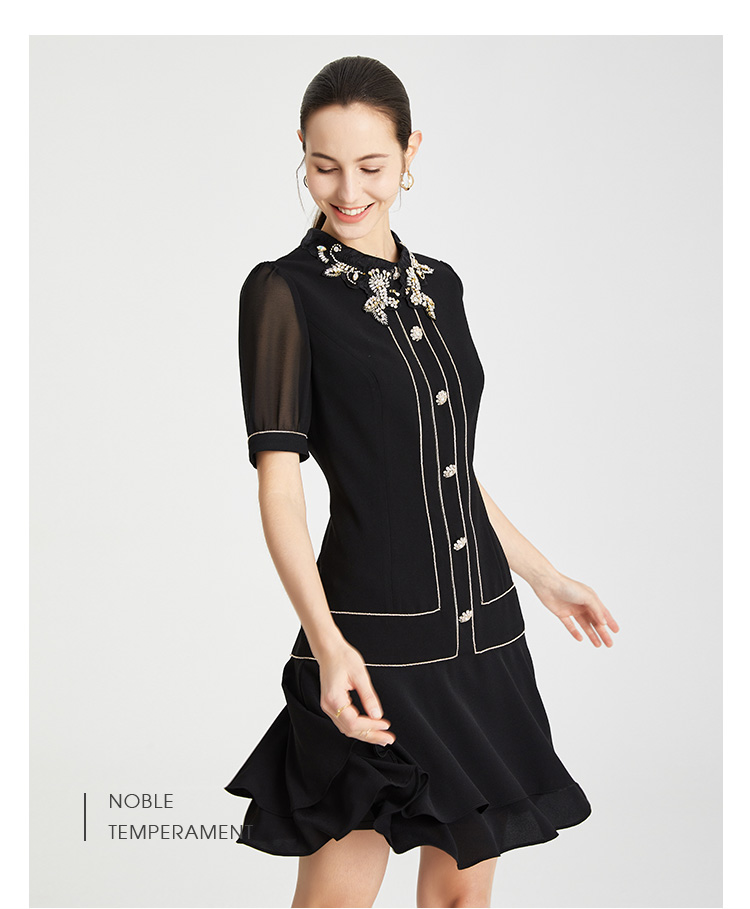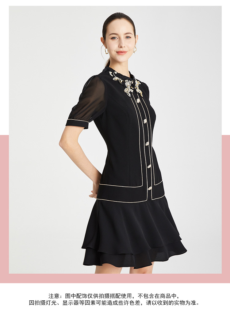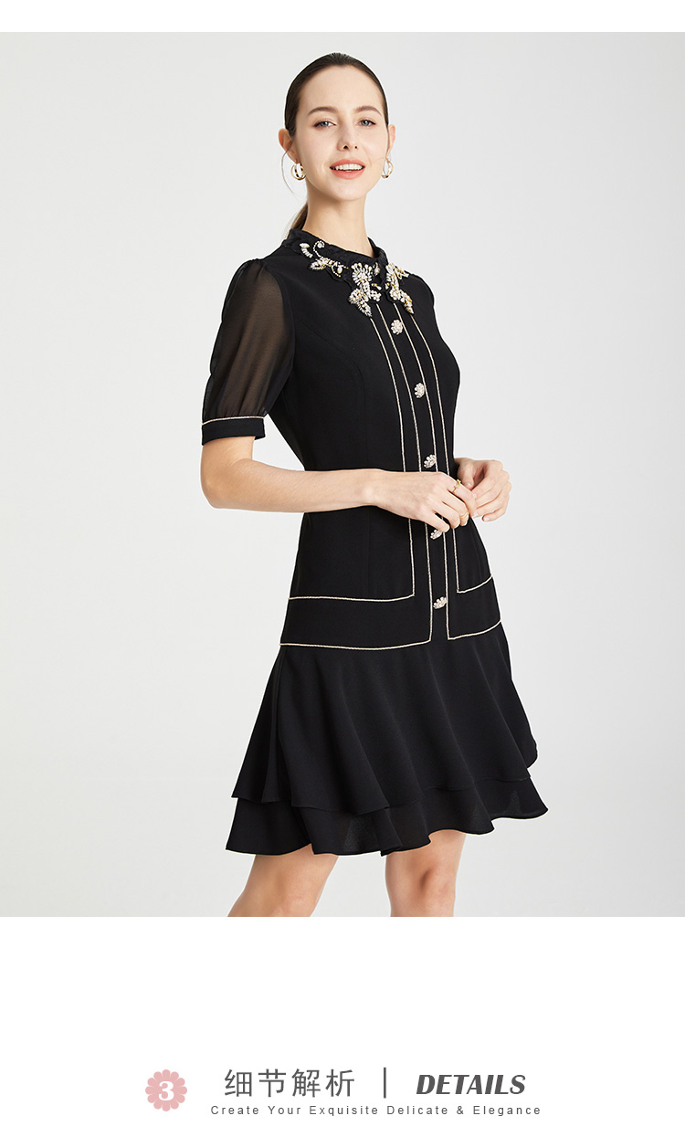 RF8A6斯尔丽瑟俪2021年夏季上新手工钉珠领衬衫式连衣裙