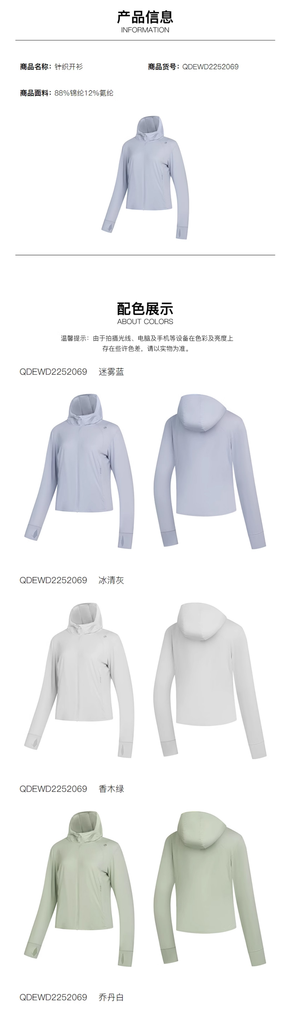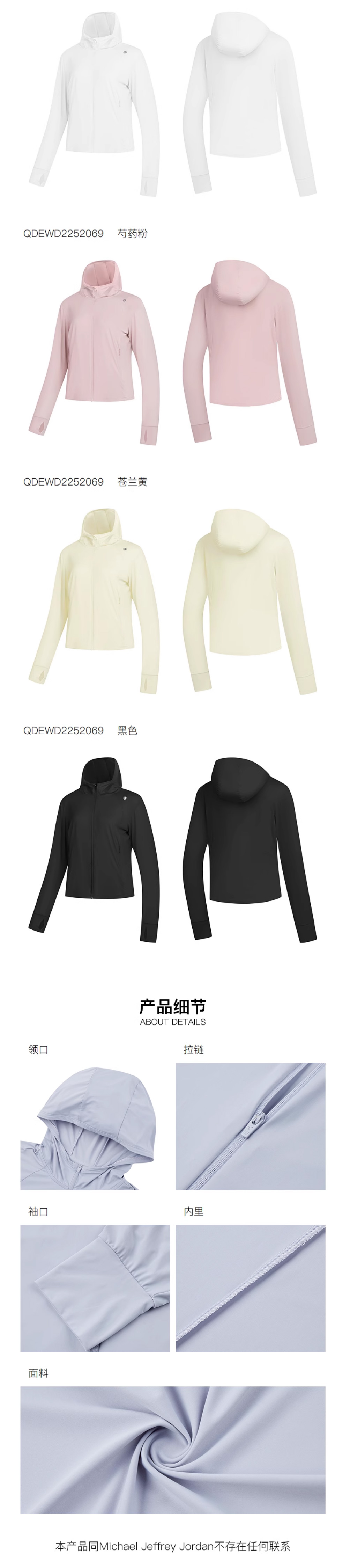 乔丹透气冰感UPF50+夏季新款遮热科技轻薄防晒衣连帽QDEWD2252069