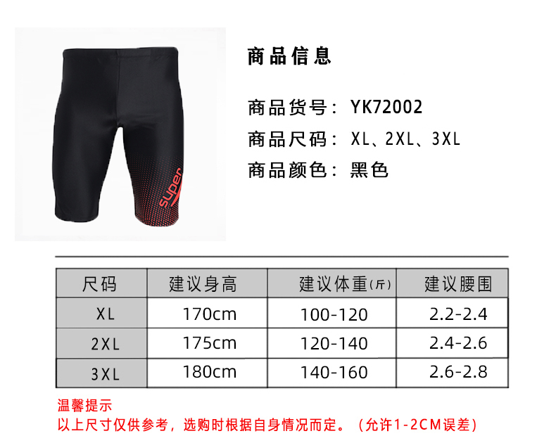 皇家丽美男士抗氯速干五分游泳裤YK72002