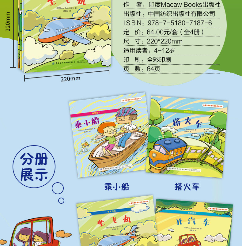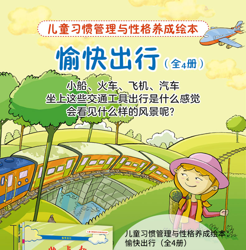 儿童习惯管理与性格养成绘本套装全4本 愉快出行 乘小船+搭火车+坐飞机+开汽车 青少年交通安全常识科普书 亲子阅读少儿睡前故事书