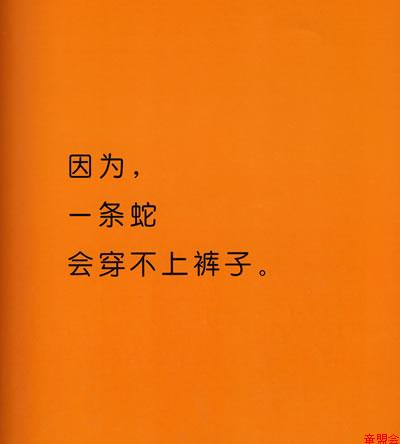 ……因为一条蛇会穿不上裤子,一只羊会把衣服当午餐吃掉,一头海象穿上衣服总是湿答答的。