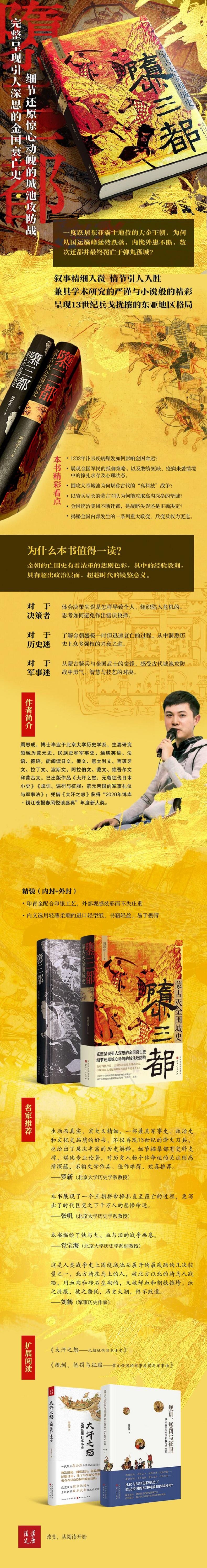 12世纪,发祥于东北一隅的女真族迅速崛起,建立大金王朝,一度跃居东亚霸主地位。这个政权在极短时间内灭亡辽国,令西夏和高丽俯首称臣,使北宋蒙受“靖康之耻”。然而自1211年蒙古军队南下侵袭开始,二十多年间,金国接连丧师失地,抵抗运动中心被迫从中都先后迁到汴京、蔡州,最终在蒙古和南宋军队的夹攻中覆亡。本书以蒙金战争期间几场重要的“围城战”为主线,还原了几场关键大型战役中双方军事布局和交战历程,揭秘了金国内部发生的一系列重大政变、兵变及权力更迭,展现了中都、汴京等城市被蒙古军围困期间,金国军民的抵御策略,以及物资短缺、疫病来袭情境中的挣扎求存及心理状态。作者以通俗晓畅的笔法完整呈现了金王朝从组织抵御、负隅顽抗到君死国亡的全过程,金朝的治乱兴衰之缘由寓于叙事之中。外部面临新兴势力的冲击,境内自然灾害频繁,而统治集团权力斗争导致人祸不断,君主又缺乏力挽狂澜的雄才大略……种种因素使得金国国势日益窘困,......
