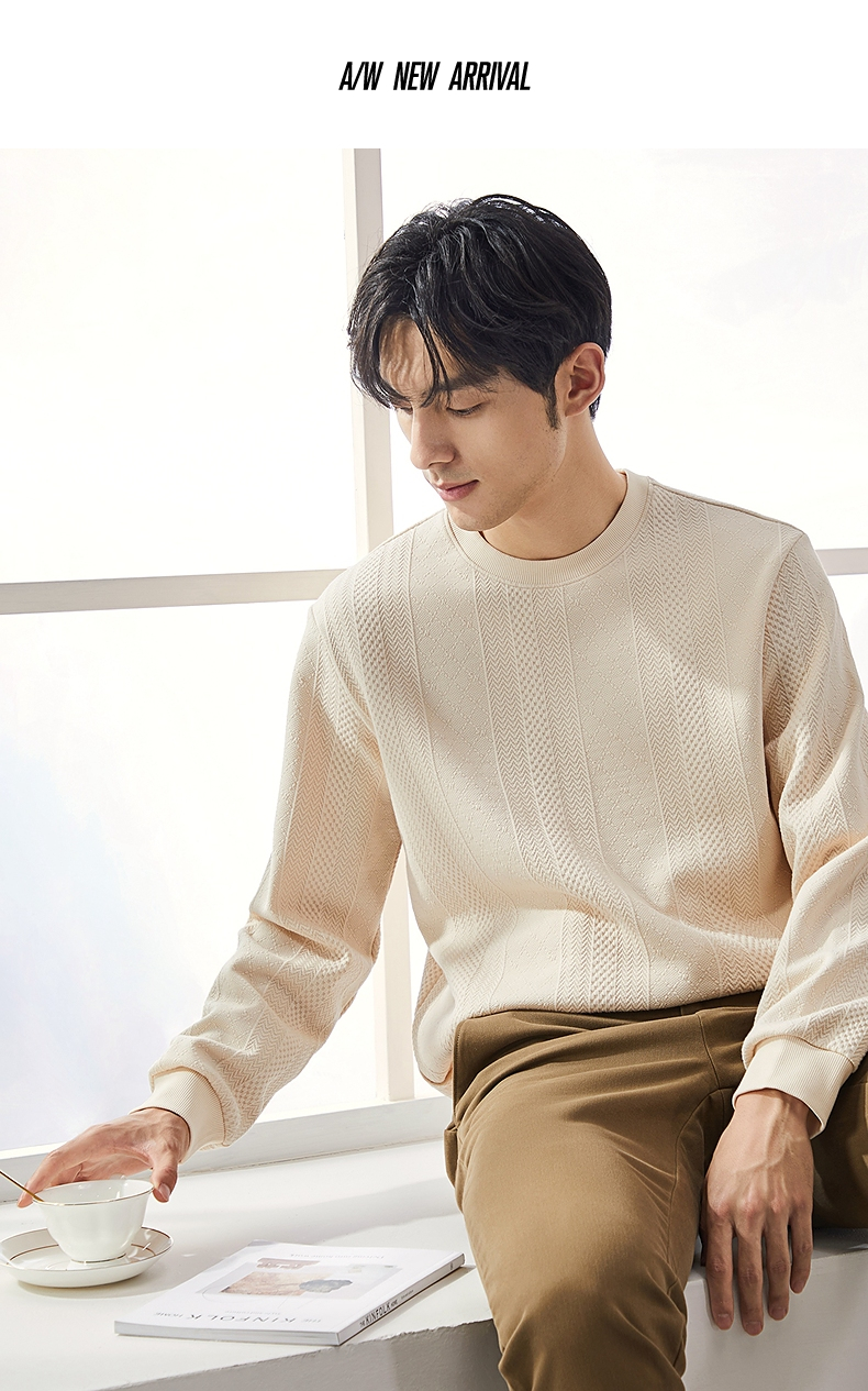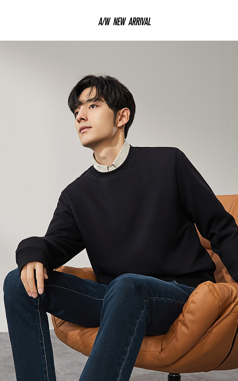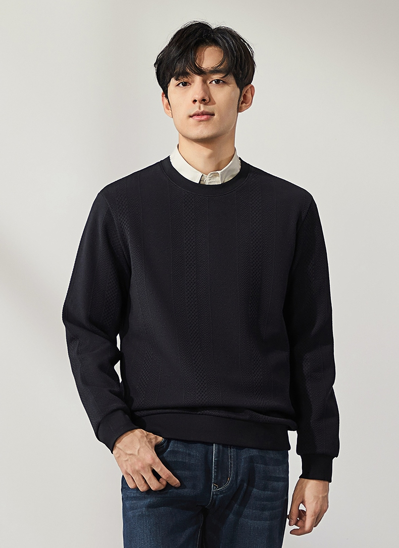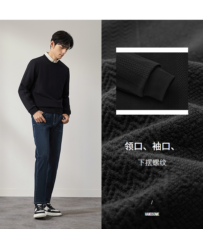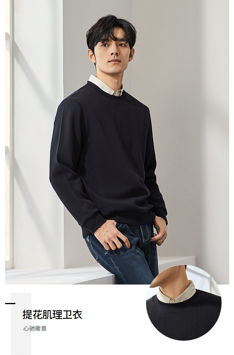 柒牌男装圆领卫衣男士2024秋季新款提花肌理时尚休闲长袖套头上衣 127W70370