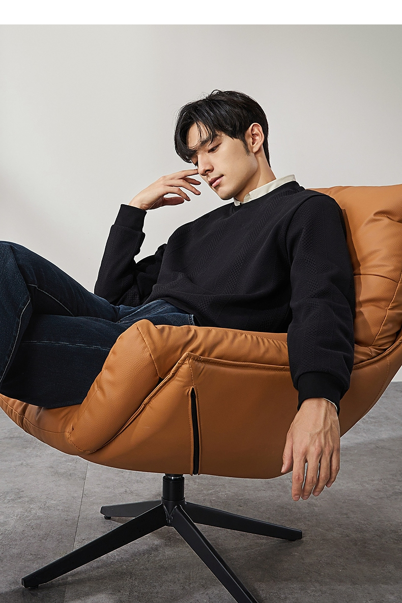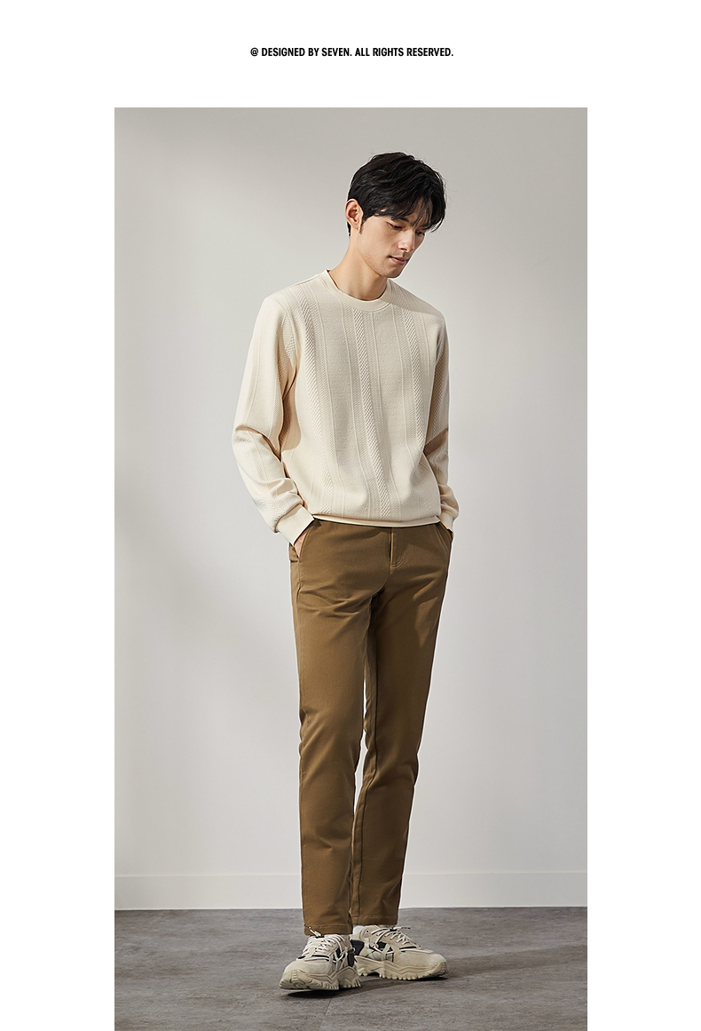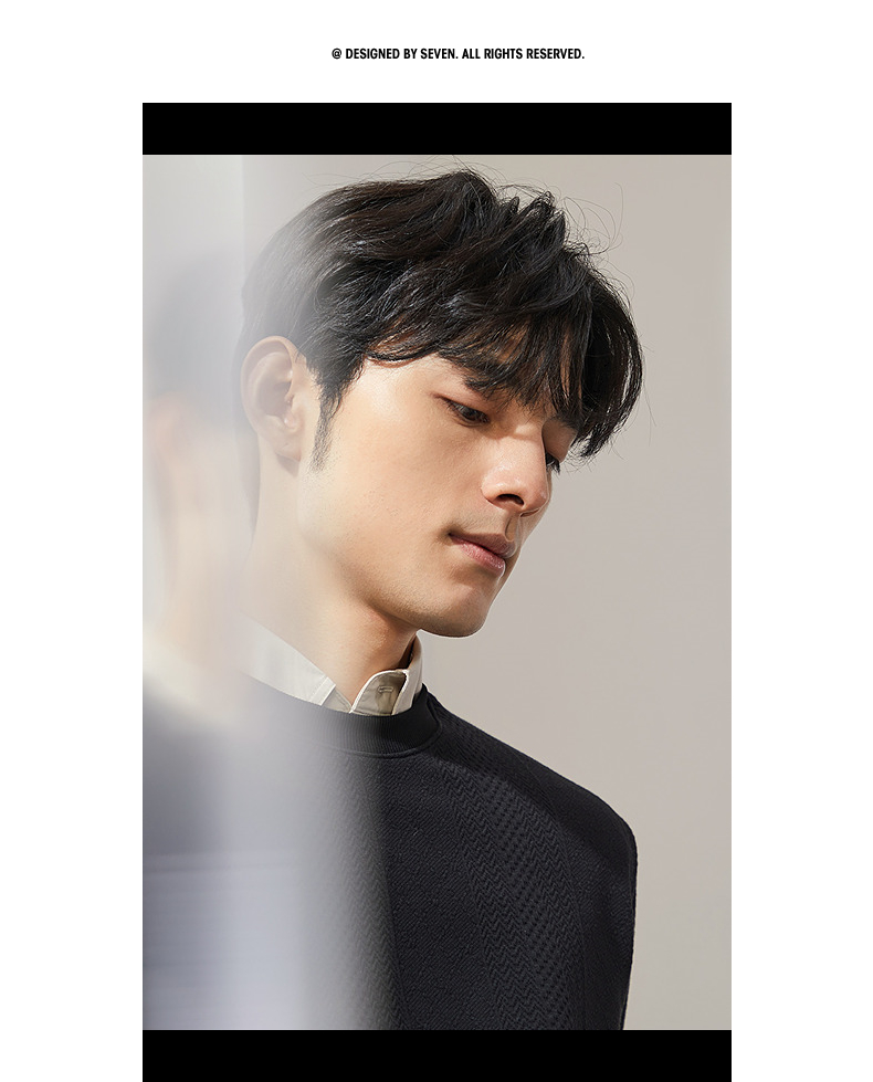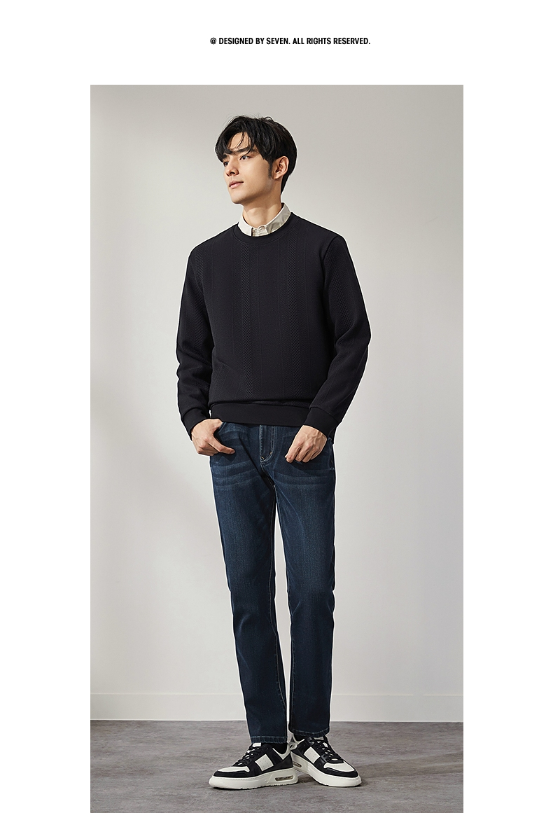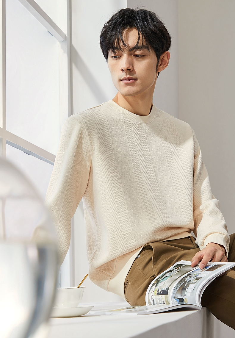 柒牌男装圆领卫衣男士2024秋季新款提花肌理时尚休闲长袖套头上衣 127W70370