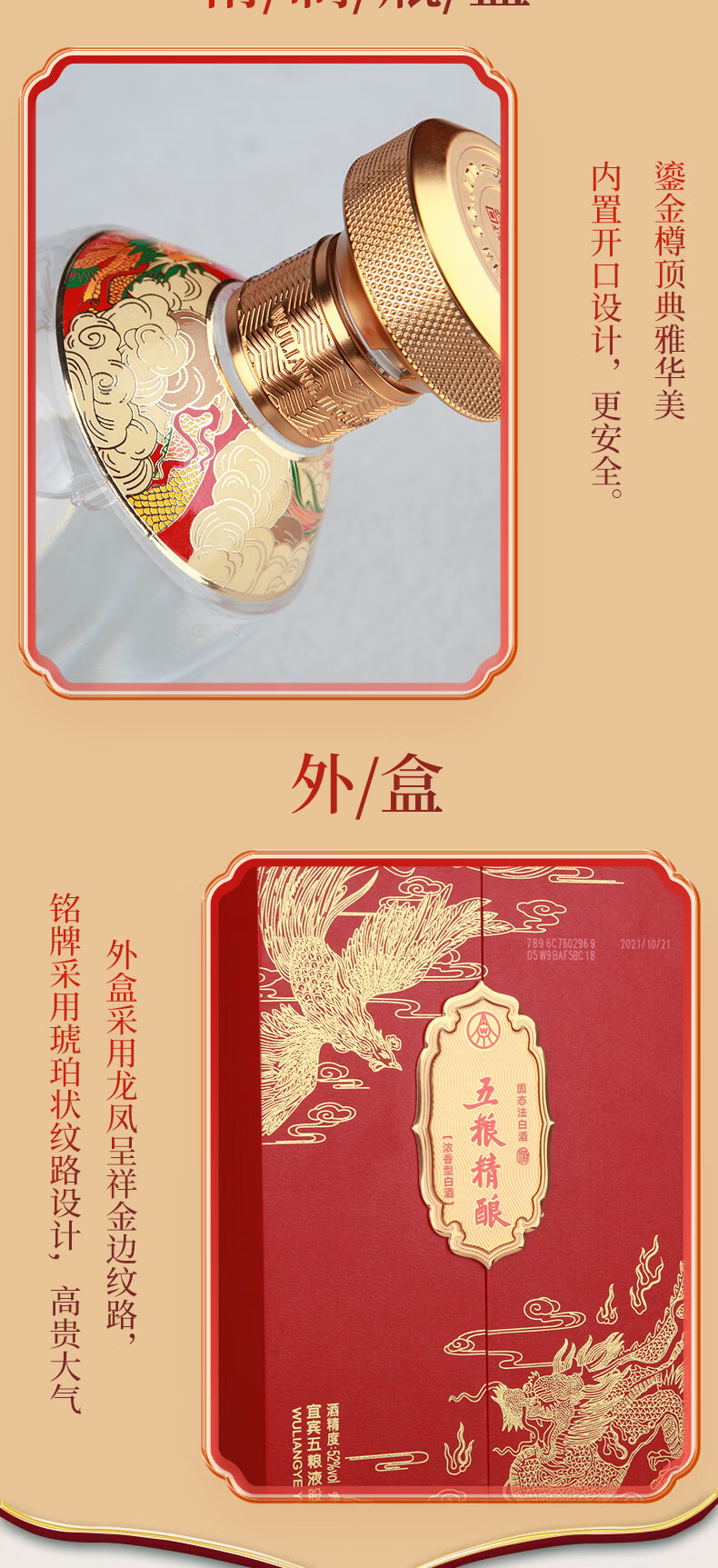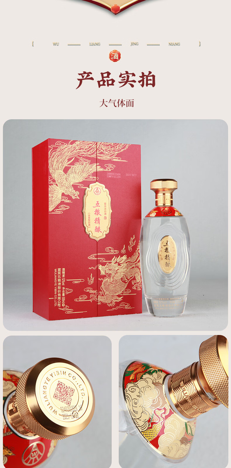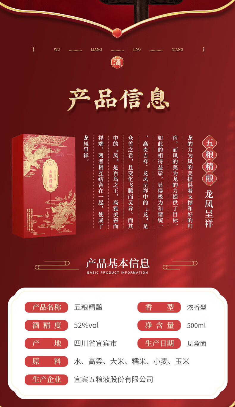 【宜宾五粮液股份有限公司出品】五粮精酿*龙凤呈祥 500ml*2瓶 52%vol浓香型白酒 滴滴精酿 尾净香长 精美礼盒包装
