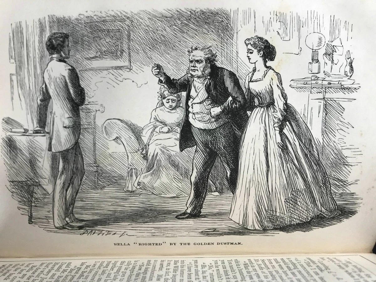 约19世纪后期 狄更斯《我们共同的朋友》 8幅插图 真皮精装36开