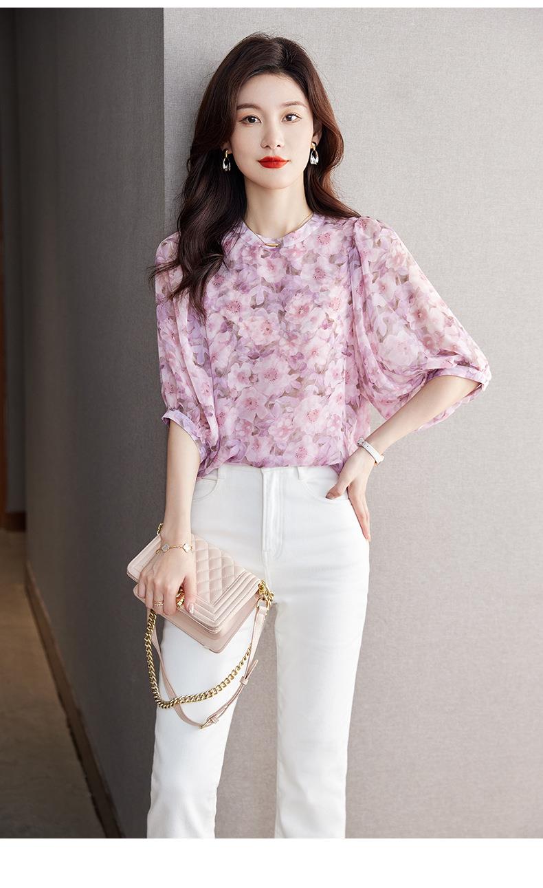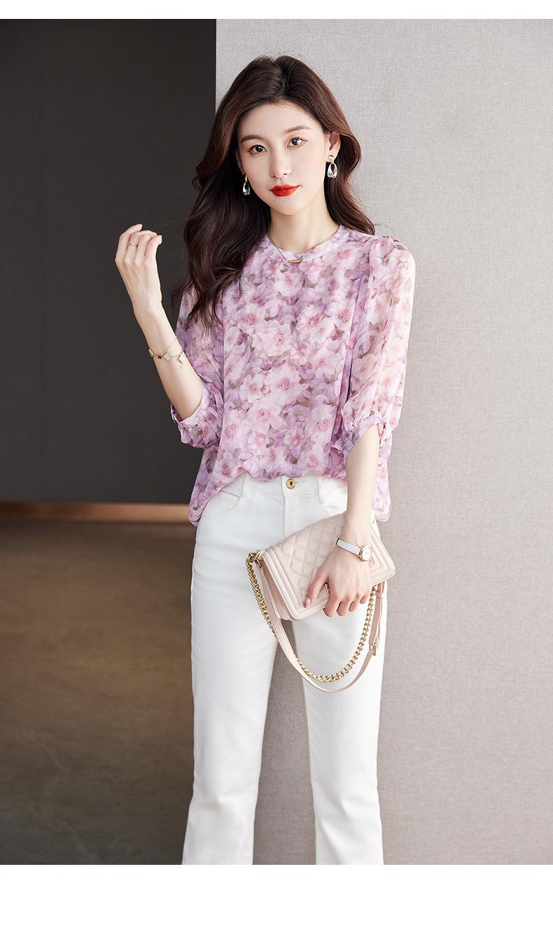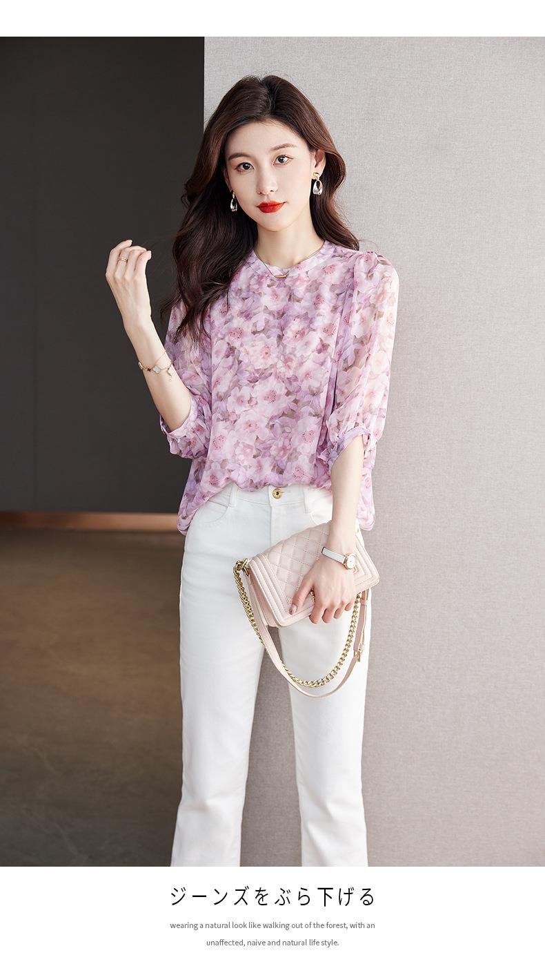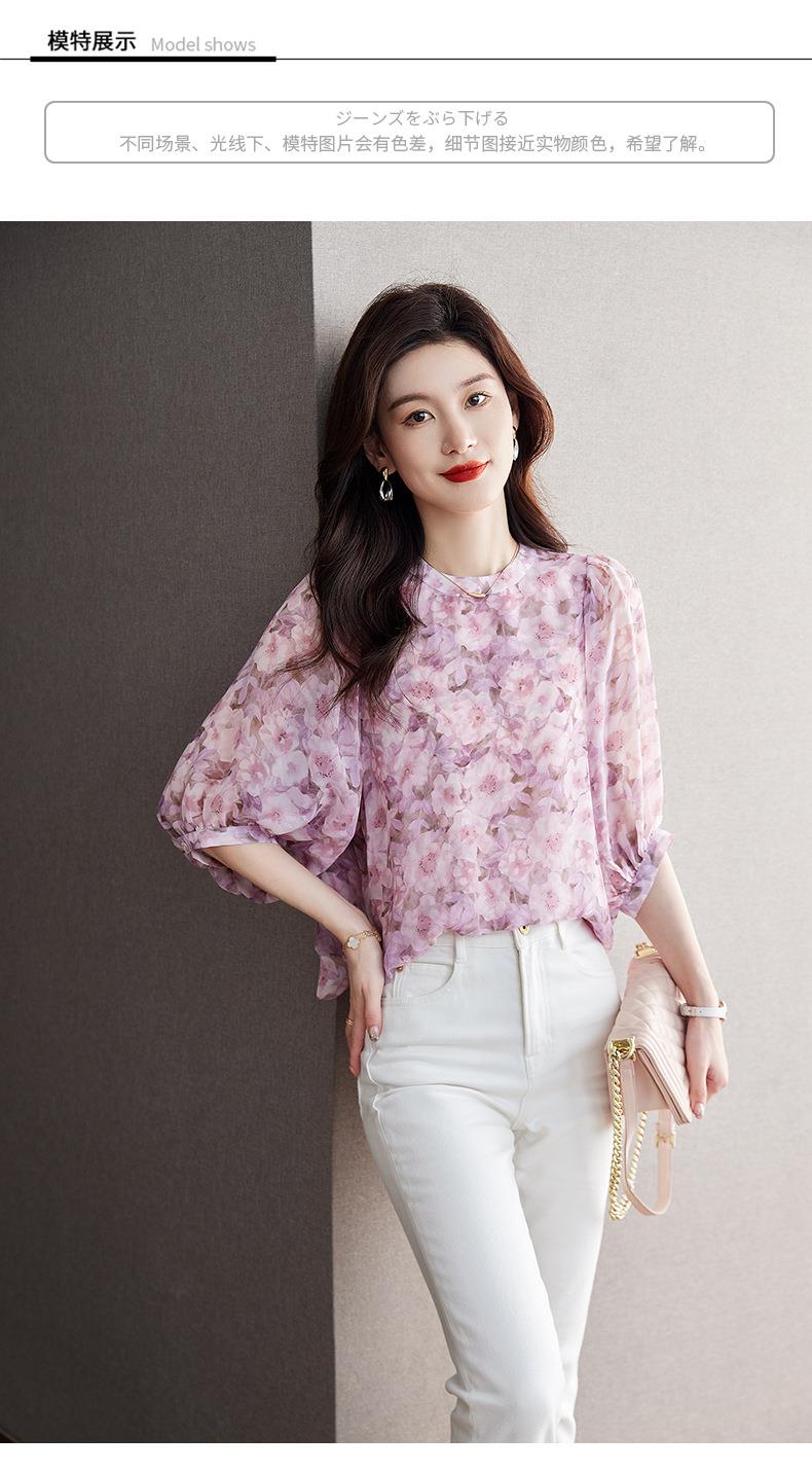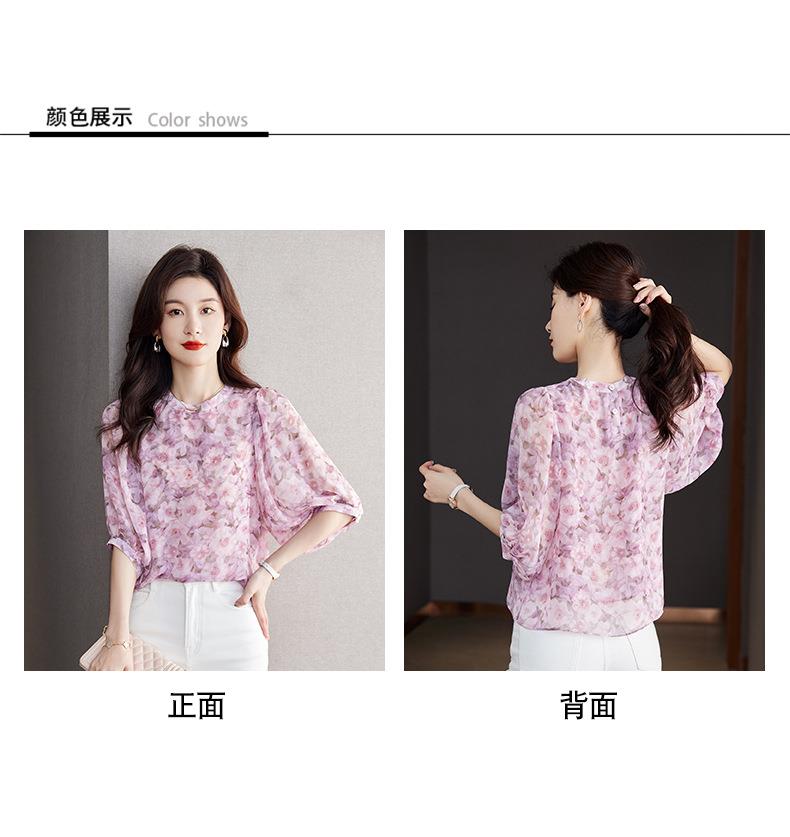 2023夏季新款雪纺衫五分袖衬衫女大码T恤圆领小衫5016