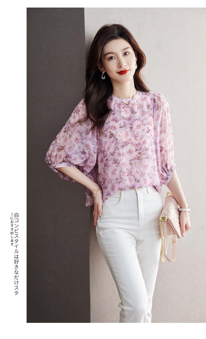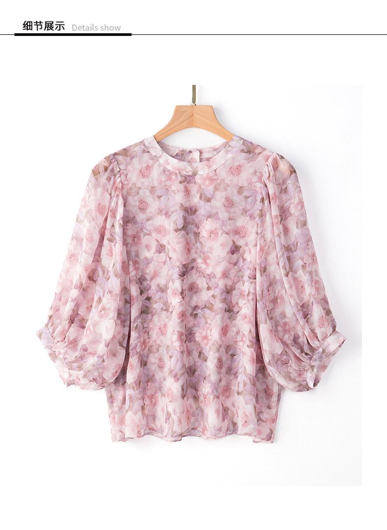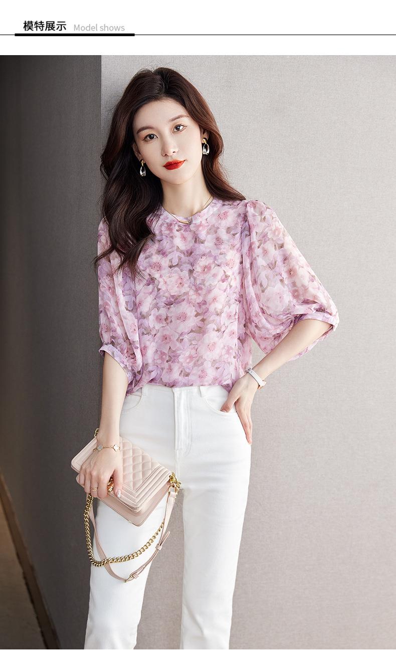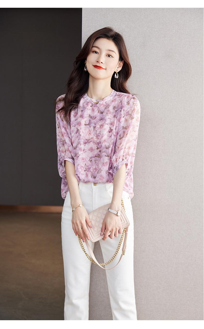 2023夏季新款雪纺衫五分袖衬衫女大码T恤圆领小衫5016