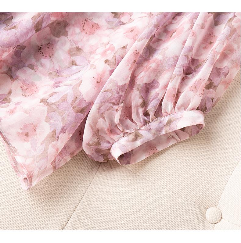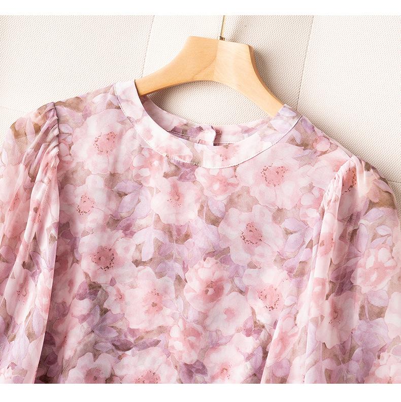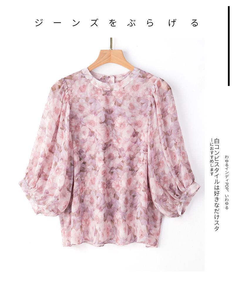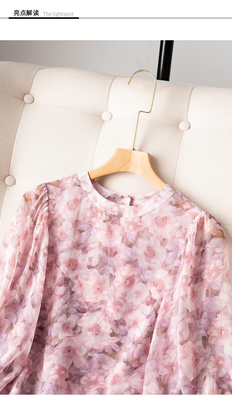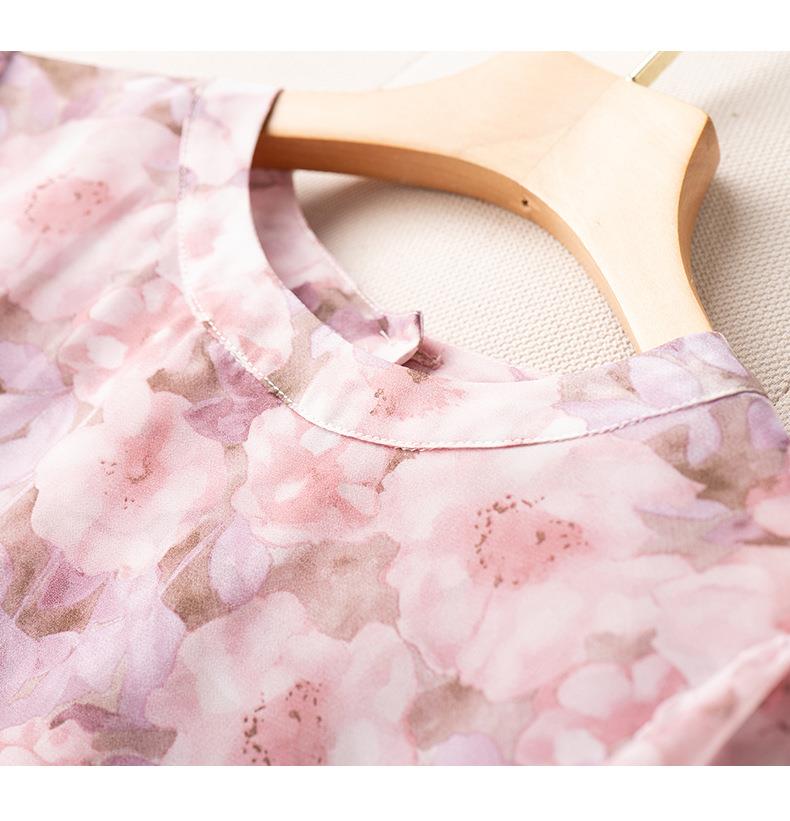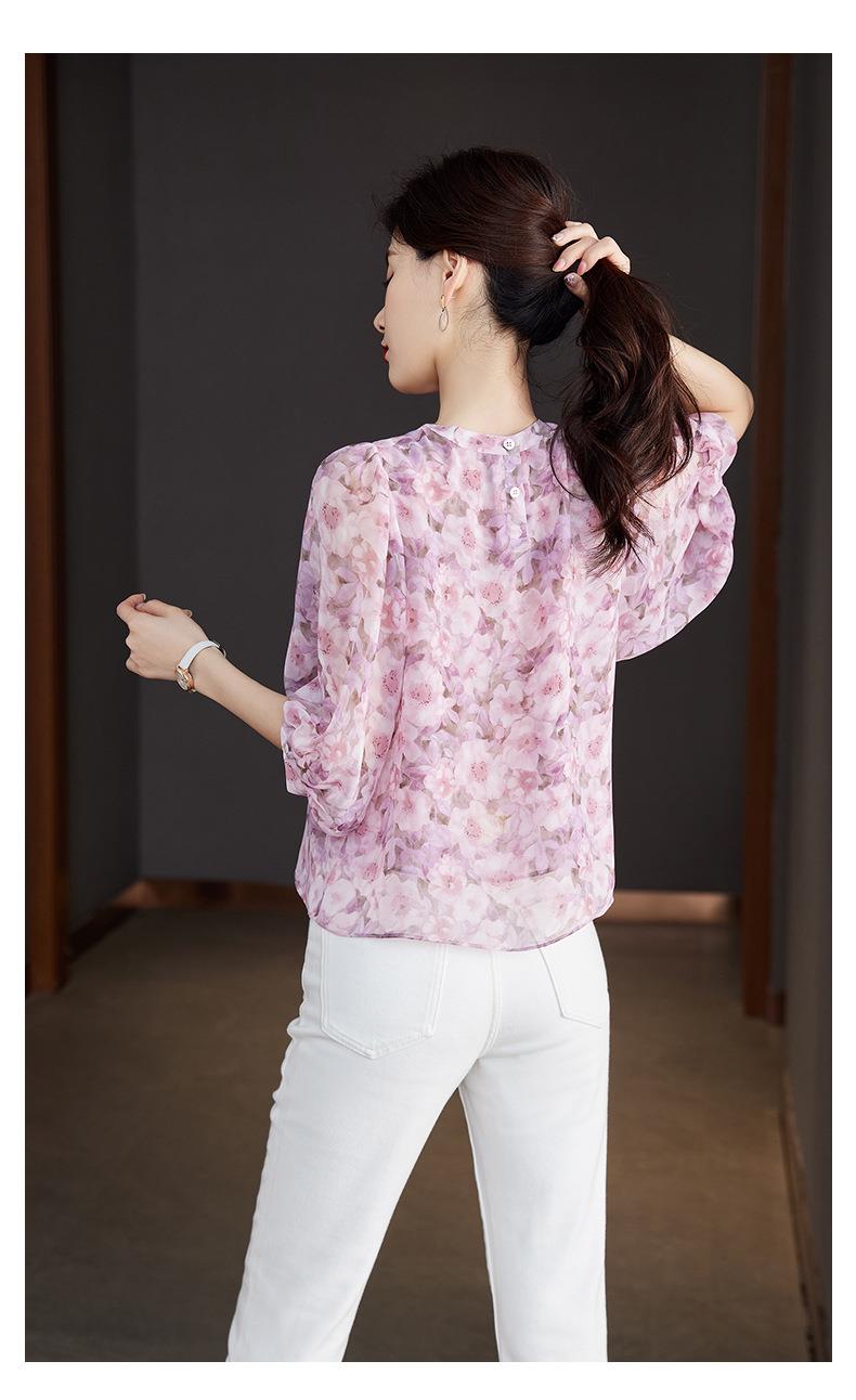 2023夏季新款雪纺衫五分袖衬衫女大码T恤圆领小衫5016