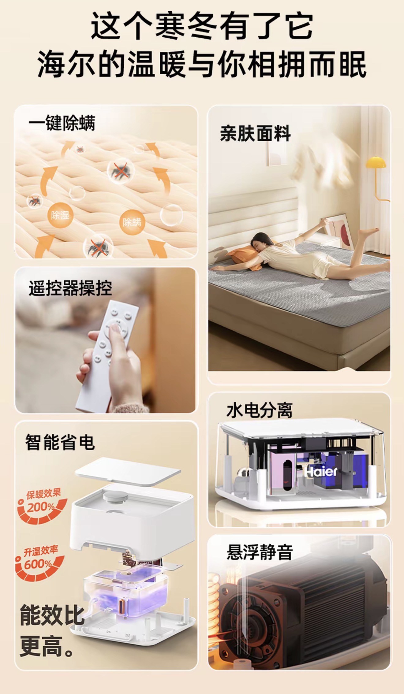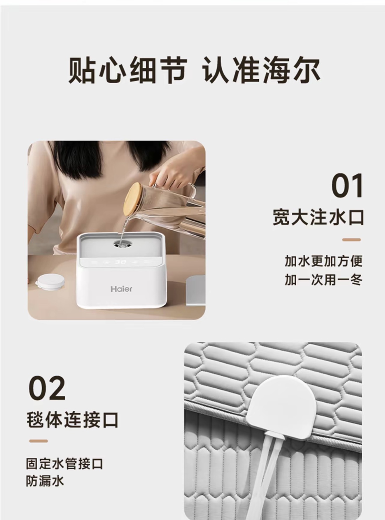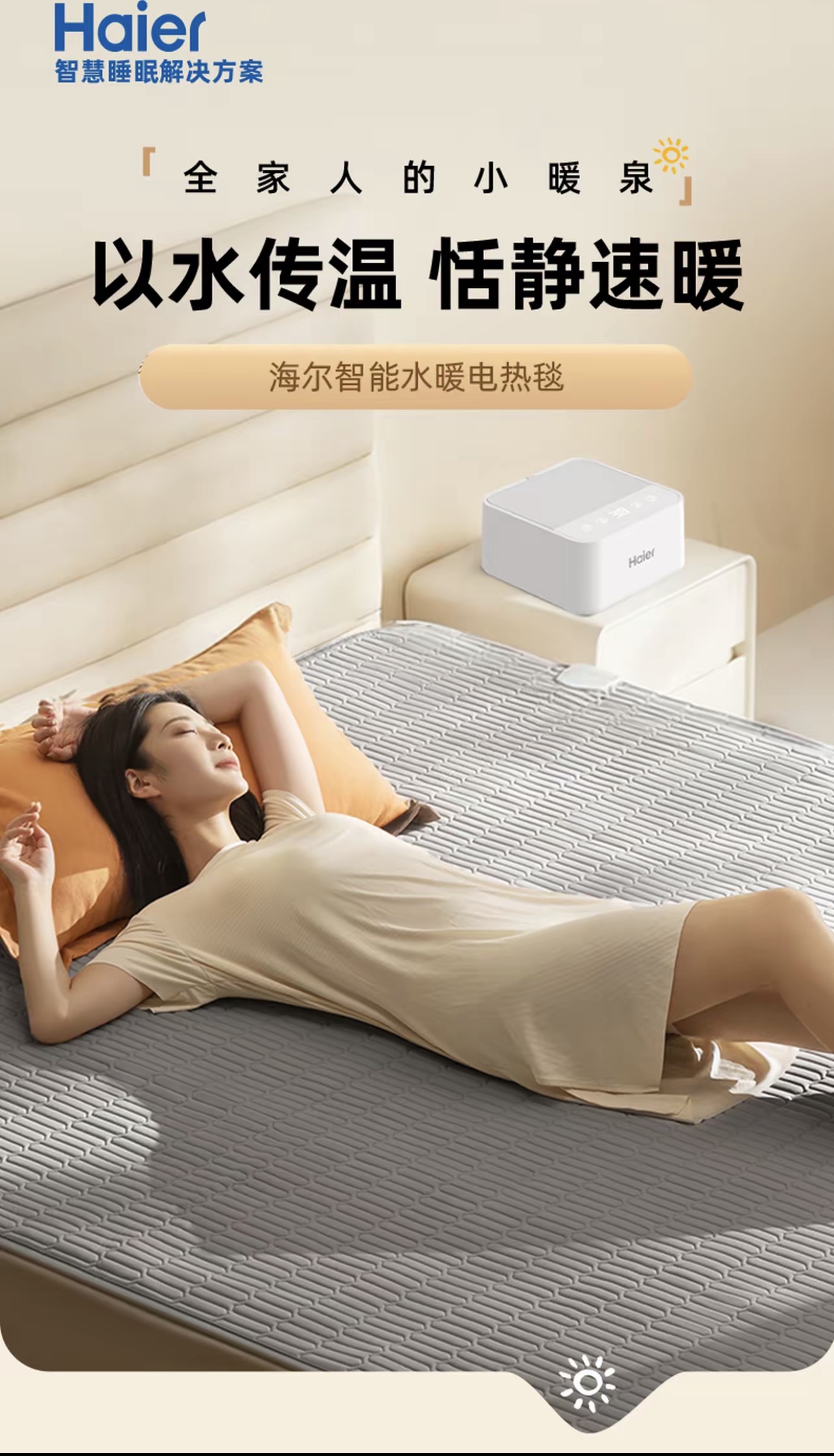 海尔(Haier)水暖毯双人家用电暖毯电褥子调温除湿除螨水热毯热水循环母婴儿水暖床垫智能恒温电热毯安全取暖SN-118
