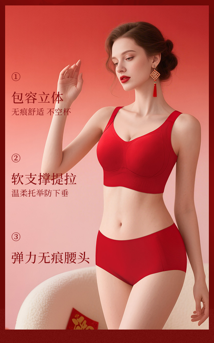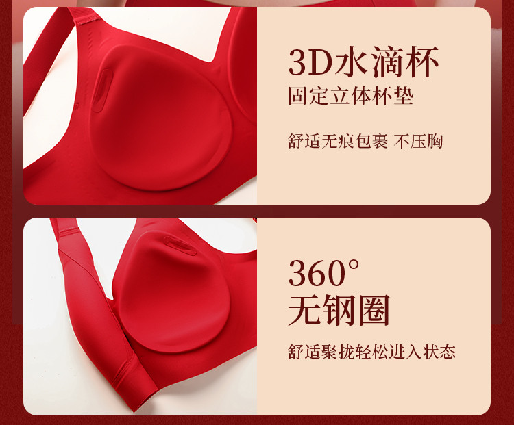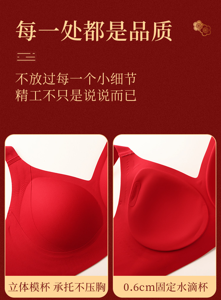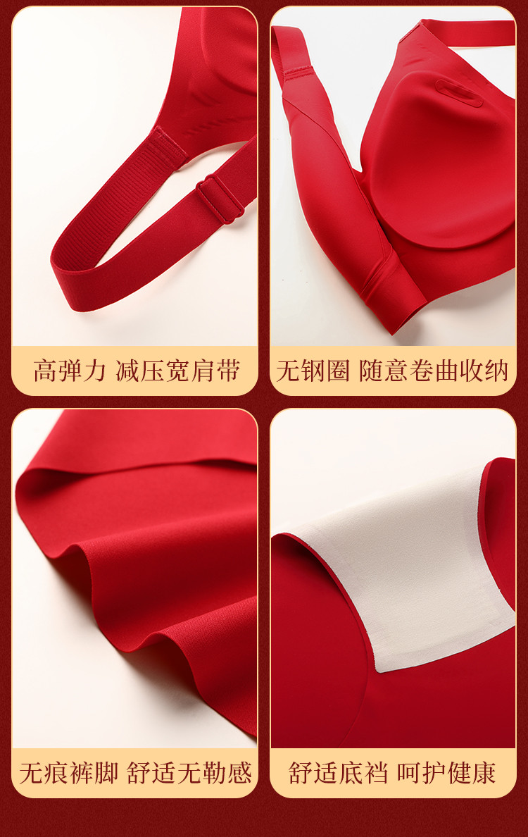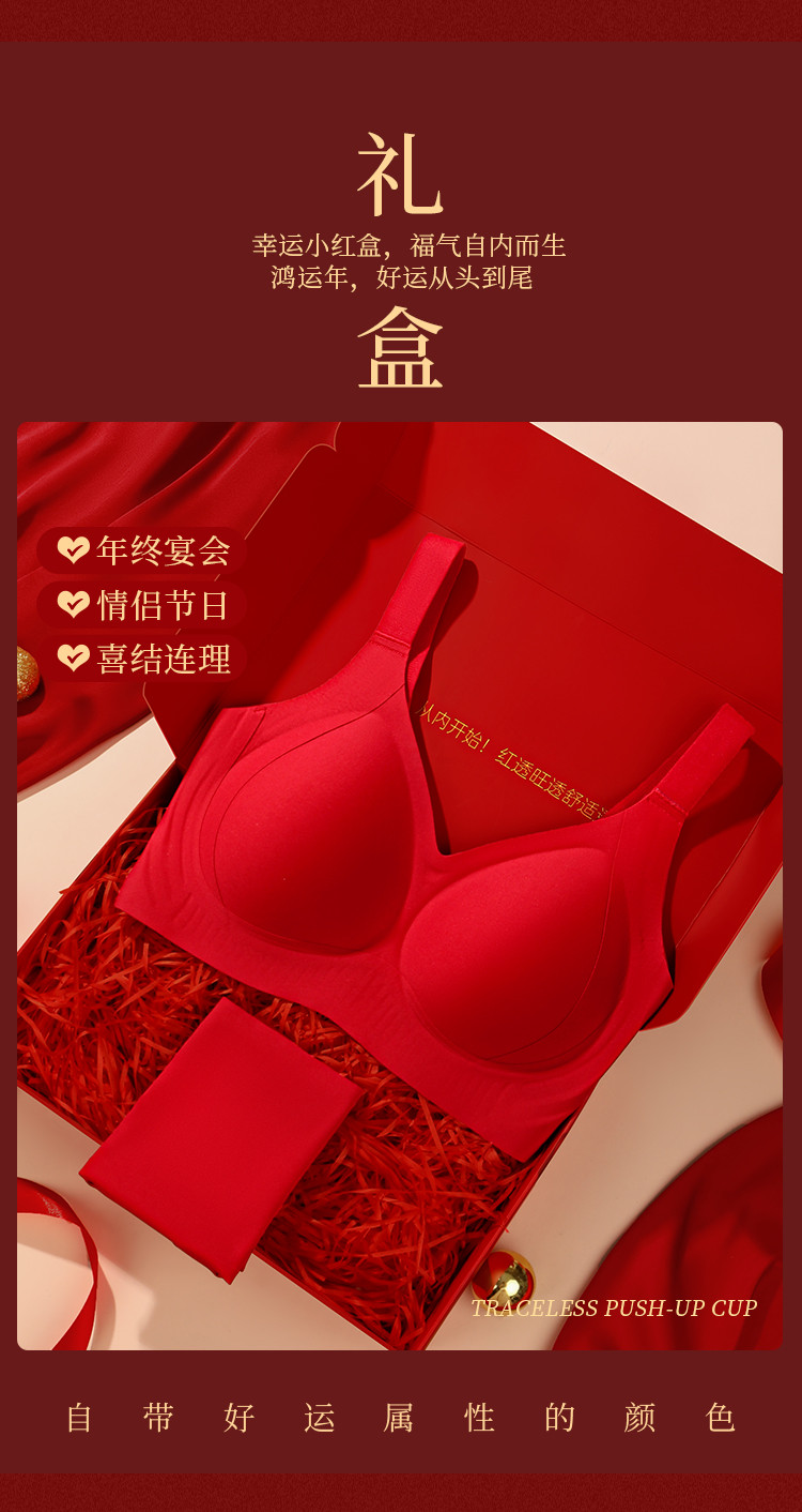 朱颜并蒂 舒适文胸套装(VIP)【鸿运礼盒装】反重力提拉无痕聚拢收副乳防下垂红色文胸套装
