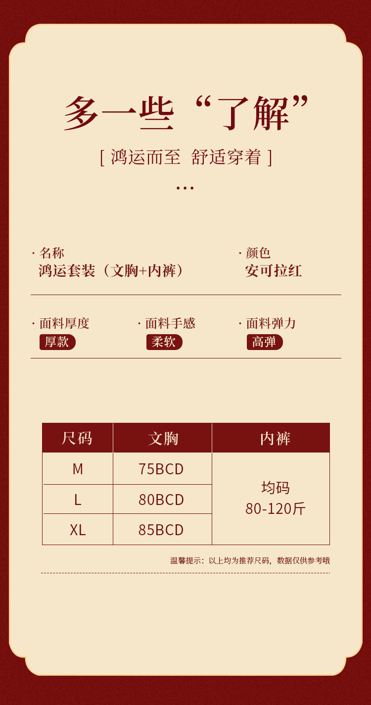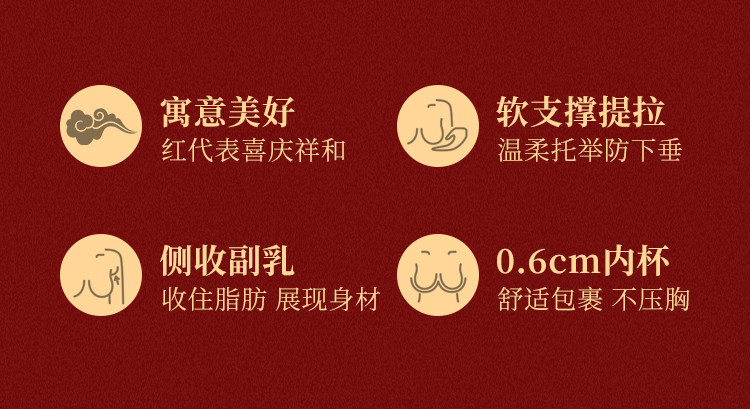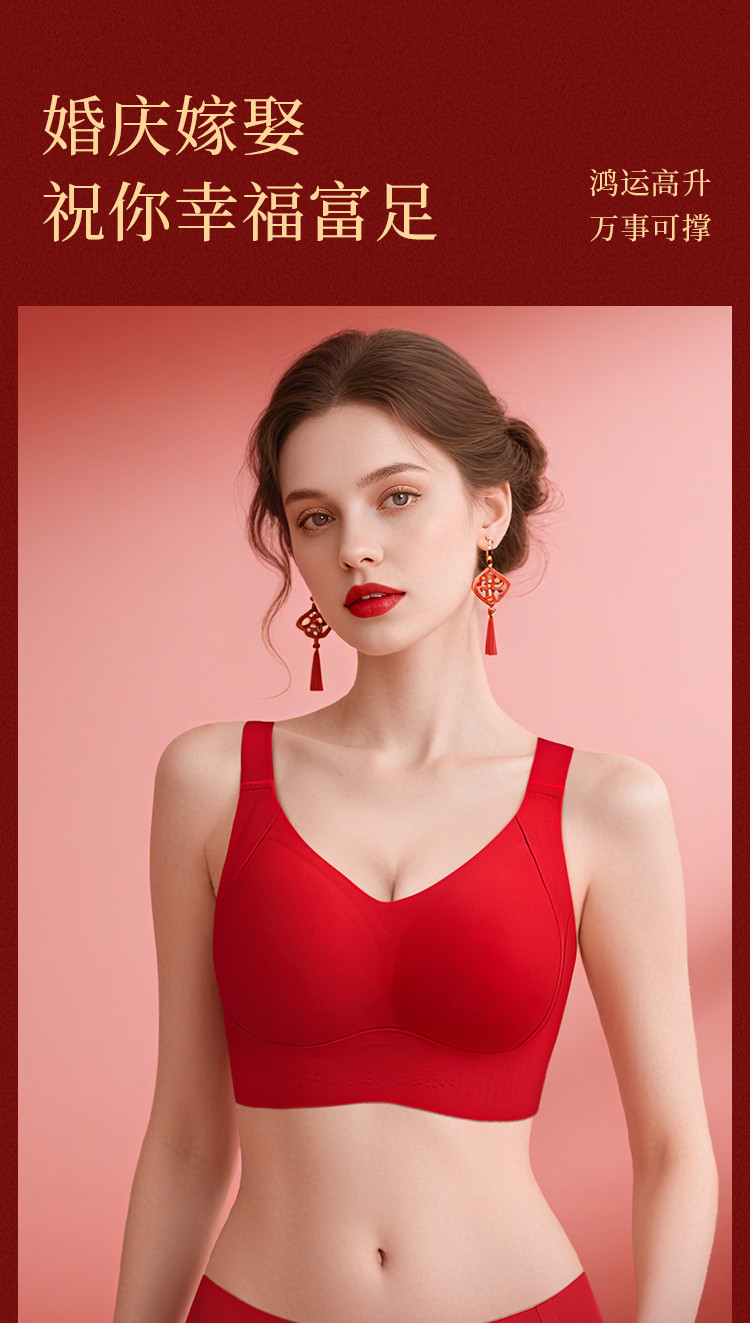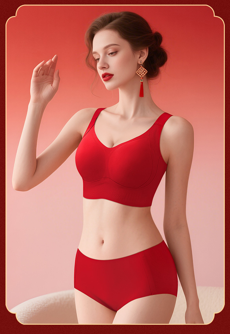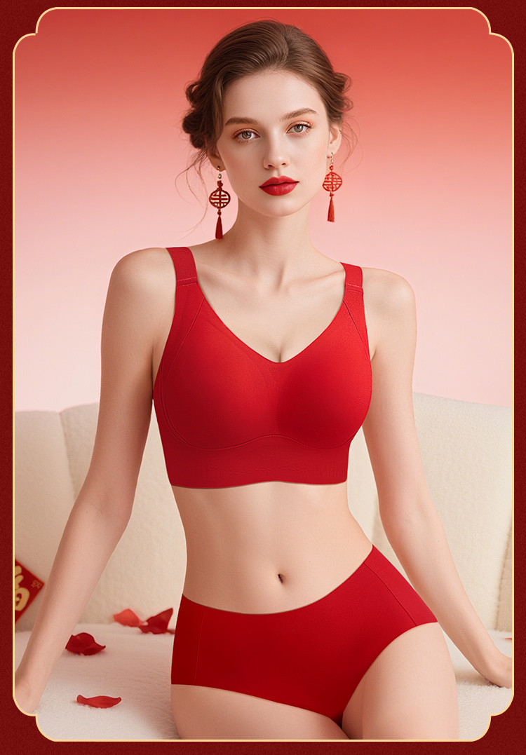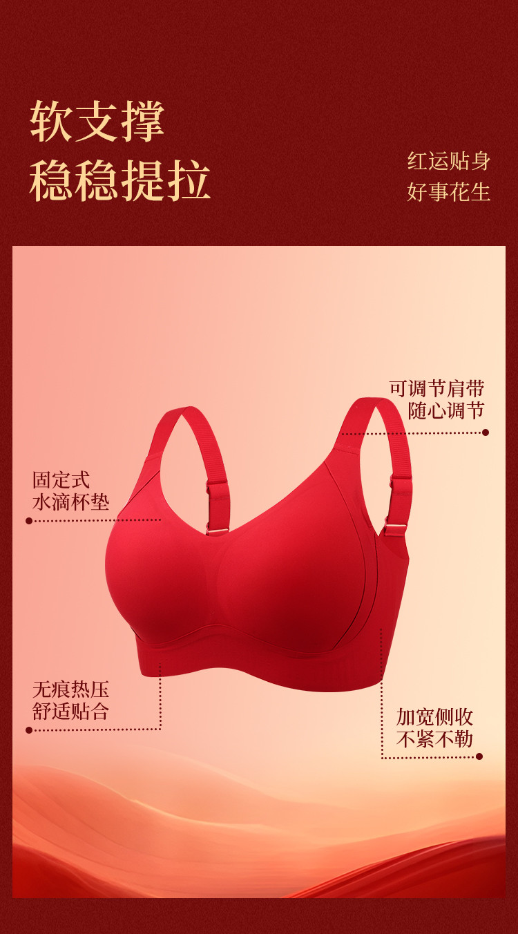 朱颜并蒂 舒适文胸套装(VIP)【鸿运礼盒装】反重力提拉无痕聚拢收副乳防下垂红色文胸套装