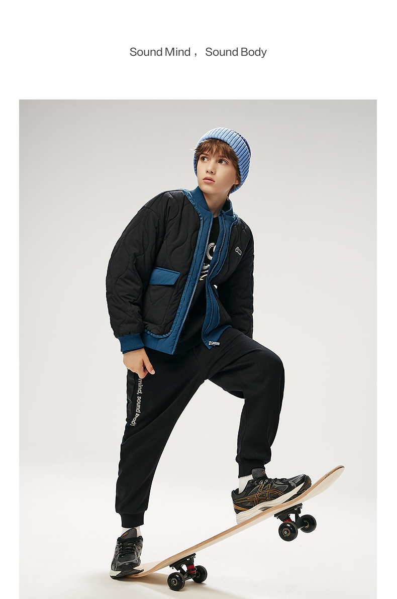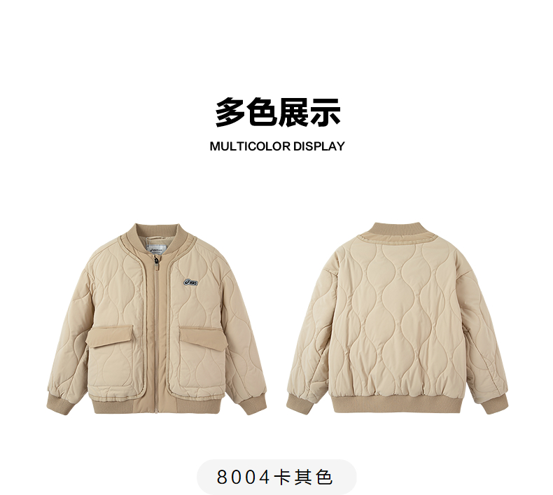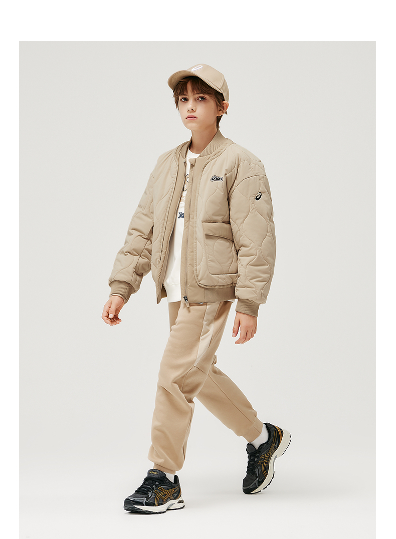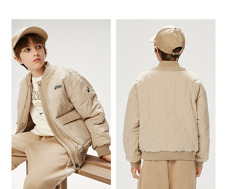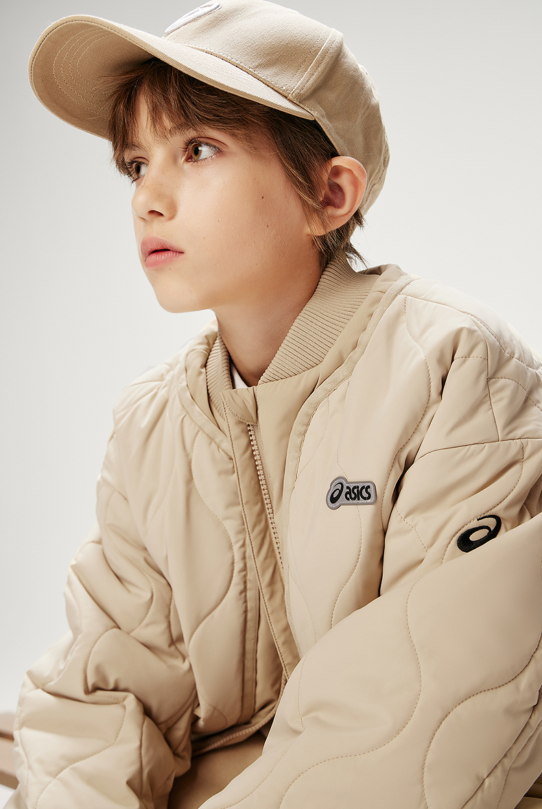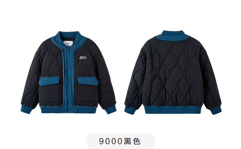 ASICS/亚瑟士童装25年防泼水潮流夹棉棒球夹克撞色假两件时尚百搭