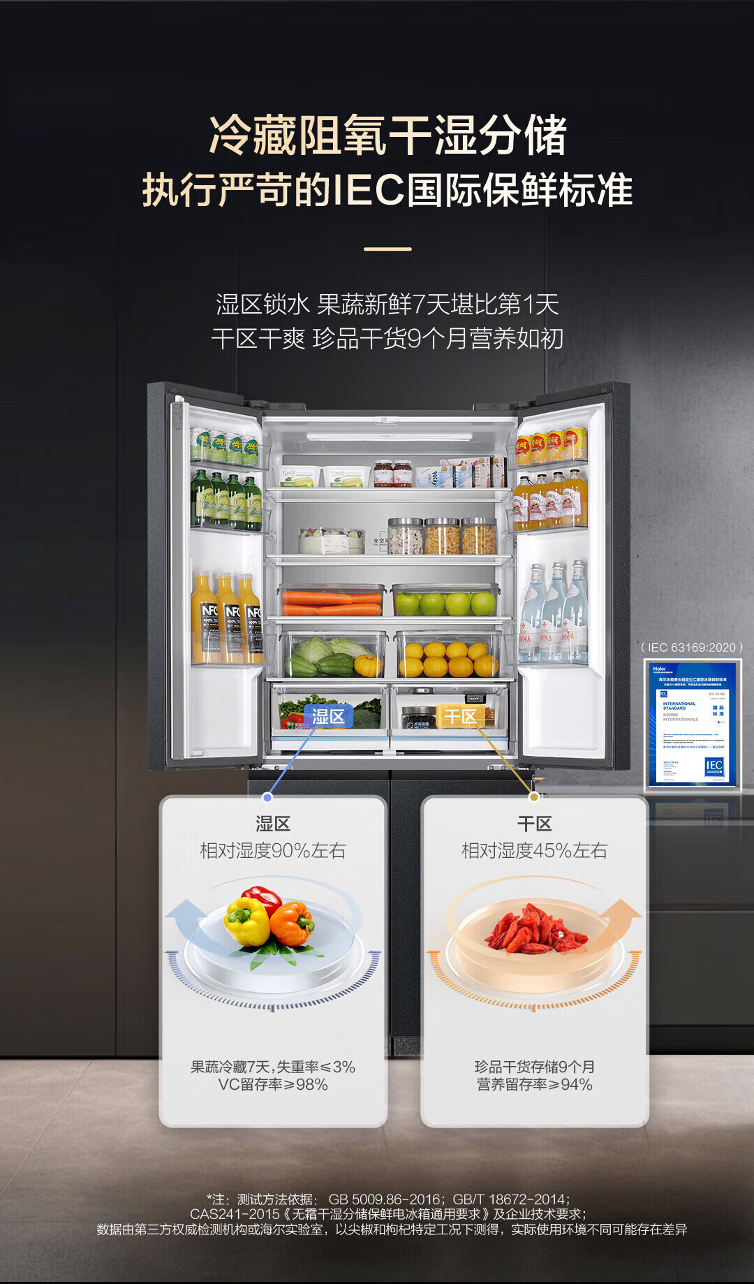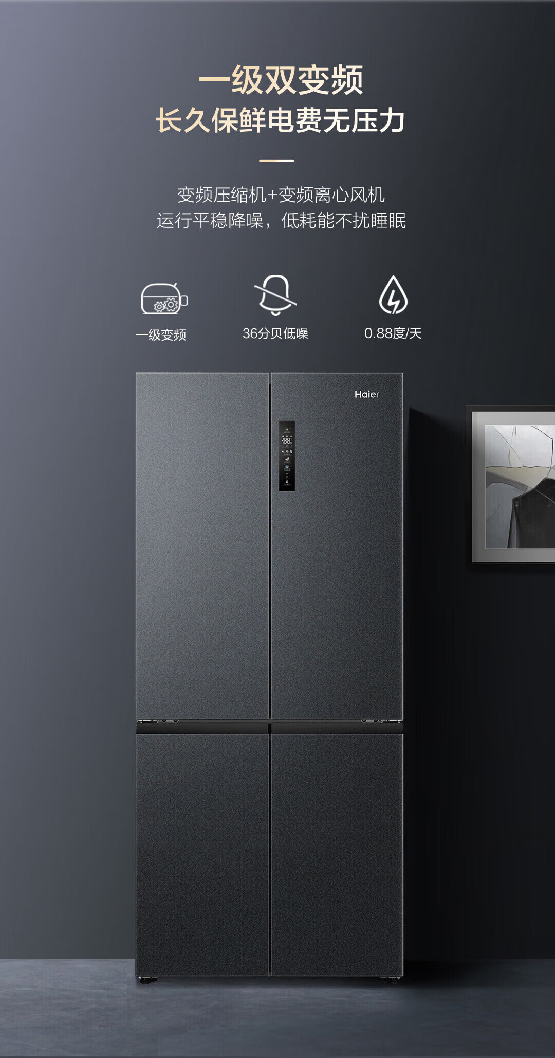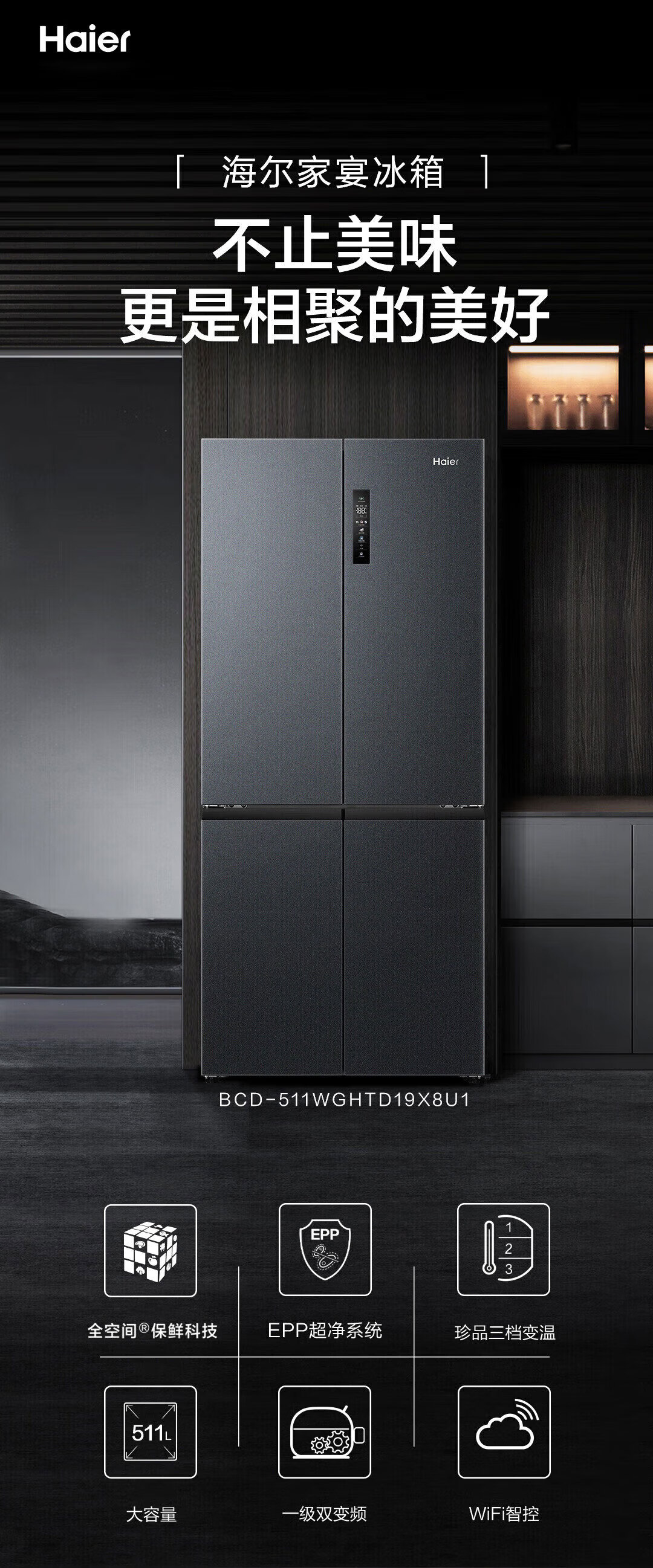 海尔冰箱511升十字双开门全空间保鲜科技EPP超净除菌一级能效双变频阻氧干湿分储大容量 511升+全空间保鲜科技+EPP净+阻氧干湿分储BCD-511WGHTD19X8U1