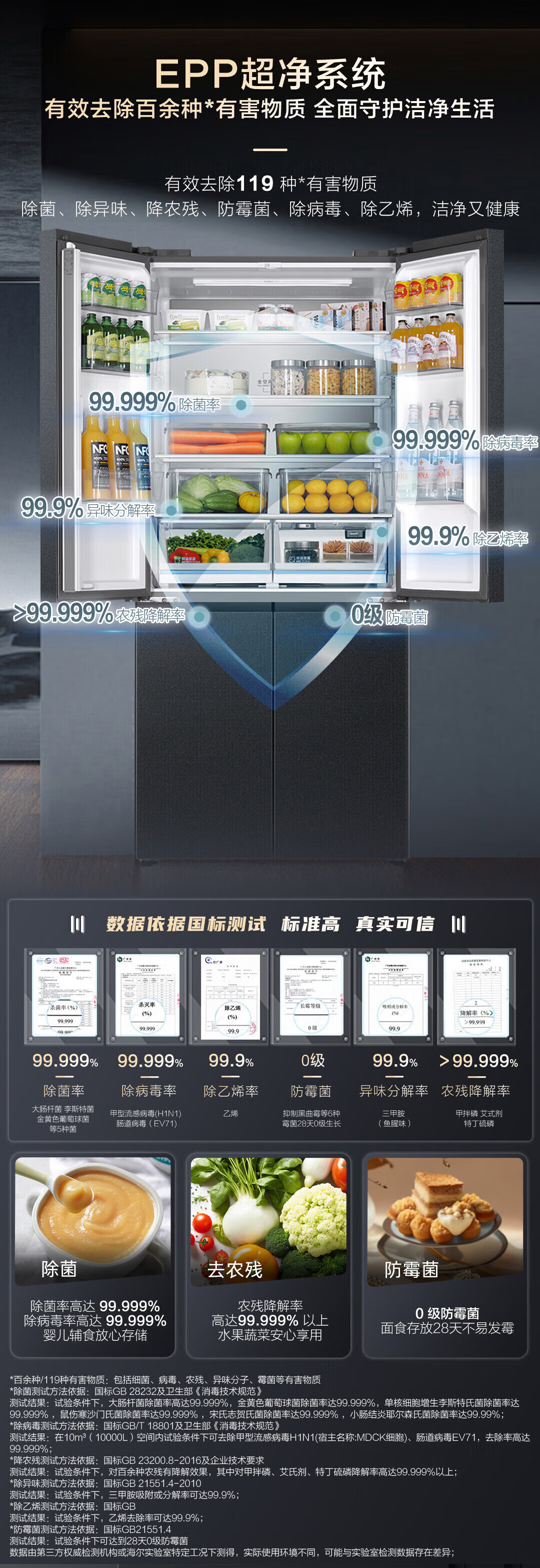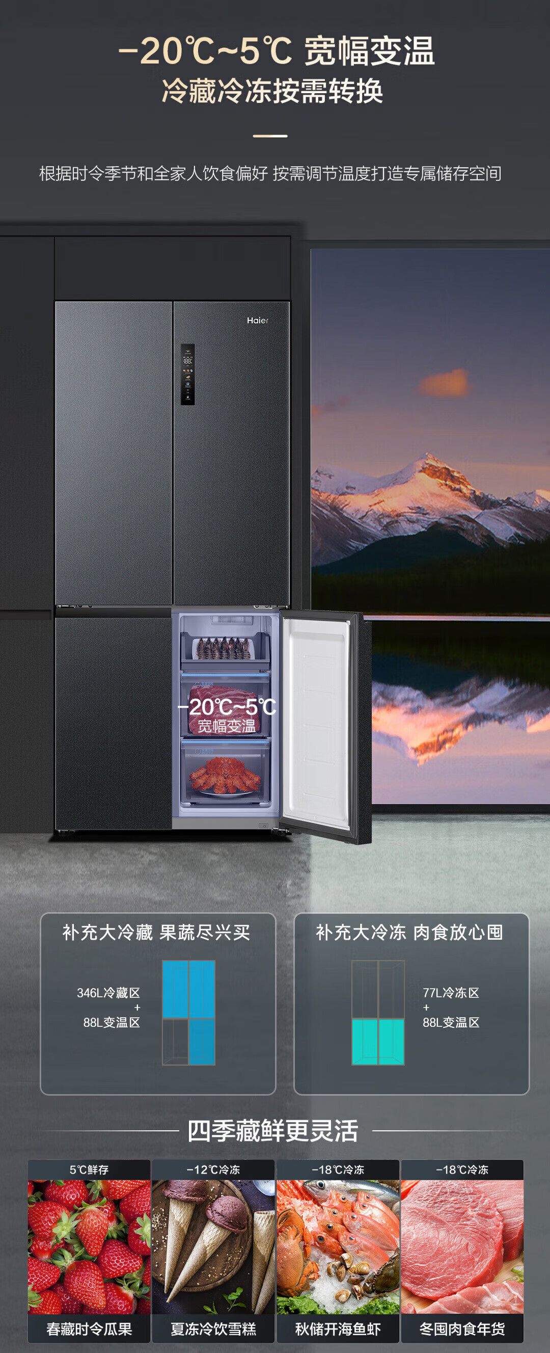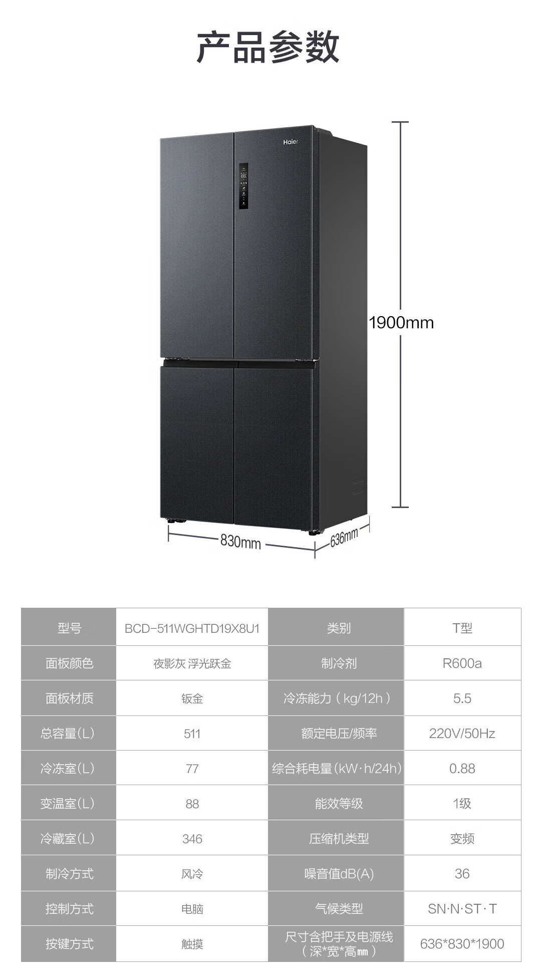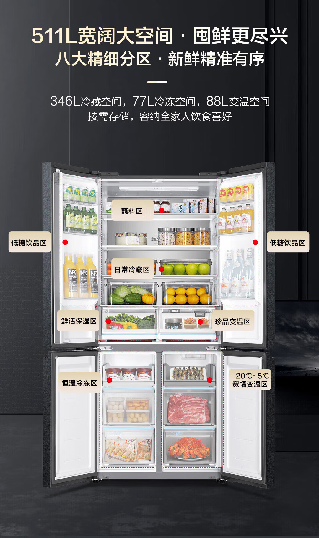 海尔冰箱511升十字双开门全空间保鲜科技EPP超净除菌一级能效双变频阻氧干湿分储大容量 511升+全空间保鲜科技+EPP净+阻氧干湿分储BCD-511WGHTD19X8U1