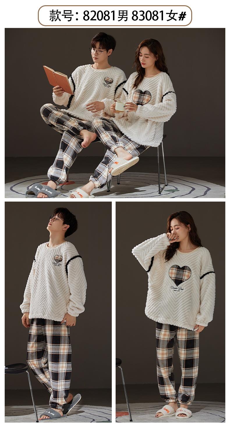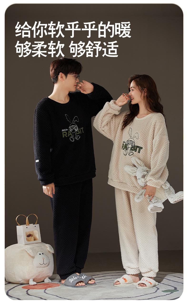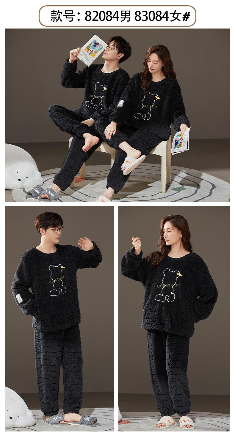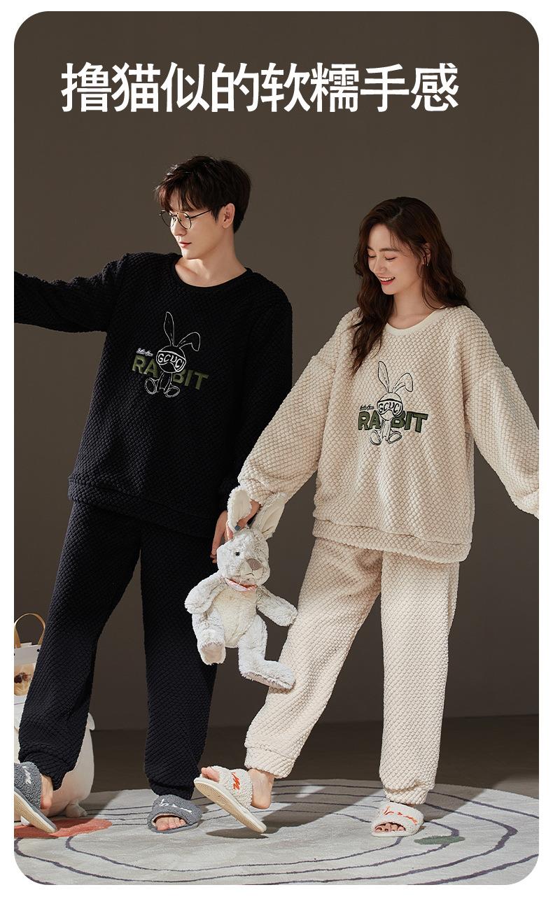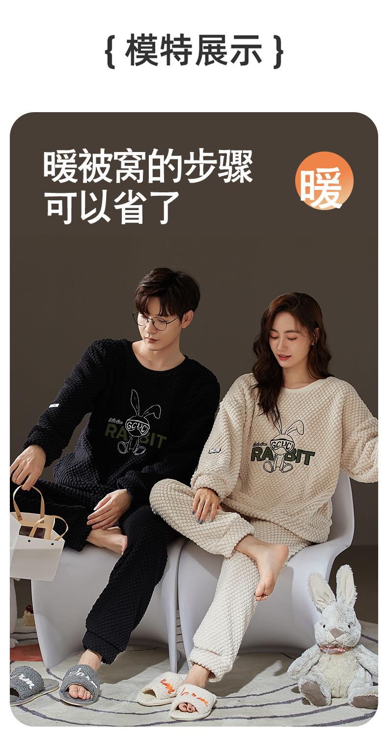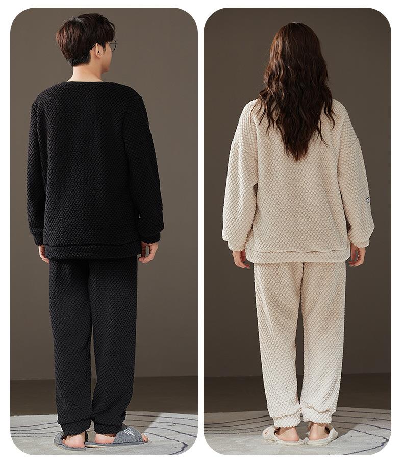 法兰绒情侣睡衣冬季长袖加厚保暖珊瑚绒男士休闲套装家居服可外穿
