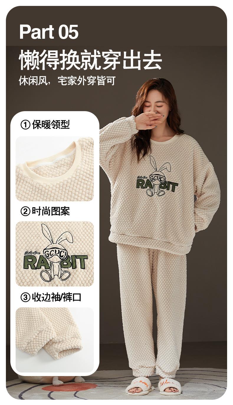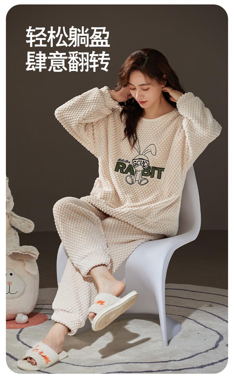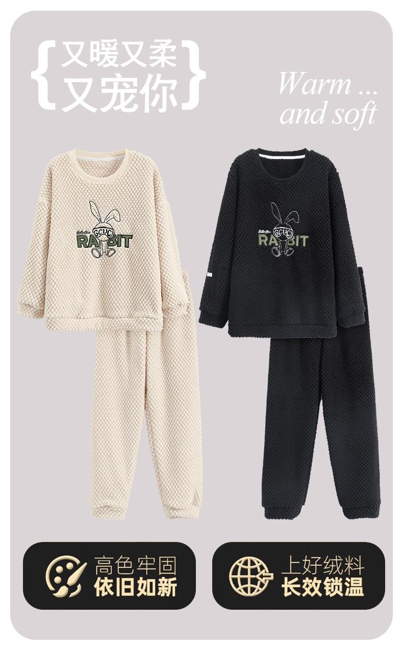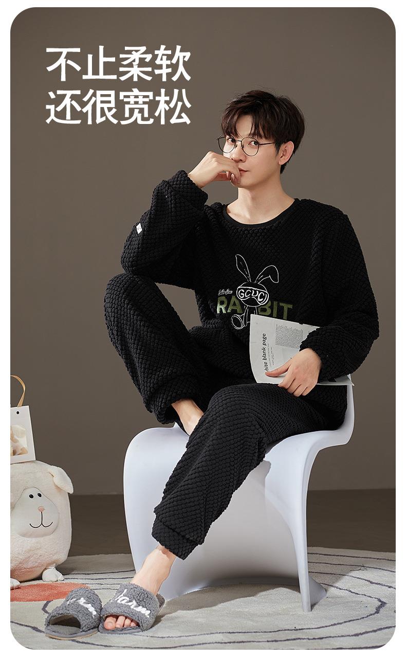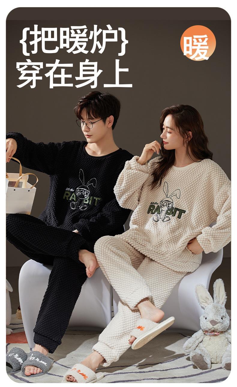 法兰绒情侣睡衣冬季长袖加厚保暖珊瑚绒男士休闲套装家居服可外穿