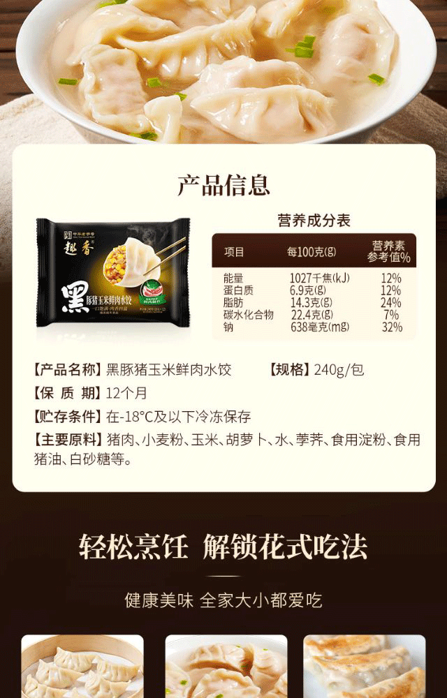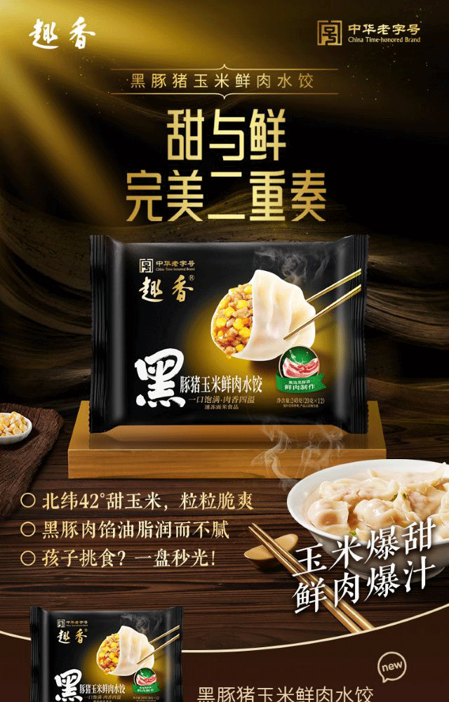 趣香黑豚猪玉米鲜肉水饺240g/袋