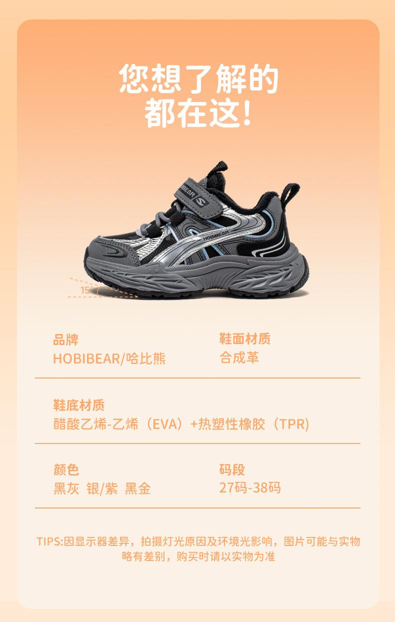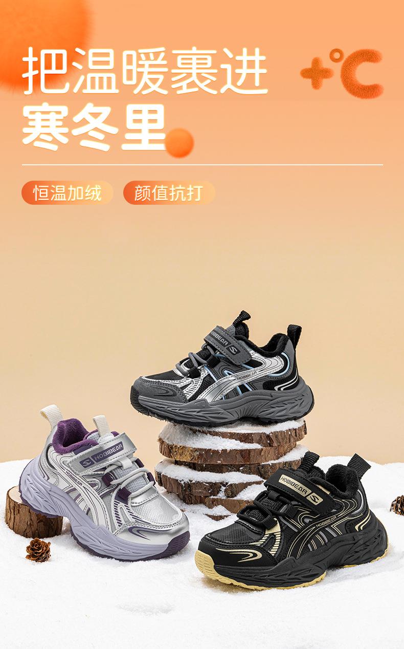 哈比熊加绒男童冬季二棉保暖运动鞋户外休闲鞋女生老爹鞋