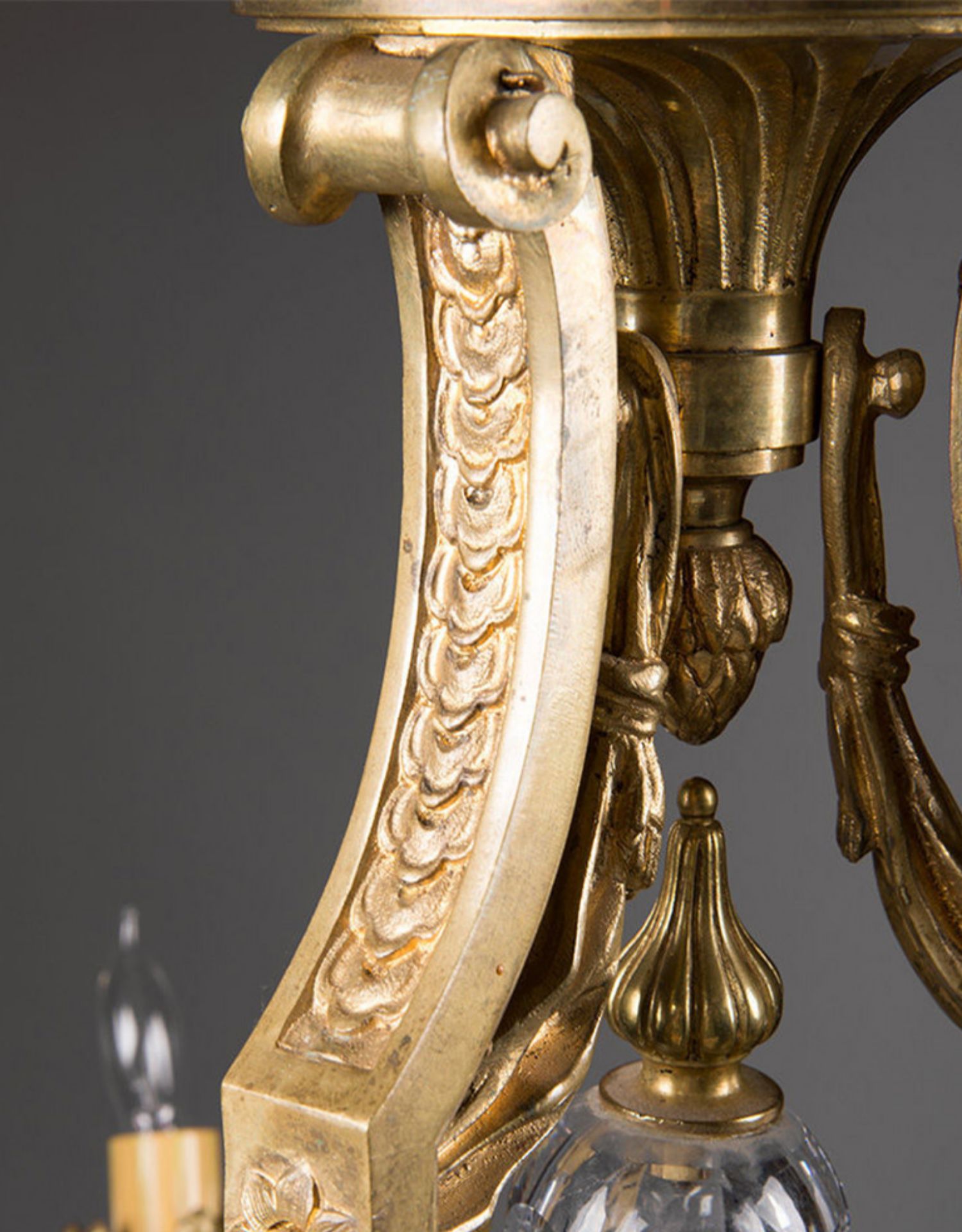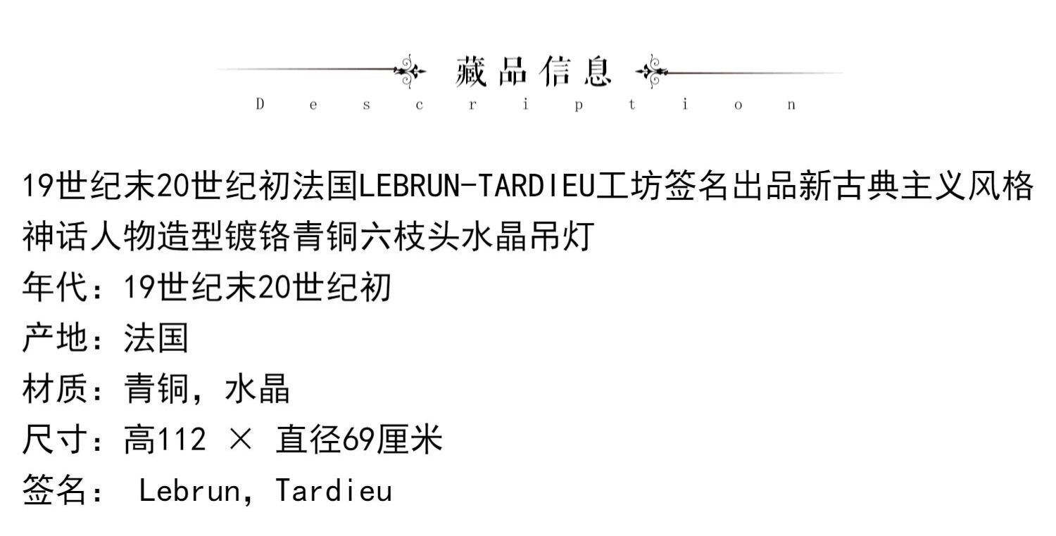 独角鹿西洋古董新古典主义风神话人物造型镀铬青铜六枝头水晶吊灯