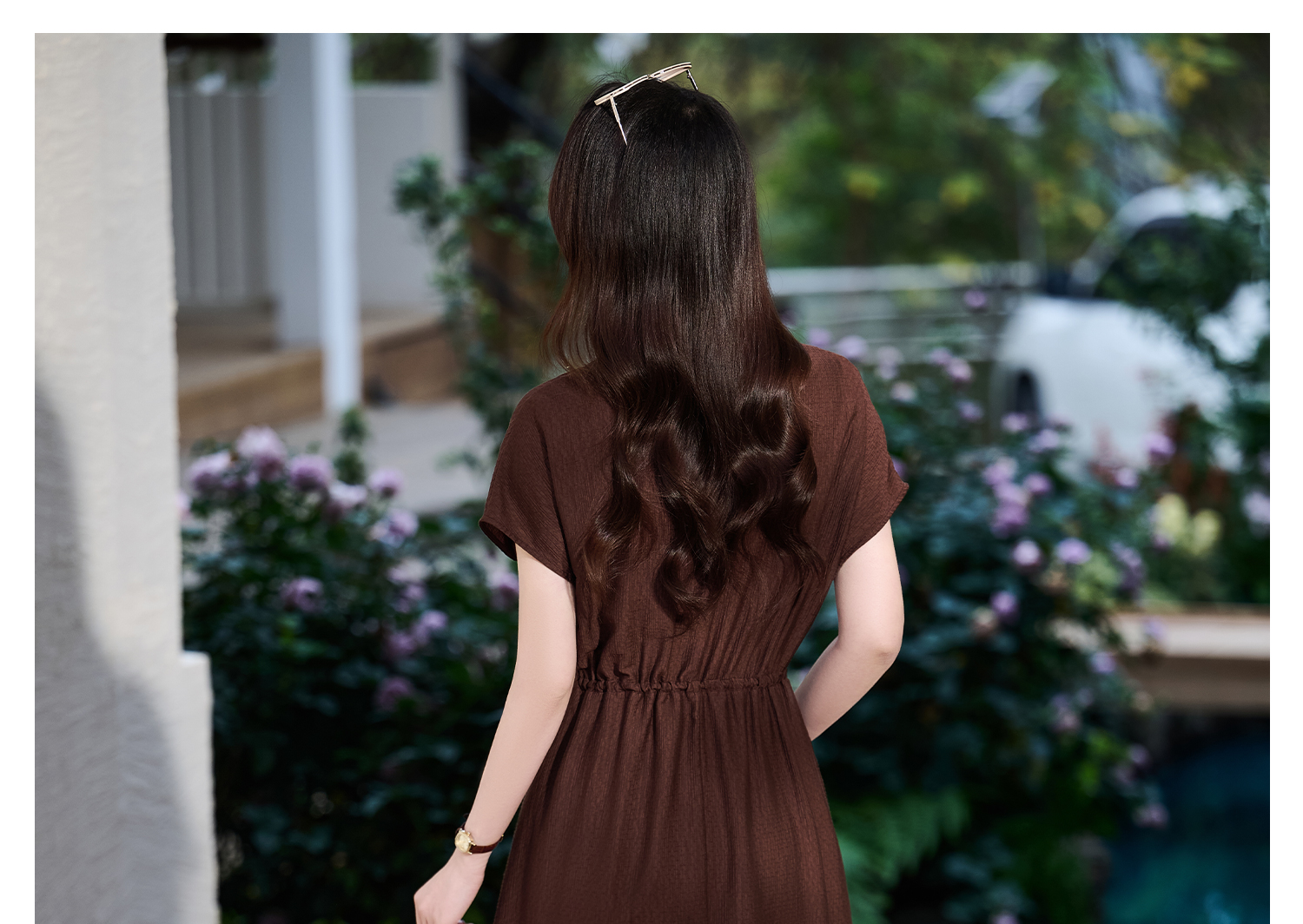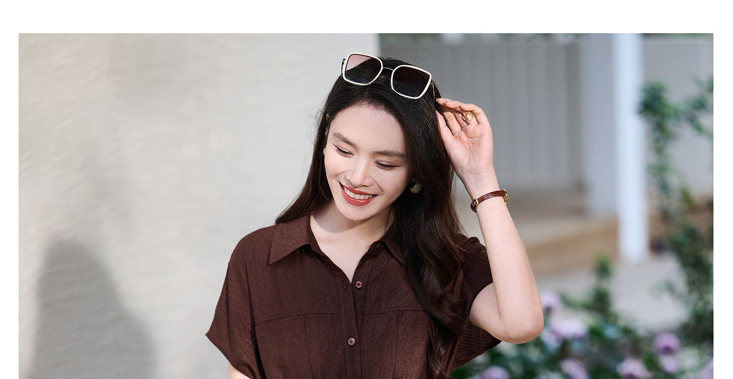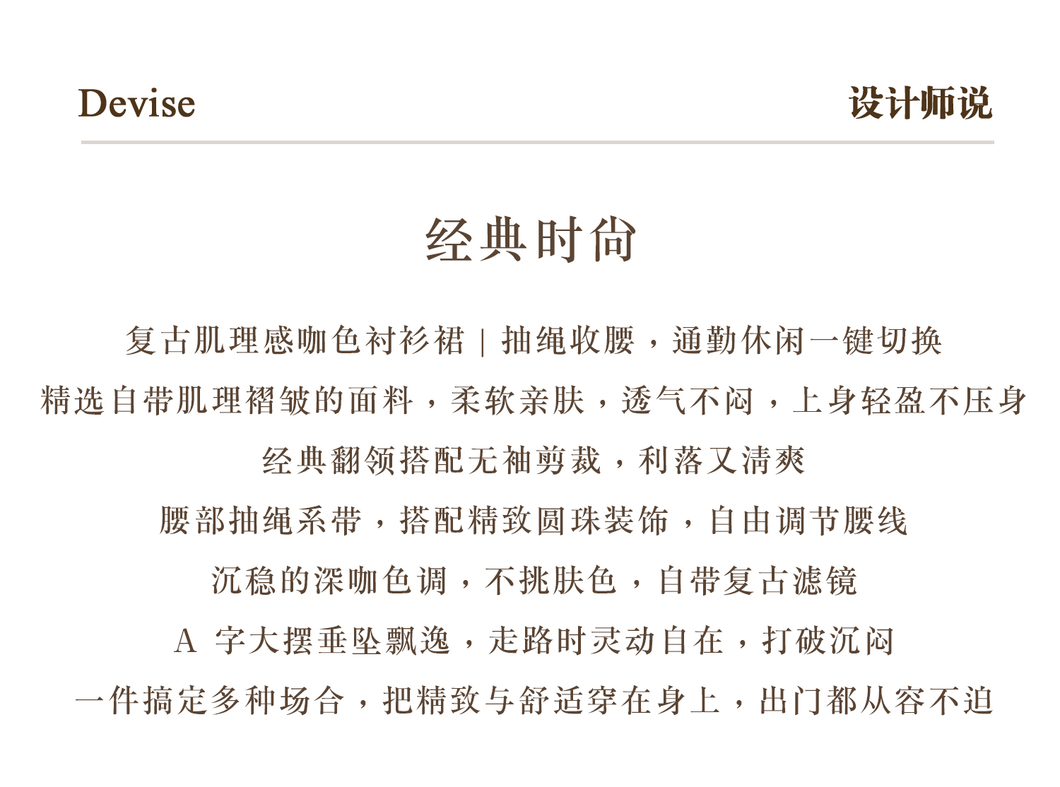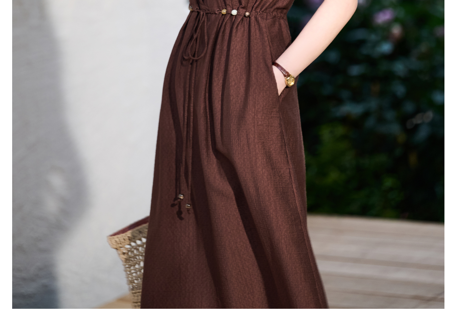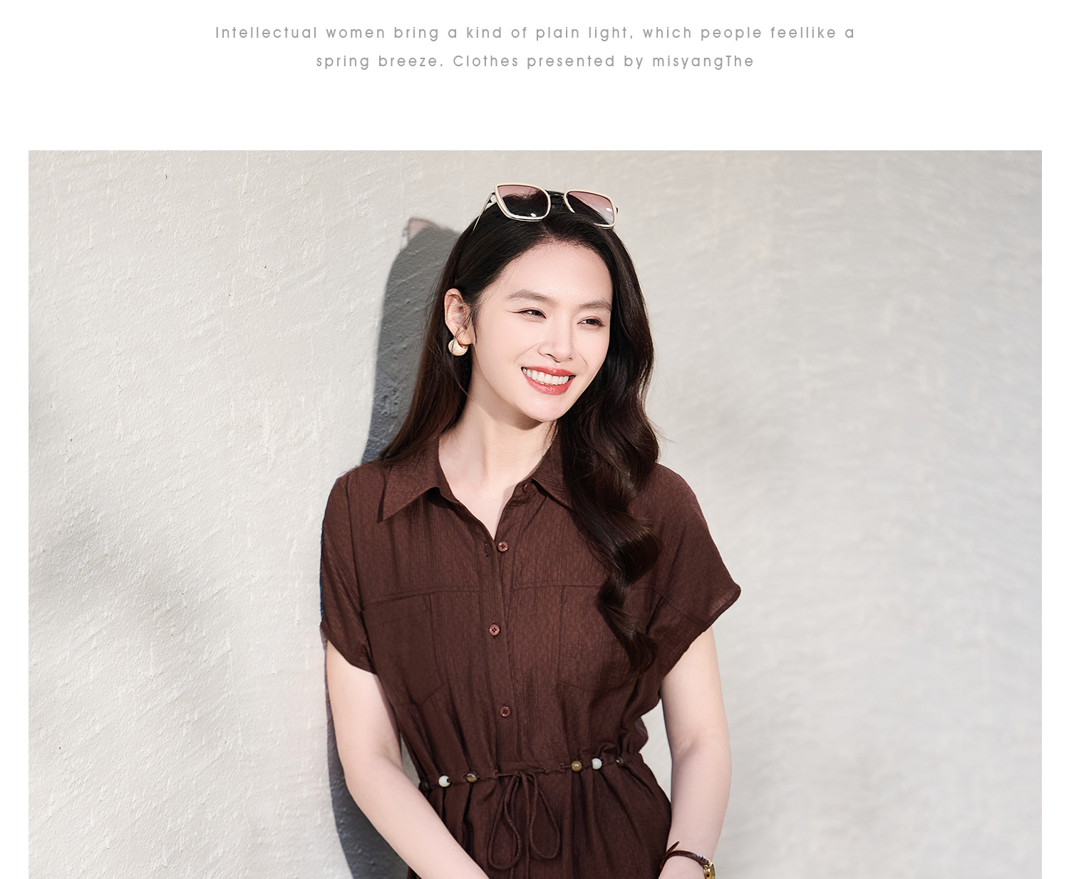 落日深棕调 复古氛围衬衫裙 肌理感天丝混纺 米思阳2026夏季新款优雅通勤衬衫连衣裙串珠腰带中长款A字裙女6152