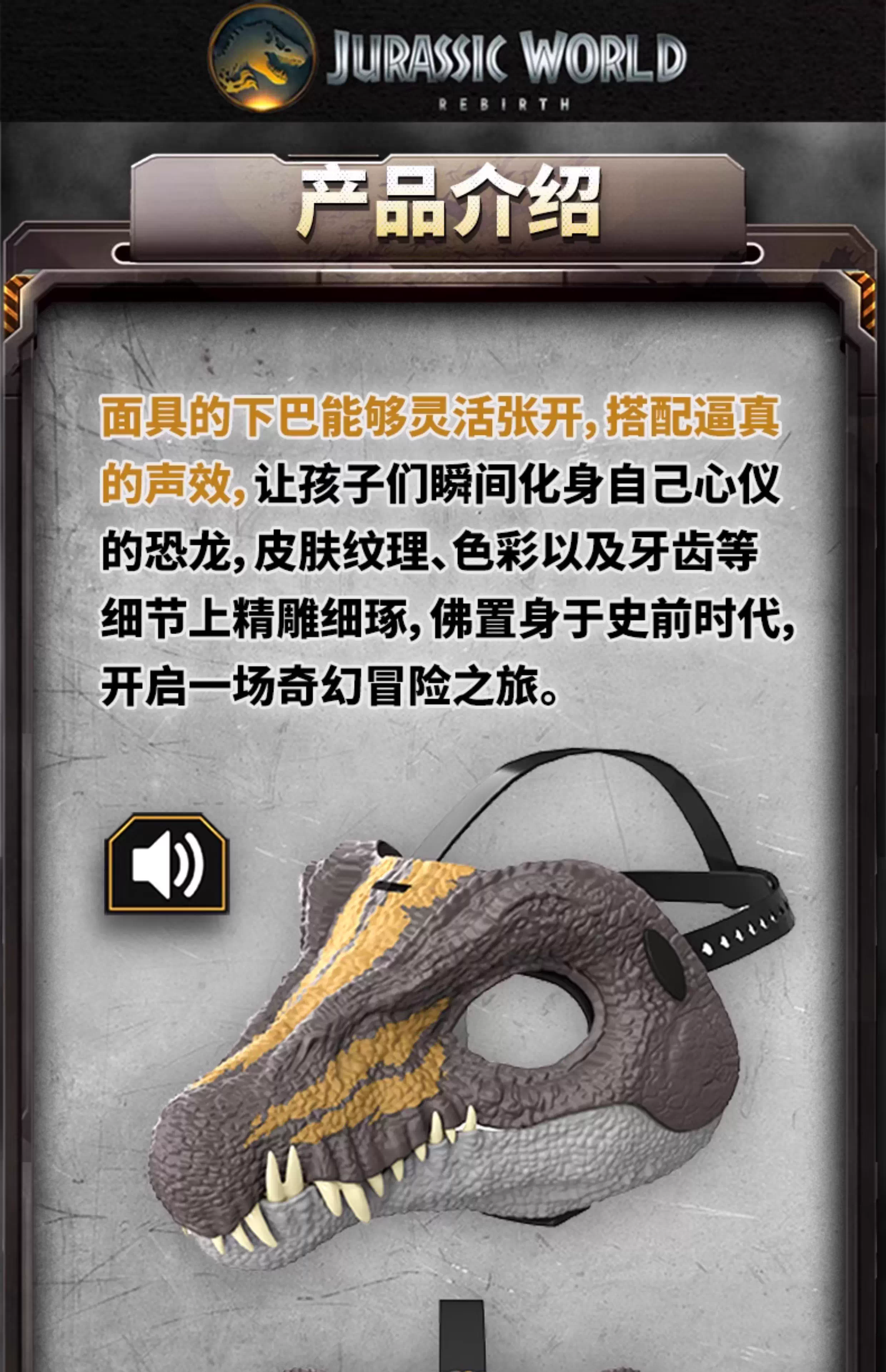 美泰 侏罗纪世界大电影仿真声效恐龙面具MATCJCG28