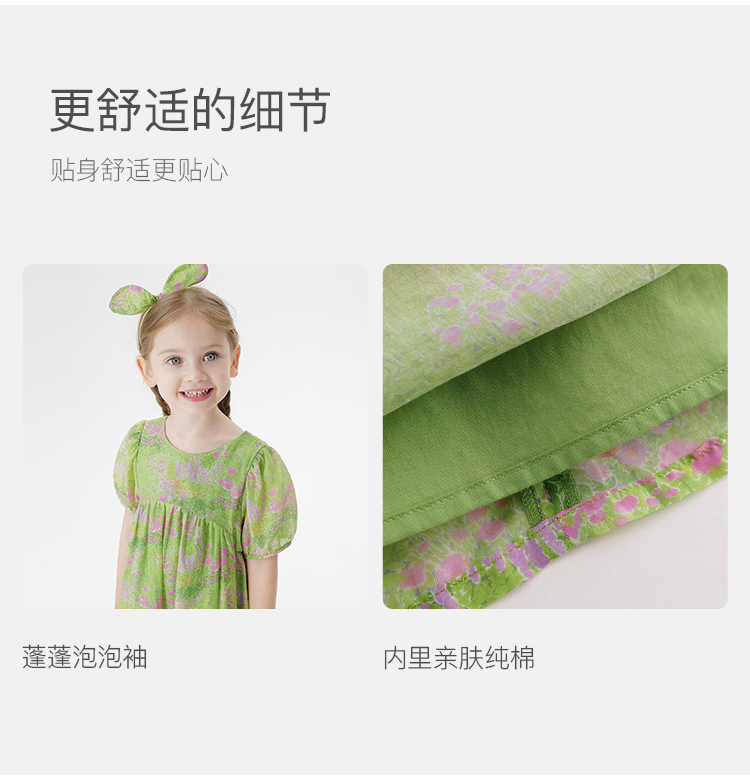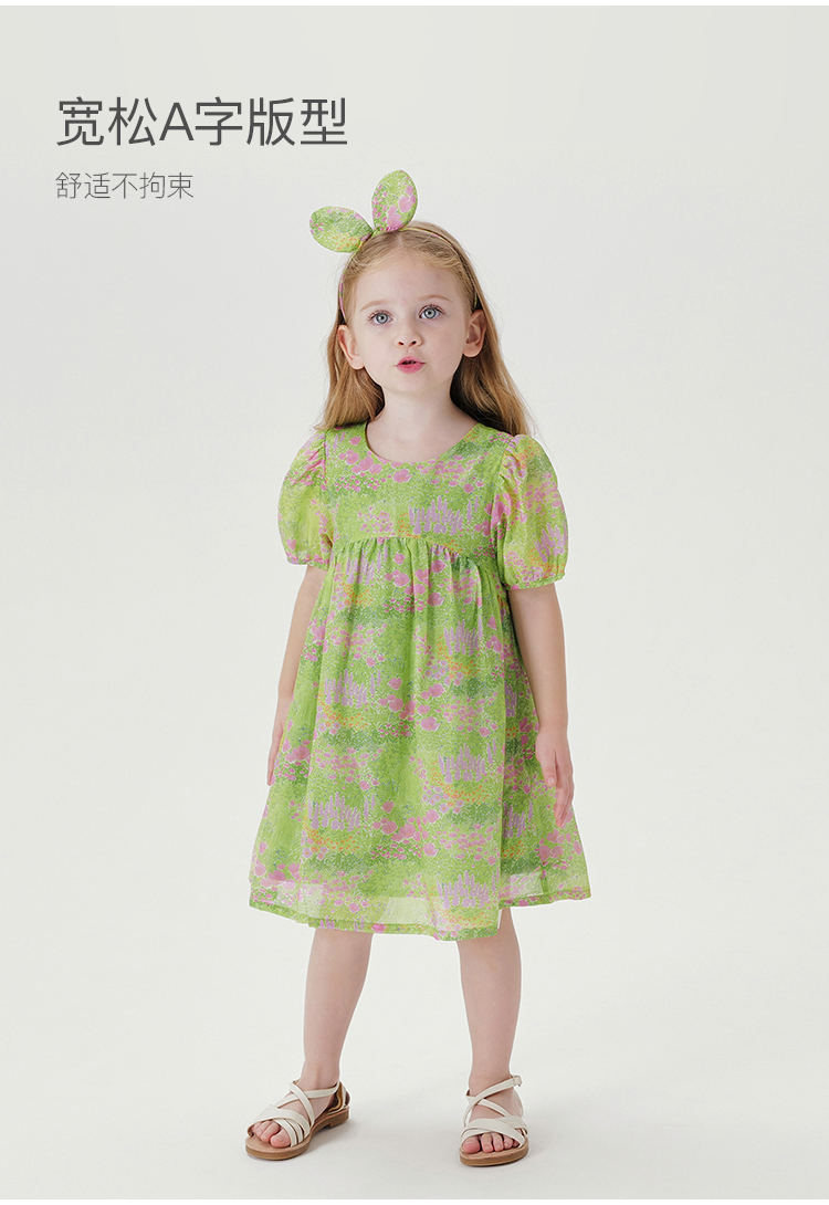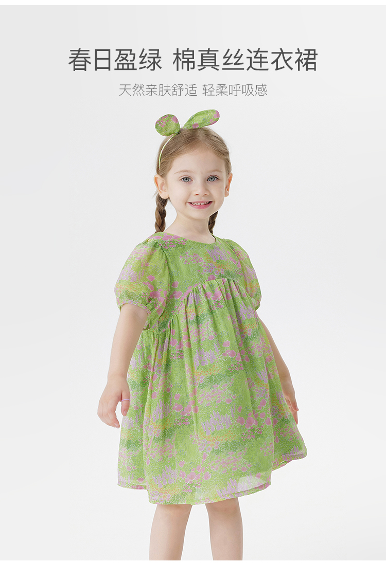 马克珍妮女童棉真丝短袖连衣裙 儿童碎花裙子2025年夏装250009