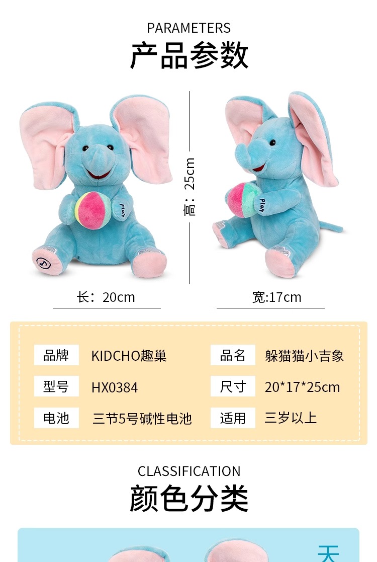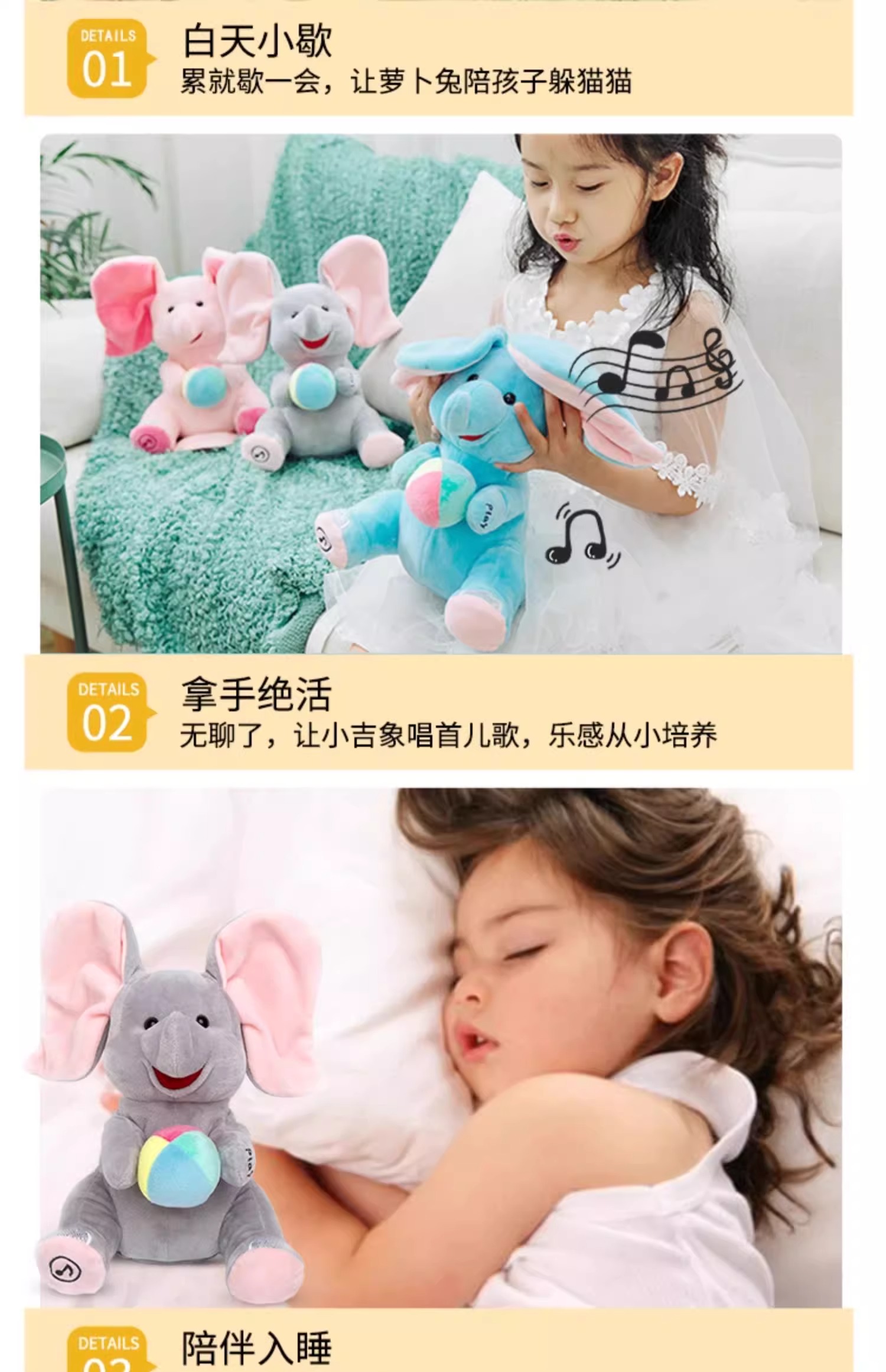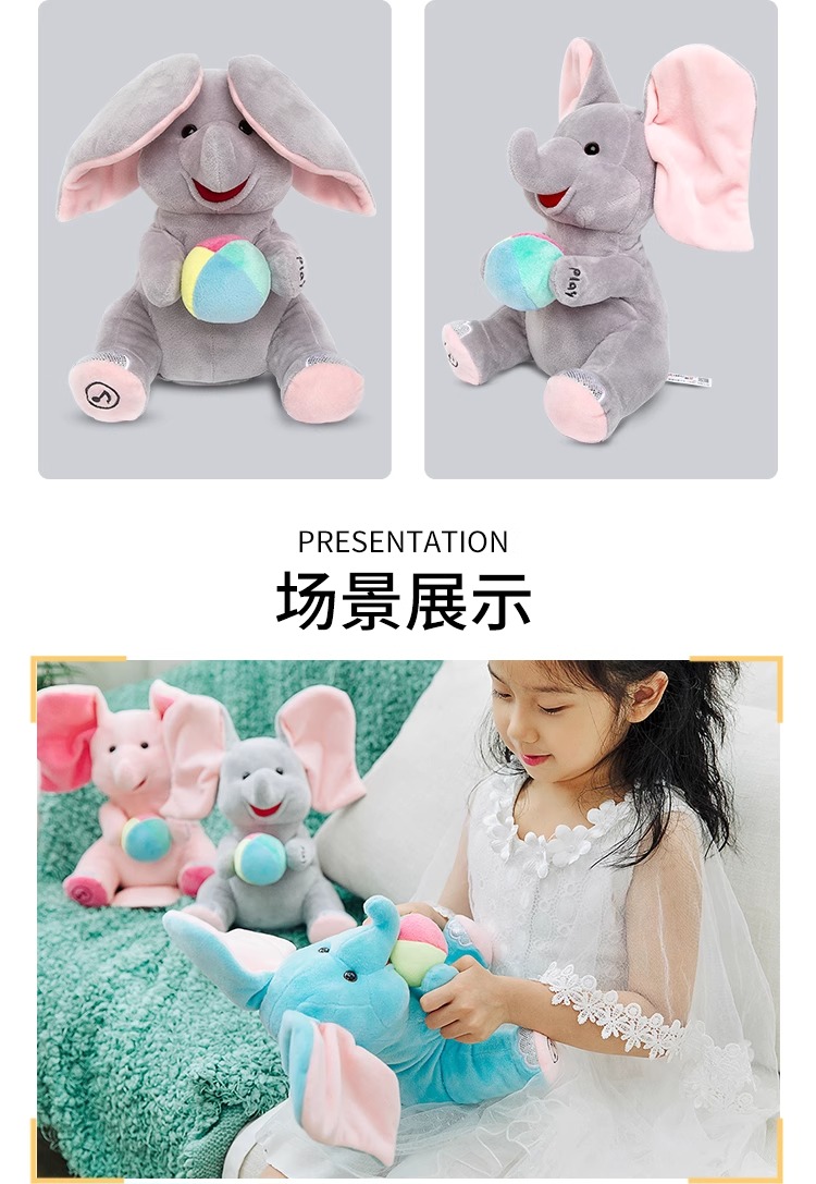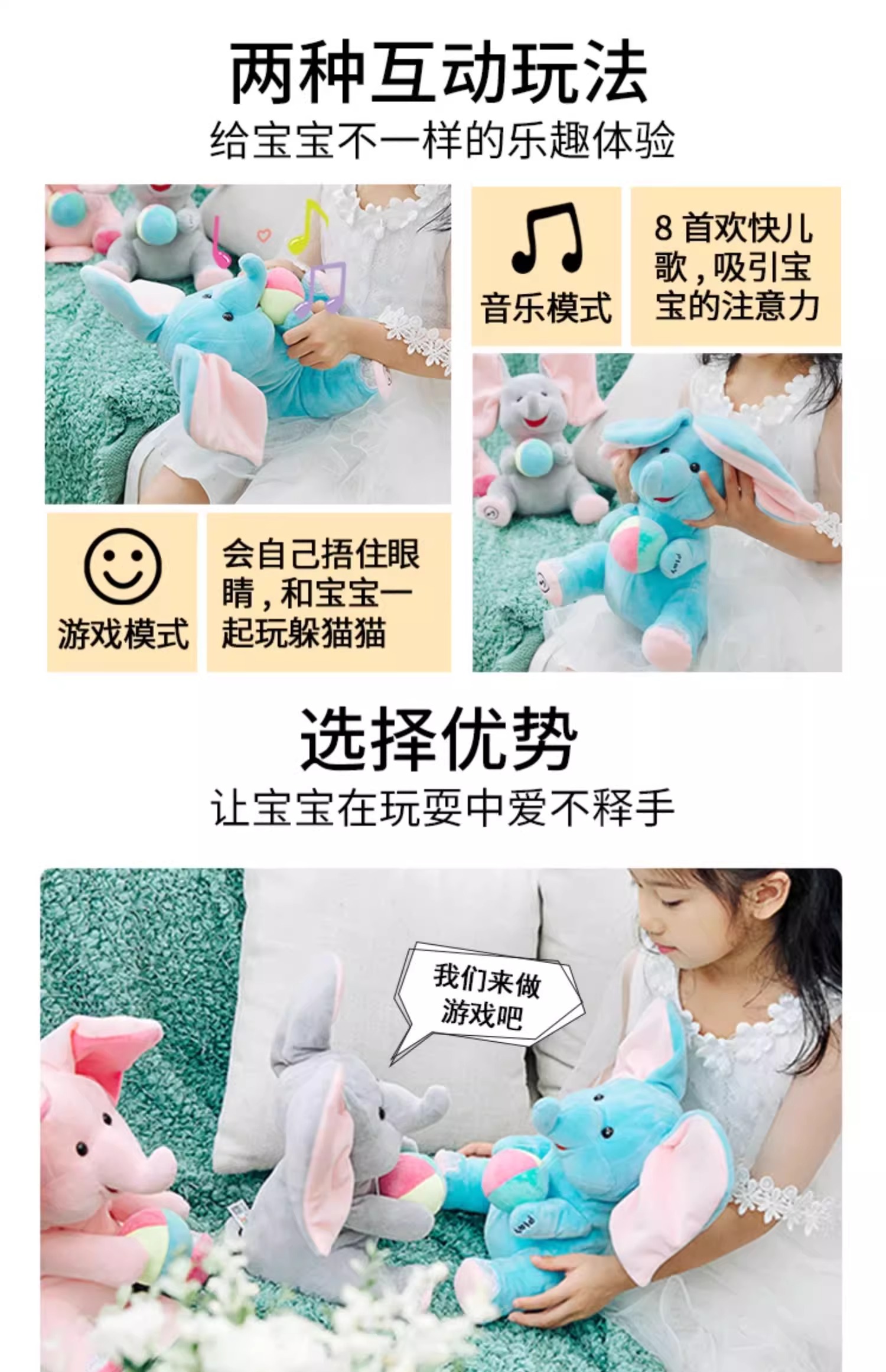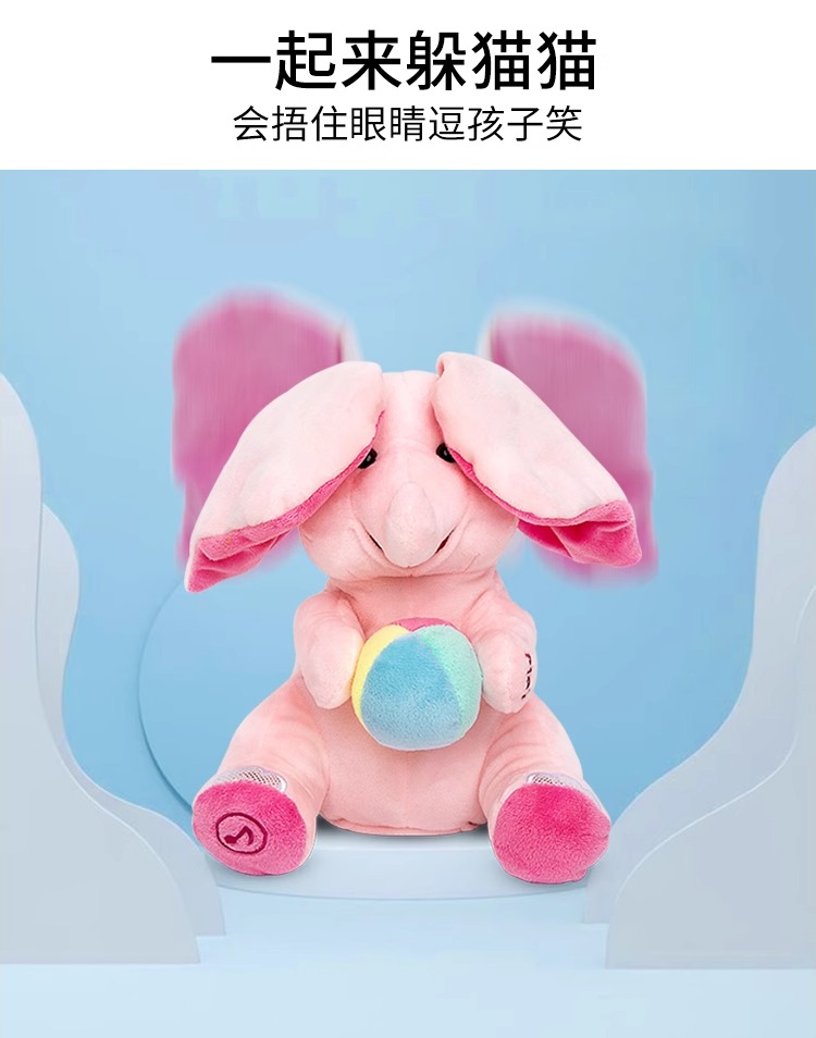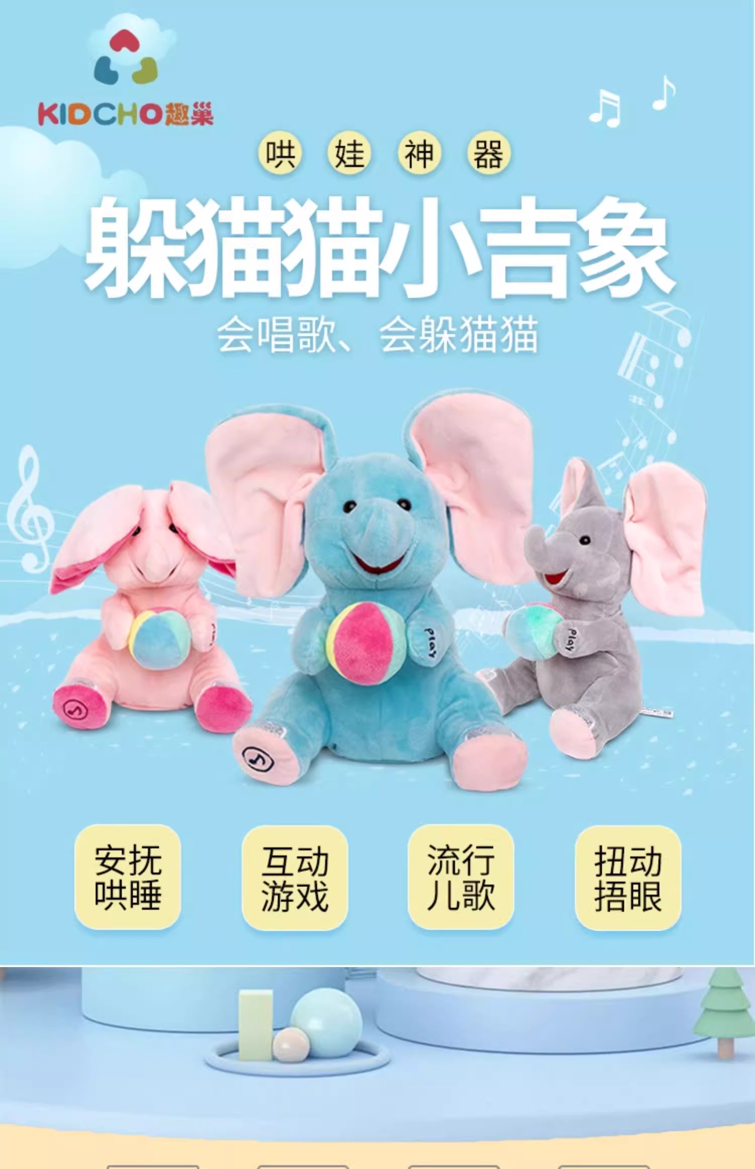 pic it 躲猫猫会唱歌玩偶小吉象萌歪歪比熊猫猫毛绒玩具