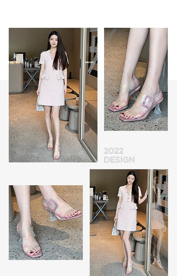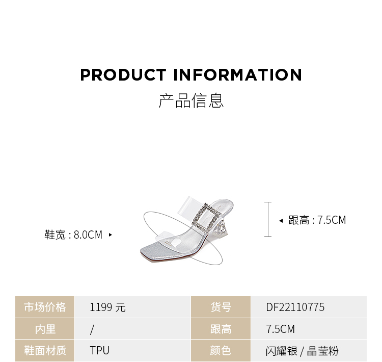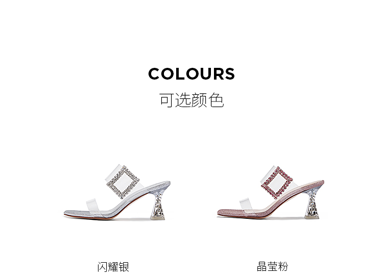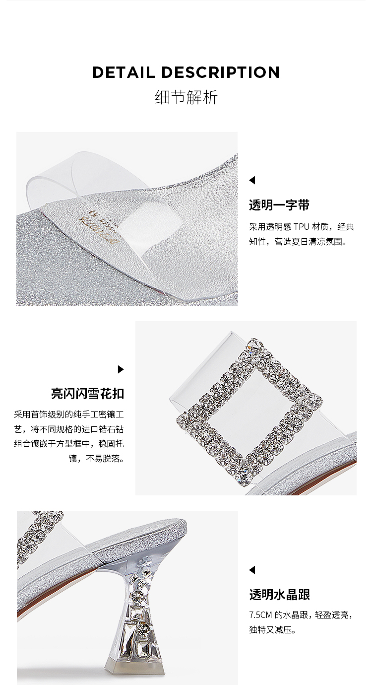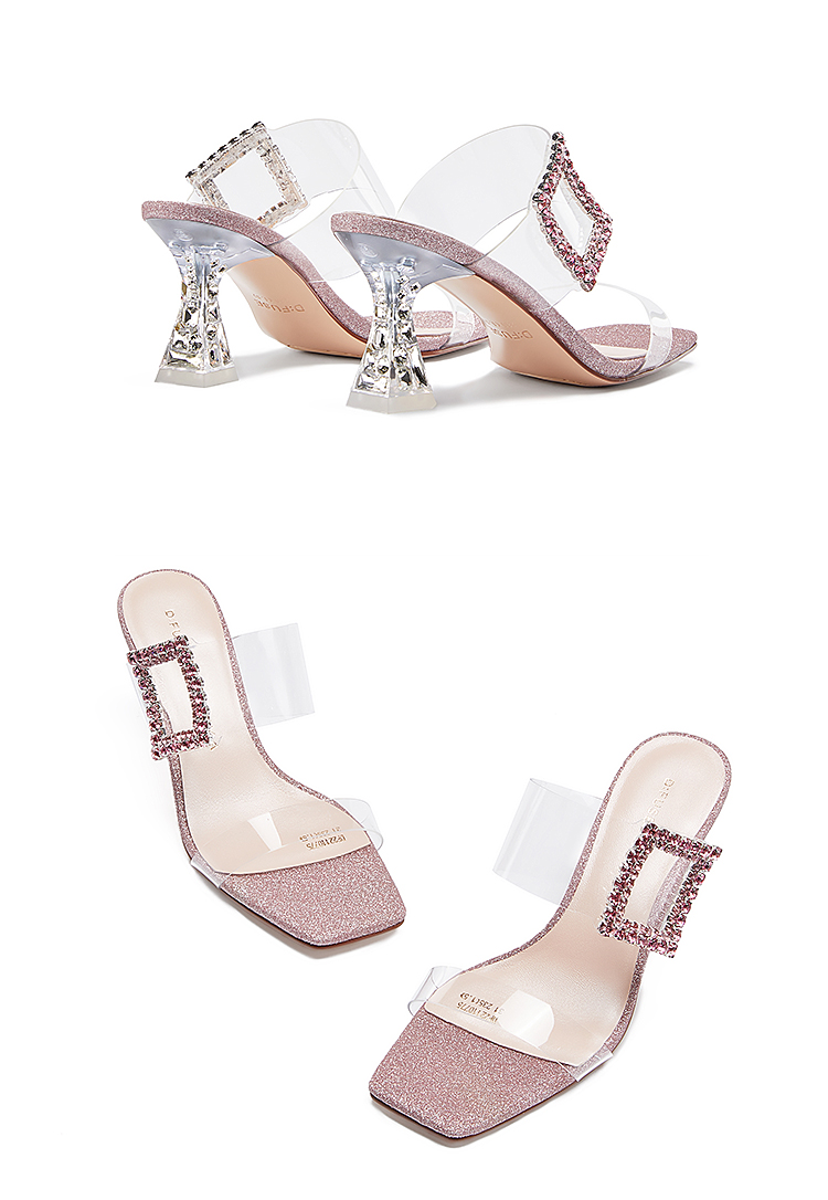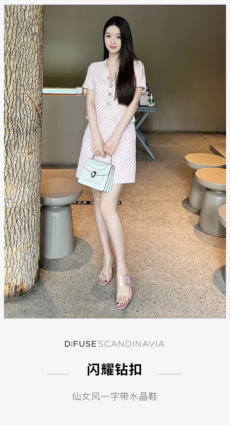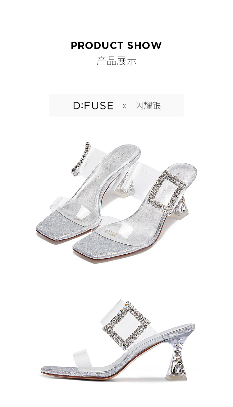 D:FUSE迪芙斯2024夏季新款钻扣一字带水晶拖鞋仙女鞋DF42110775