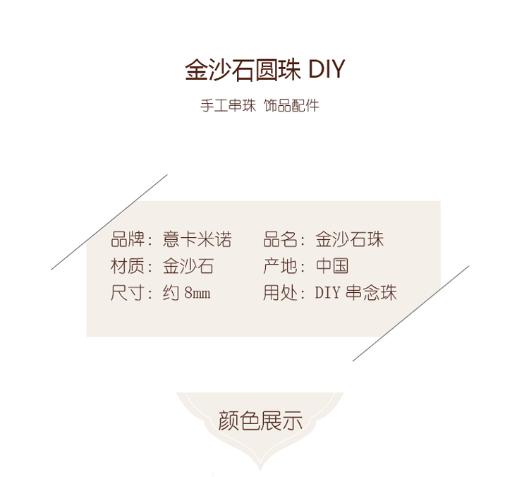 金沙石8mm珠料意卡米诺手串念珠单颗珠子散珠半成品